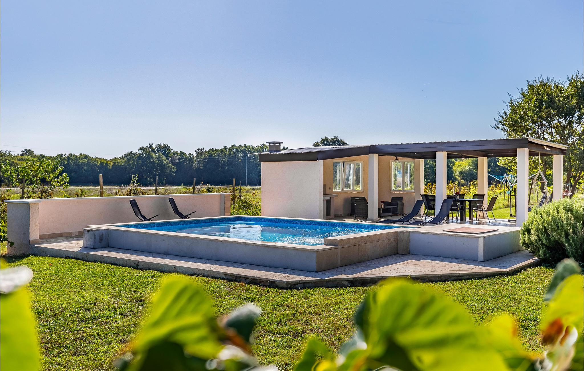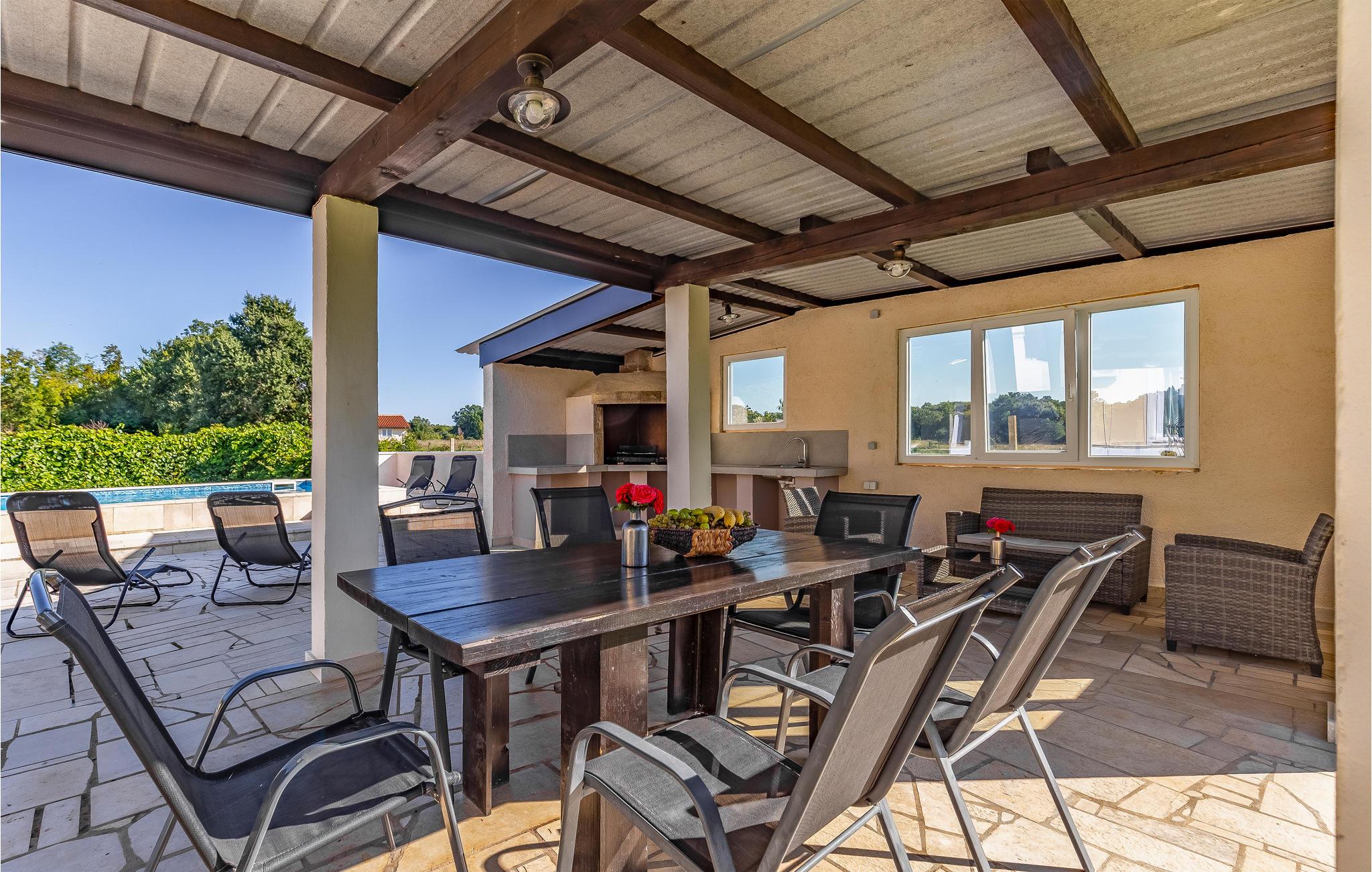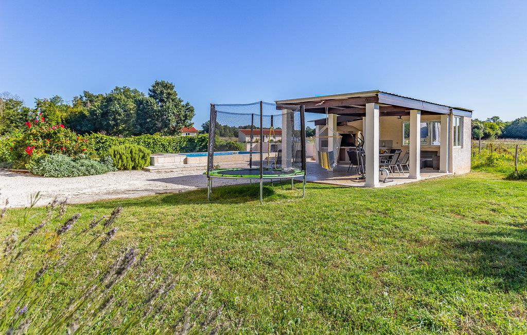 Velkommen til jeres komfortable feriehus i udkanten af den charmerende landsby Valtura, kun et stenkast fra de fascinerende ruiner af Nesactium. Denne idylliske bolig er det ideelle sted at nyde roen i det istriske landliv uden at ofre moderne bekvemmeligheder. Med et stilfuldt spisekøkken og den hyggelige opholdsstue byder huset på alt, hvad I behøver til jeres ophold, og her finder enhver gæst sit yndlingssted at slappe af. Udenfor er der en stor terrasse med overdækket opholdsområde og grill, ideel til hyggelige aftener med familie eller venner. Den indbydende pool giver en ideel forfriskning på varme sommerdage. Mens de voksne nyder liggestolene, kan børnene lege i haven, prøve hængekøjen eller hygge sig på trampolinen. Husejerens ejendom, som ligger i nærheden, byder på en særlig attraktion. Her kan I opdage istriske kvæg og heste. I kan også tage en tur til Medulin og besøge den berømte sandstrand, som ligger kun en kort køretur væk.