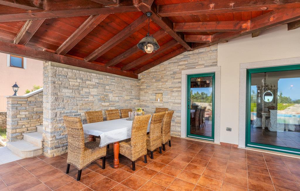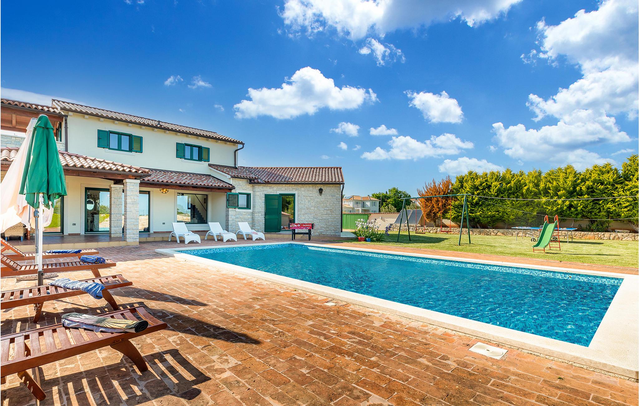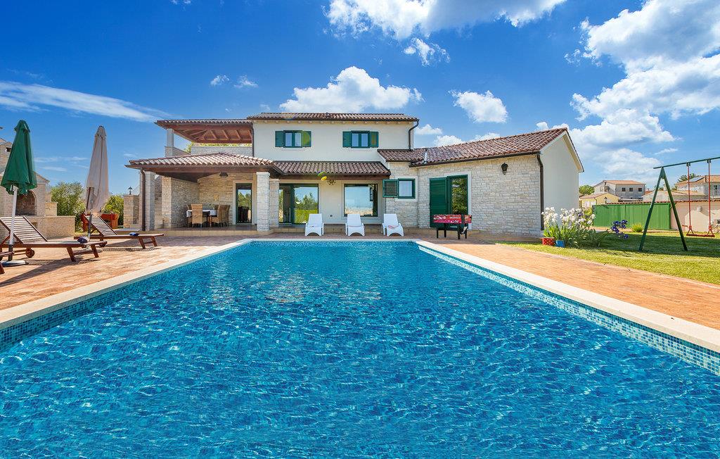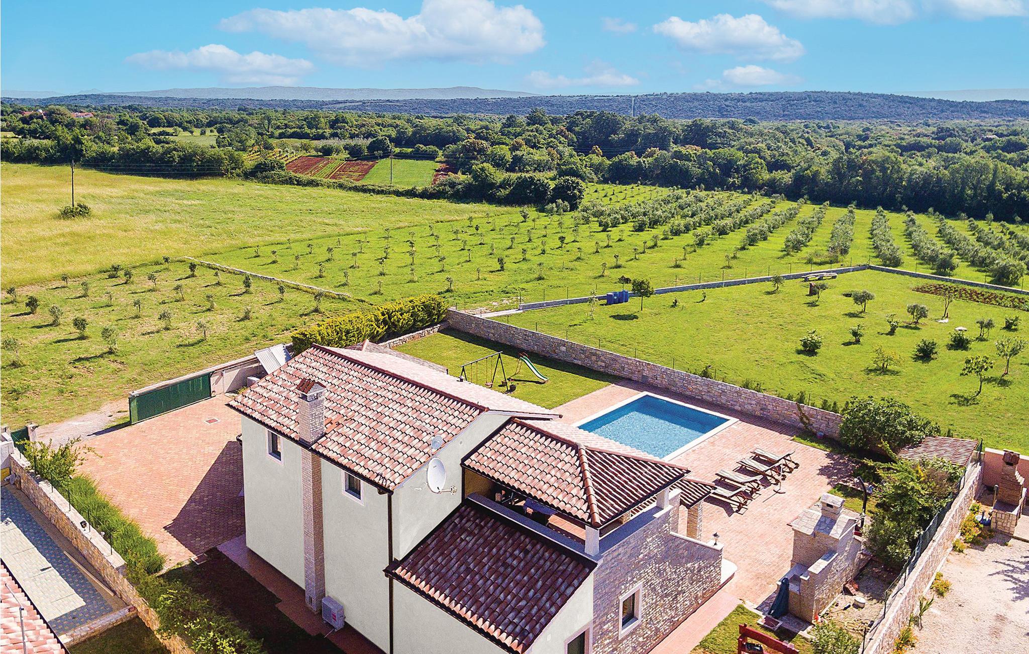 Dette stilrene feriehus ligger i en lille by, i nærheden af den større by Pula. I stueplan ligger stue, køkken og to soveværelser, med to badeværelser. På første sal ligger de andre to soveværelser og badeværelser. Såvel indre som ydre trapper forbinder etagerne. Rummene er smukt malet i brændte farver, møblerne passer smukt ind i husets stil. Fra førstesalen er der en smuk udsigt ud over omgivelserne til havet. Omgivelserne er rige på gode cykelstier, så her kan ekstremsportsdyrkere finde udfordringer. På de varme dage kan vi anbefale behagelig afkøling i den store pool, ligesom her er gynge, vippe og rutsjebane til at fornøje familiens yngste. Huset ligger fremragende omgivelser til udflugter. Oplev Pulas smukke ruiner, som romerne efterlod sig. Sisans skønne badestrande og omgivelser, de maleriske småbyer i Istriens indre, ligger alle i relativt kort afstand fra Valtura. Afslut den skønne feriedag på terrassen i hyggeligt samvær, mens maden syder og sender fortryllende dufte ud fra grillen.