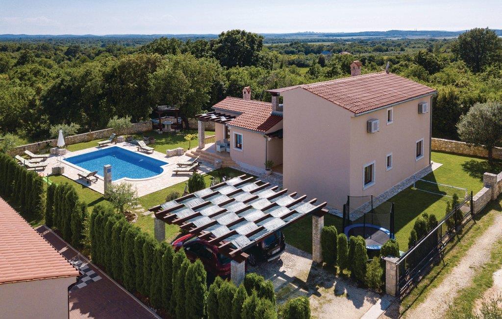Dette nybyggede feriehus med pool har beliggenhed i Valtura, ne by cirka 10 kilometer fra Pula. Huset strækker sig over to etager. I stueetagen ligger køkkenet, opholdrum med spisestue, to soveværelser, samt badeværelse og toilet. På første etage er der to soveværelser, et badeværelse yderligere og den overdækkede terrasse. På varme sommerdage indbyder den dejlige udendørs pool til en nedkøling, og børnene kan lege uforstyrret på gyngerne og rutsjebanen. Husets beliggenhed er ideel for de gæster der gerne vil på udflugt til Pula, hvor der udover talrige monumenter også er masser af kultur- og underholdningstilbud. De smukke strande i Sisan og de nærmere omgivelser er, ligesom de mange traditionelle byer på fastlandet, også indenfor rækkevidde. Vi anbefaler en udflugt til det arkæologiske område af Istriens ældste by Nesakcium. Herudover indbyder den billedskønne natur til vandre- og cykelture.