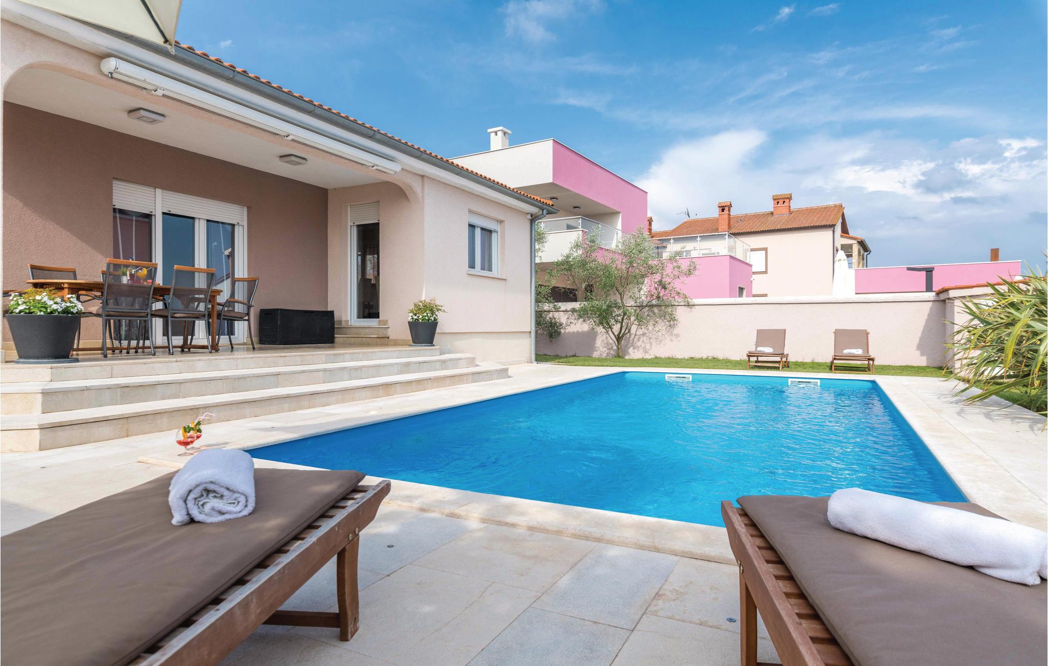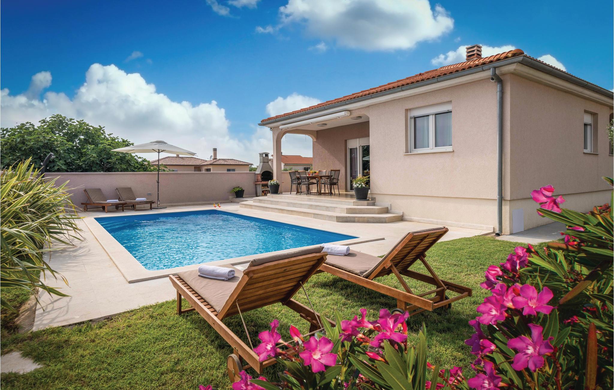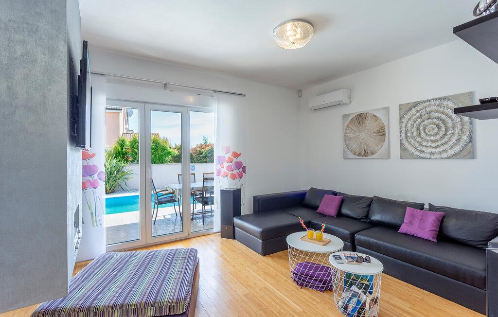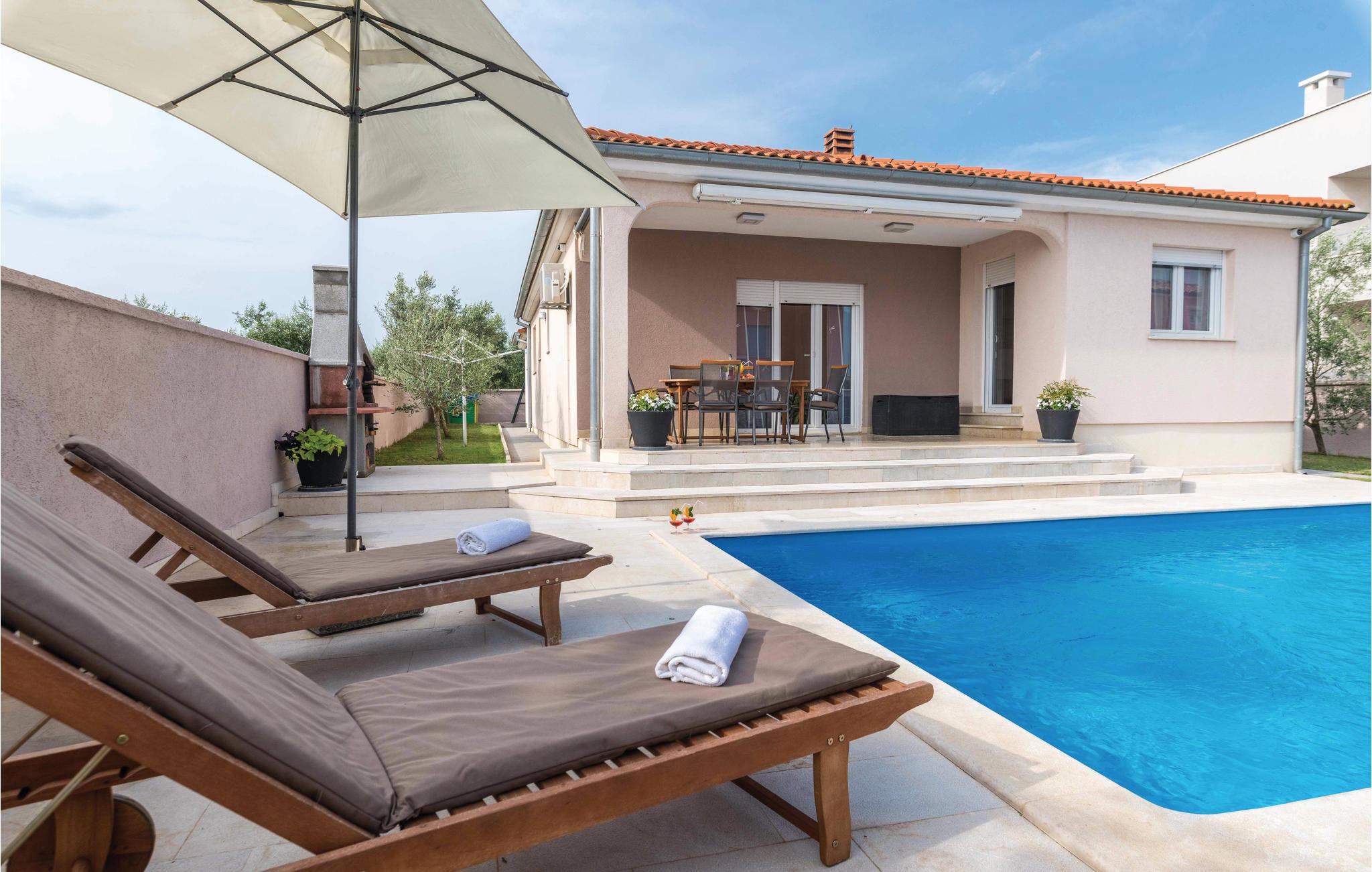 I en lille landsby, ikke langt fra Pula, ligger dette feriehus specielt godt egnet til familier med små børn. Her kan de mindste lege i haven, mens forældrene slappe af ved poolen eller tilbereder maden på grillen. Huset er indrettet med god og moderne smag. De nærmeste madestrande ligger kun få minutter væk i bil. Lige i nærheden af den lille feriebyen Medulin med mange underholdningstilbud og restauranter. Nyd også Pulas mange historiske seværdigheder fra antikken, Der hører garage til feriehuset.