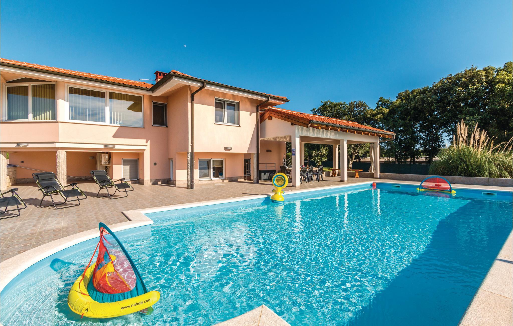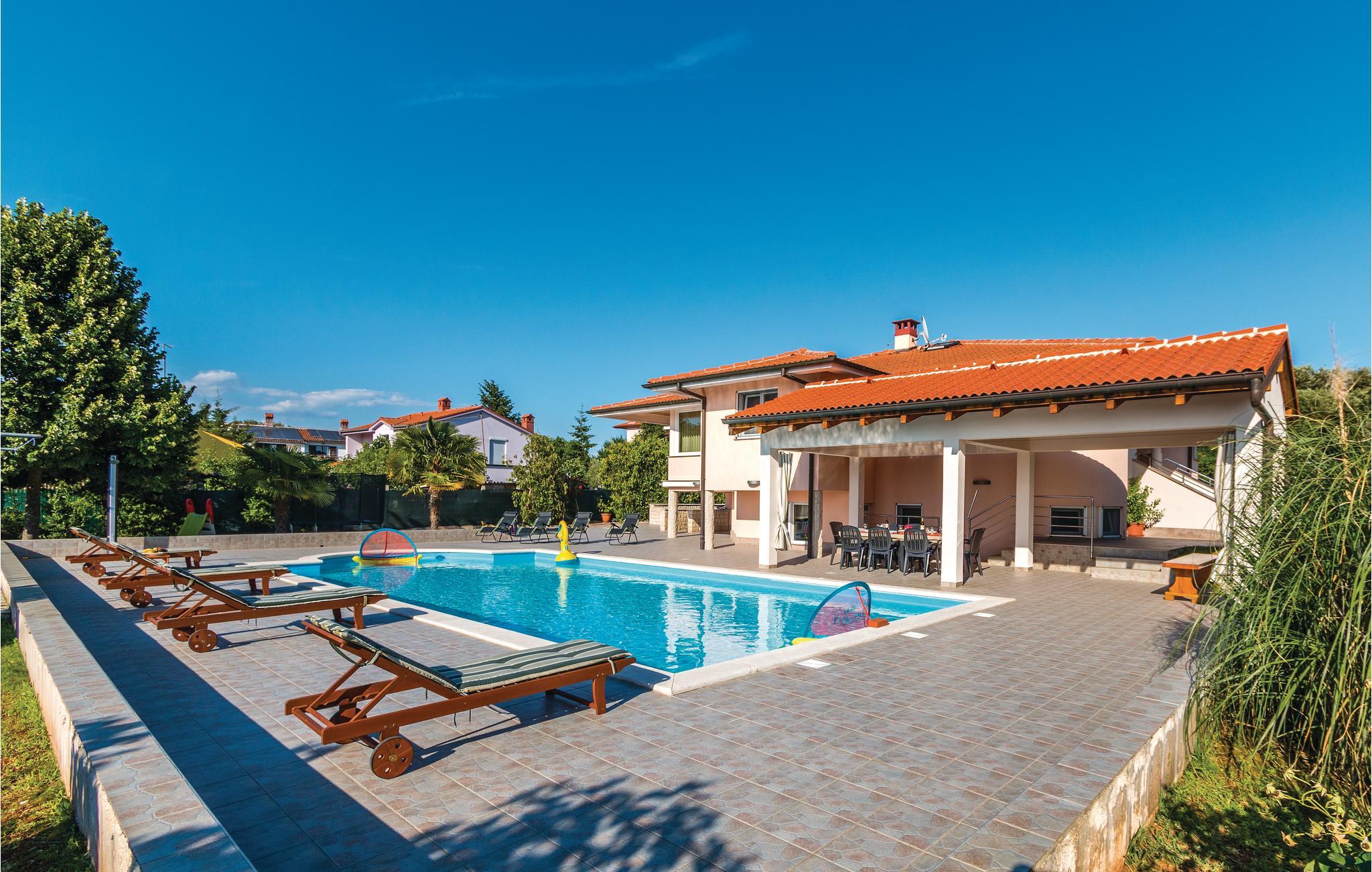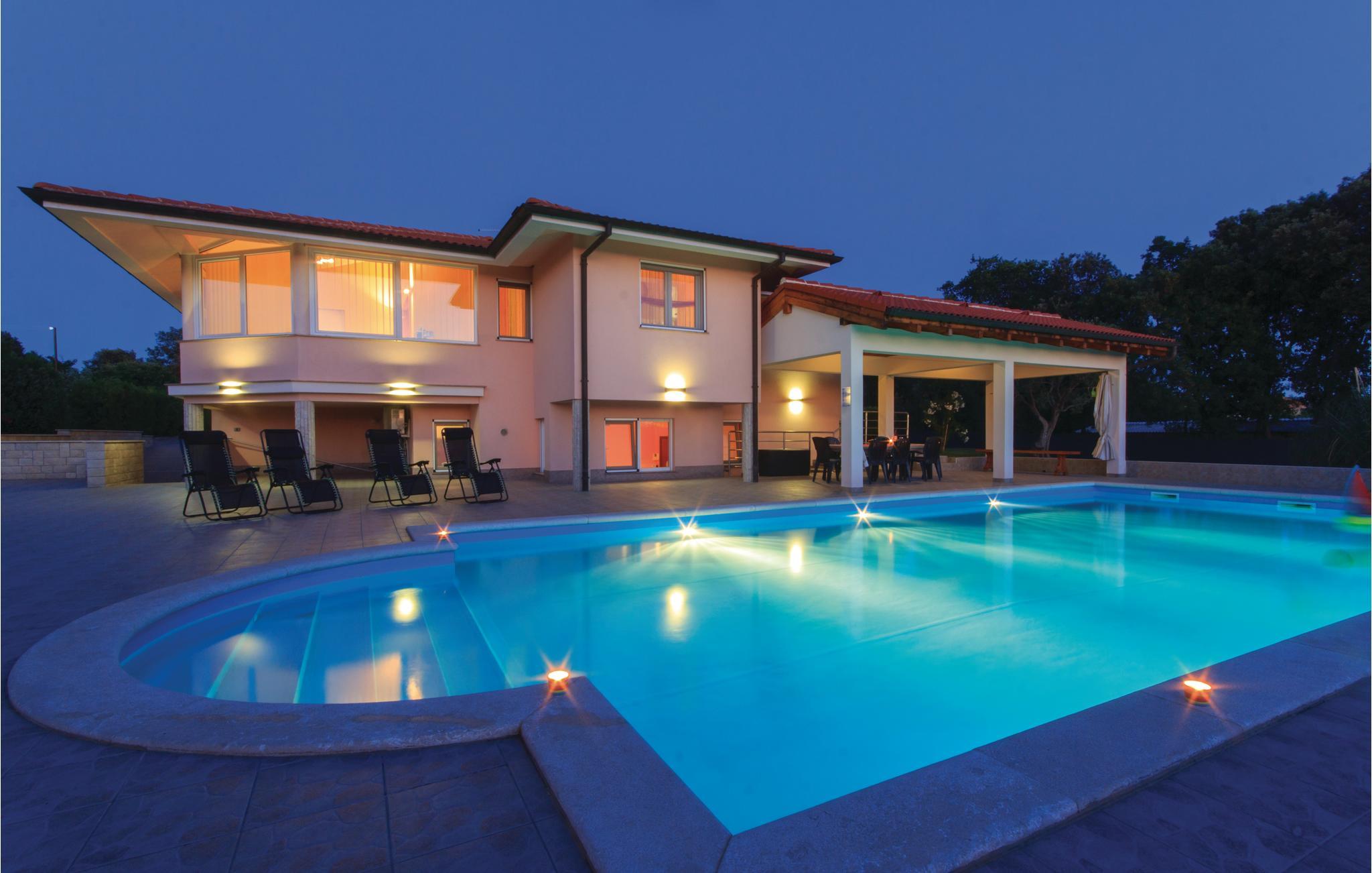 Dette skønne feriehus ligger i udkanten af Pula. Huset er overordentligt komfortabelt, indrettet med øje for selv den mindste detalje. I souterrain (indendørs trapper) ligger der endnu et køkken, et toilet og et soveværelse. Der er klimaanlæg i stueplan. Fra souterrain er der direkte udgang til terrassen med swimmingpool. Her kan I nyde de lange varme dage og tage en svømmetur når det bliver for vamt. Huset er ideelt til familier med børn, med god plads til at lege og tumle sig. Besøg Pulas gamle bydel, med mange historiske seværdigheder og gå en skøn tur langs Lungomare promenaden. Besøg også Brijuni-øgruppen der består af fjorten store og små øer.