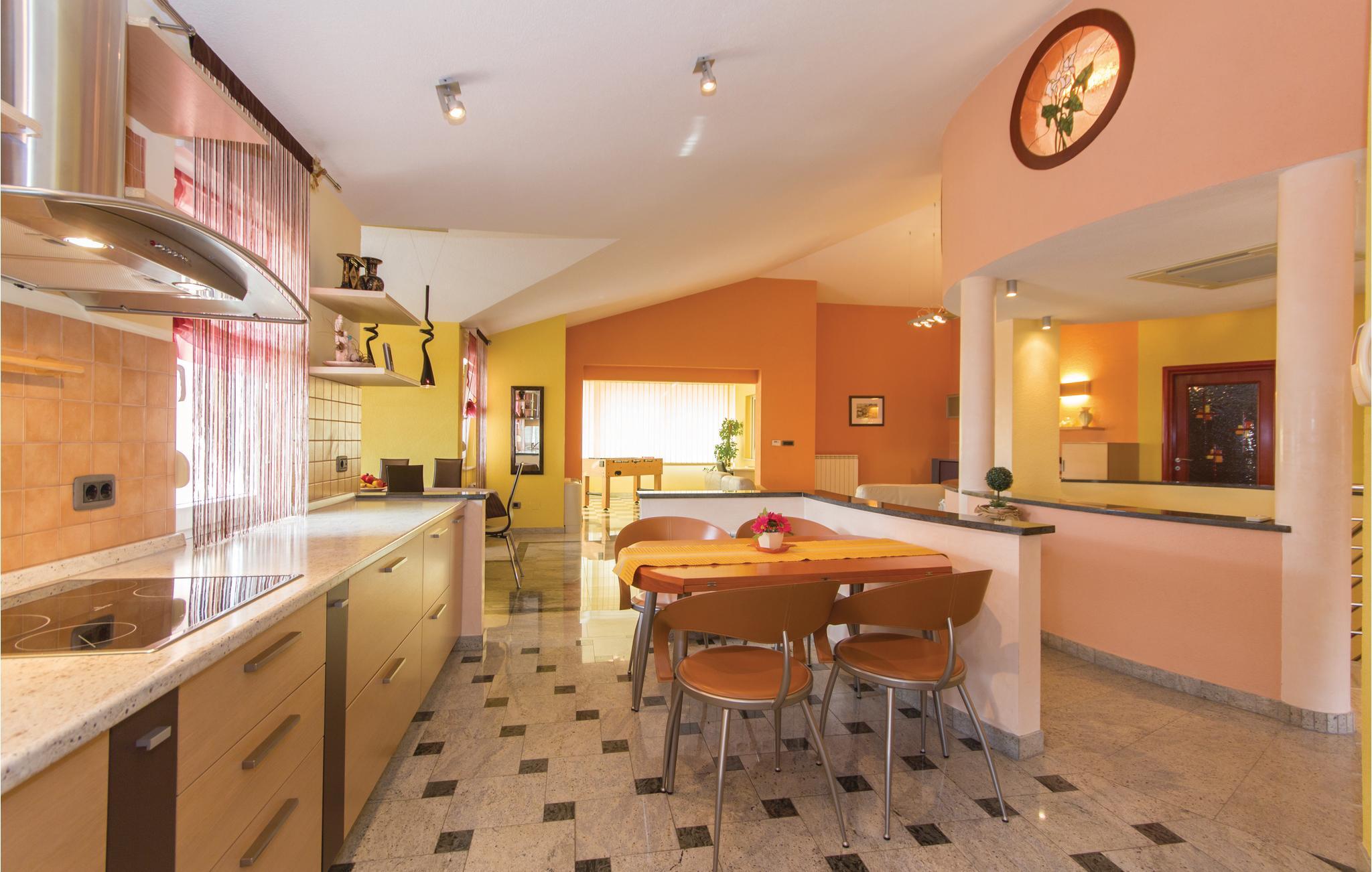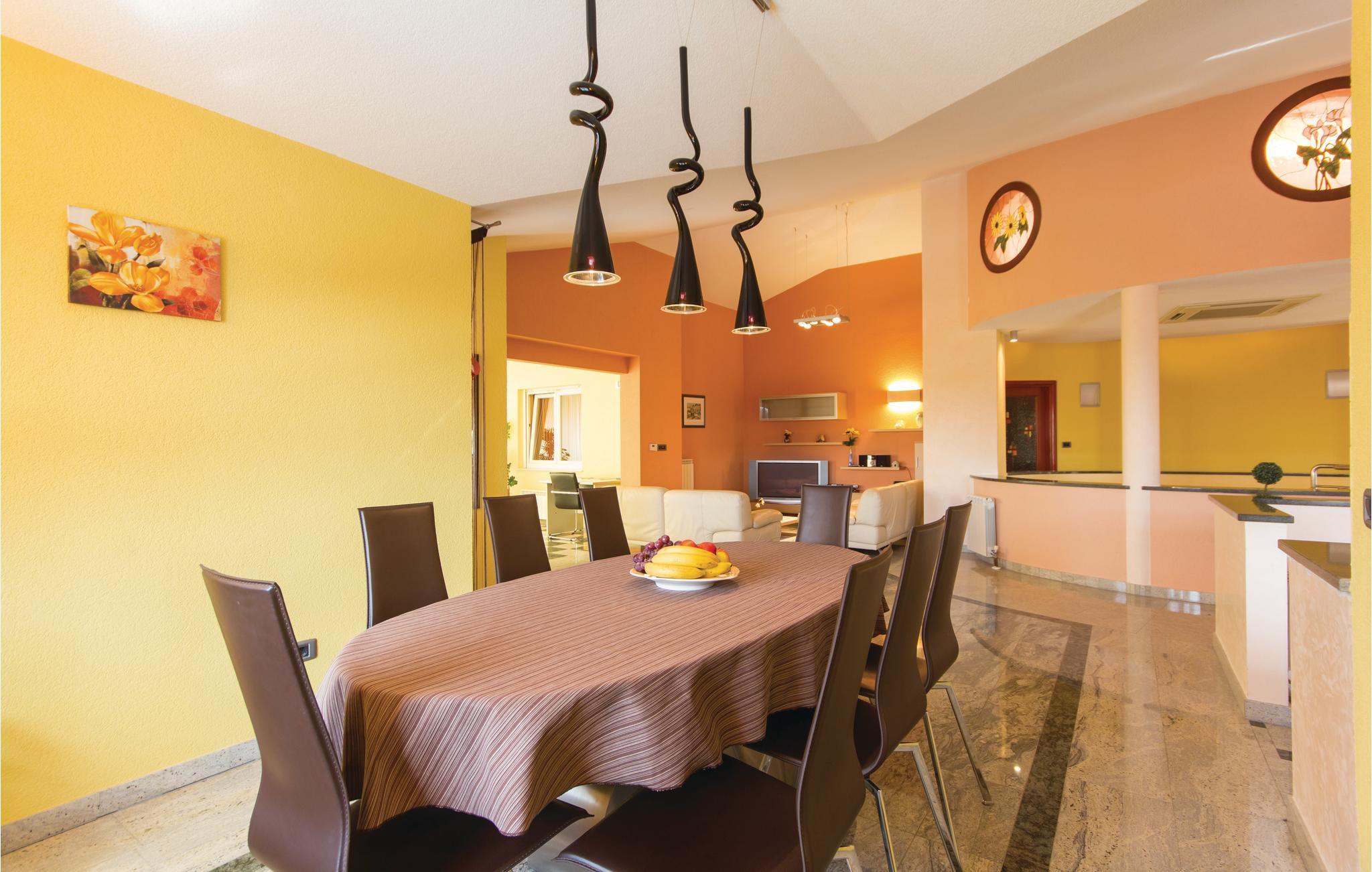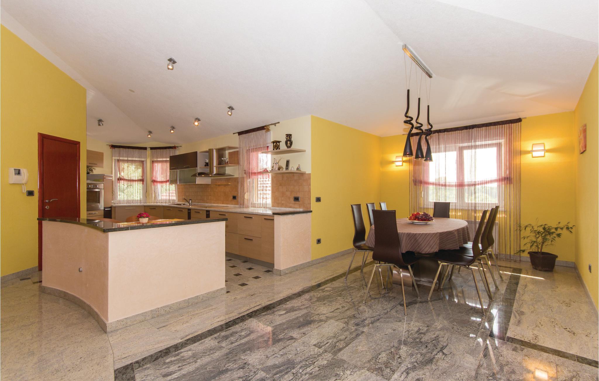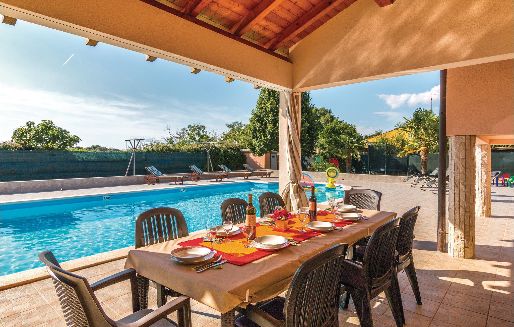 Dette skønne feriehus ligger i udkanten af Pula. Huset er overordentligt komfortabelt, indrettet med øje for selv den mindste detalje. I souterrain (indendørs trapper) ligger der endnu et køkken, et toilet og et soveværelse. Der er klimaanlæg i stueplan. Fra souterrain er der direkte udgang til terrassen med swimmingpool. Her kan I nyde de lange varme dage og tage en svømmetur når det bliver for vamt. Huset er ideelt til familier med børn, med god plads til at lege og tumle sig. Besøg Pulas gamle bydel, med mange historiske seværdigheder og gå en skøn tur langs Lungomare promenaden. Besøg også Brijuni-øgruppen der består af fjorten store og små øer.