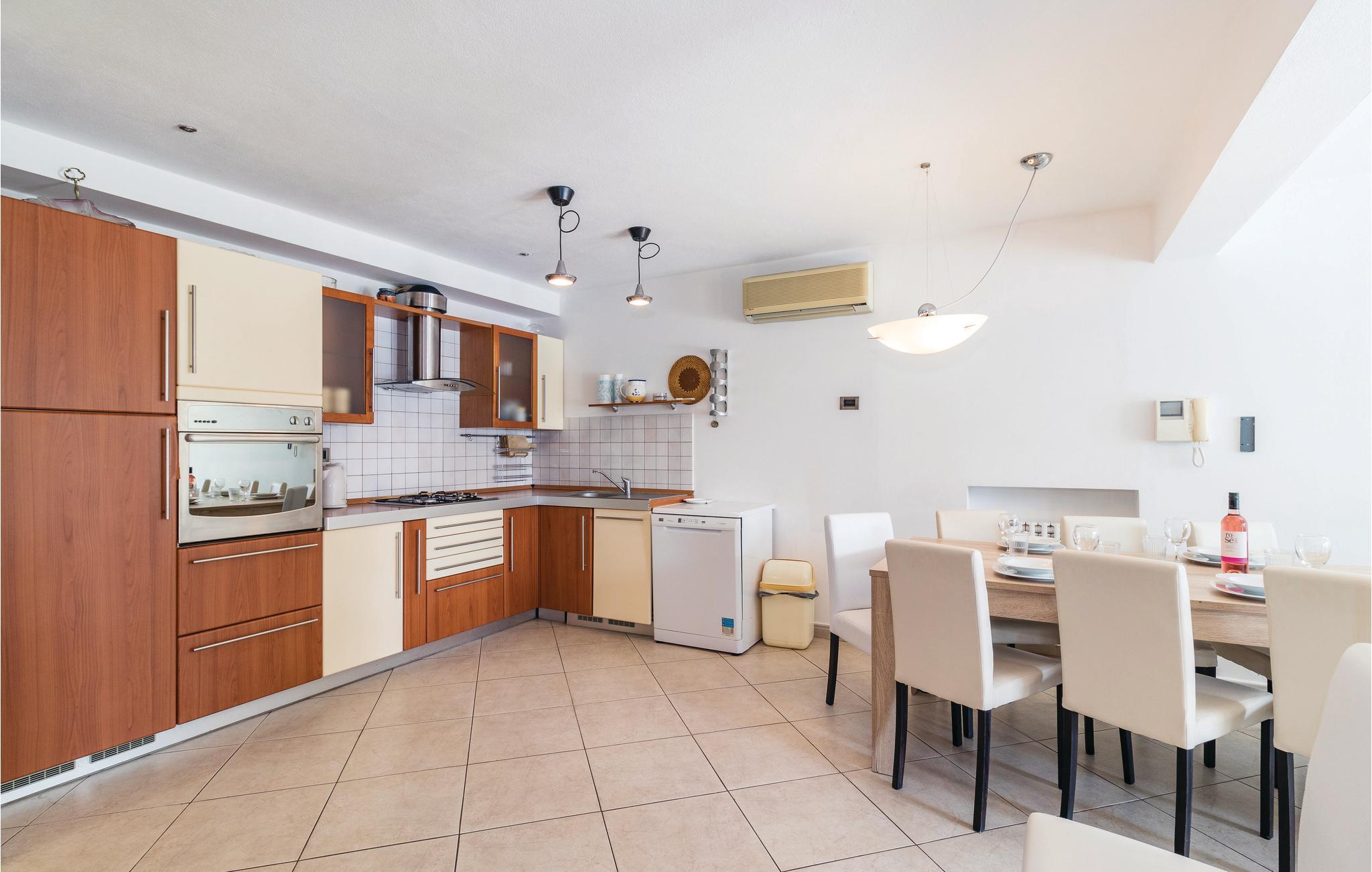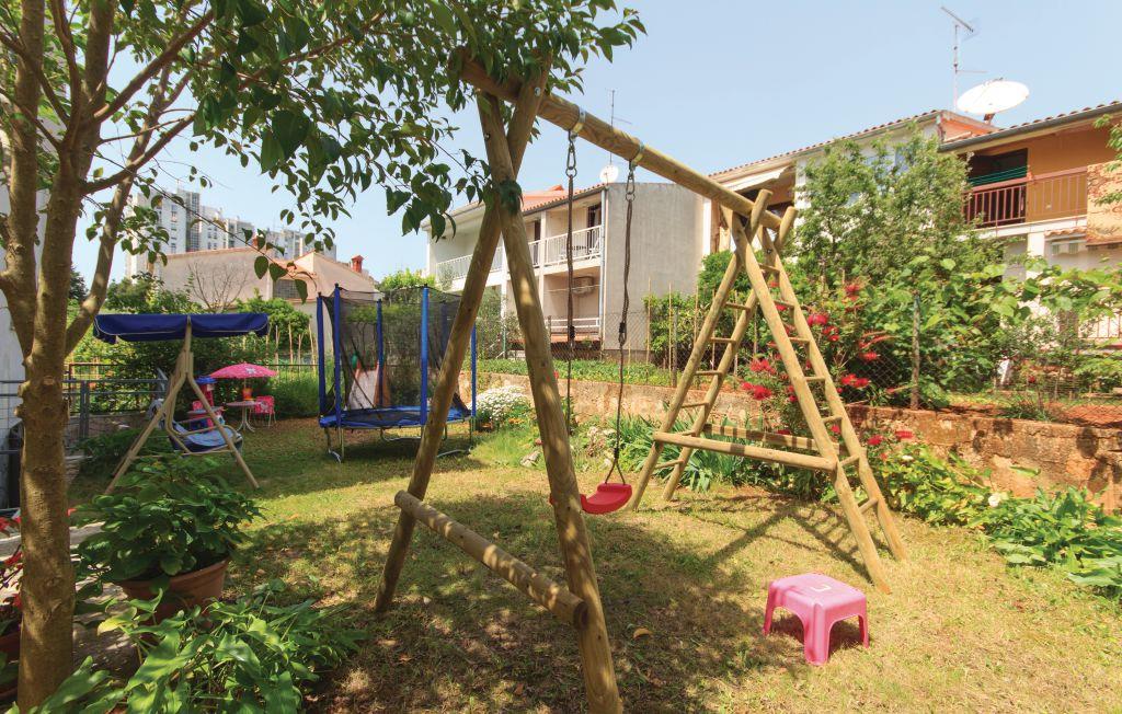 Dette rækkehus ligger i en forstad til Pula, blot et få minutters spadseretur fra de skønne bystrande. Huset er ideelt til et større selskab. I stueplan ligger fitnessrummet, saunaen og en fælles spisestue kombineret med køkken. Foran køkkenet ligger terrassen, hvor grillen står. På første sal ligger den rummelige stue, endnu et fuldt udstyret køkken, en terrasse og to soveværelser. På anden sal er der fire soveværelser, mens der ligger tre soveværelser på tagetagen. Det ene af disse har udgang til en skøn terrasse med havudsigt. I kan tage en dejlig svømmetur i poolen, som er udstyret med massagebad. I byens centrum er der mange seværdigheder fra antikken og sjov underholdning, især i løbet af højsommeren. Til huset hører også en garage.