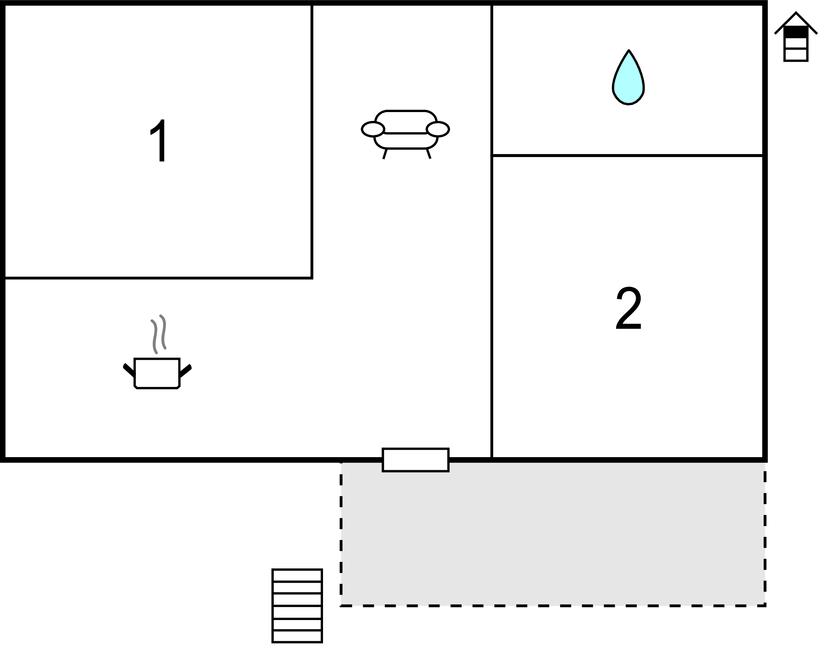 Opholdsstue/køkken - 2 Sovepladser. (Sofa, madras eller lignende).