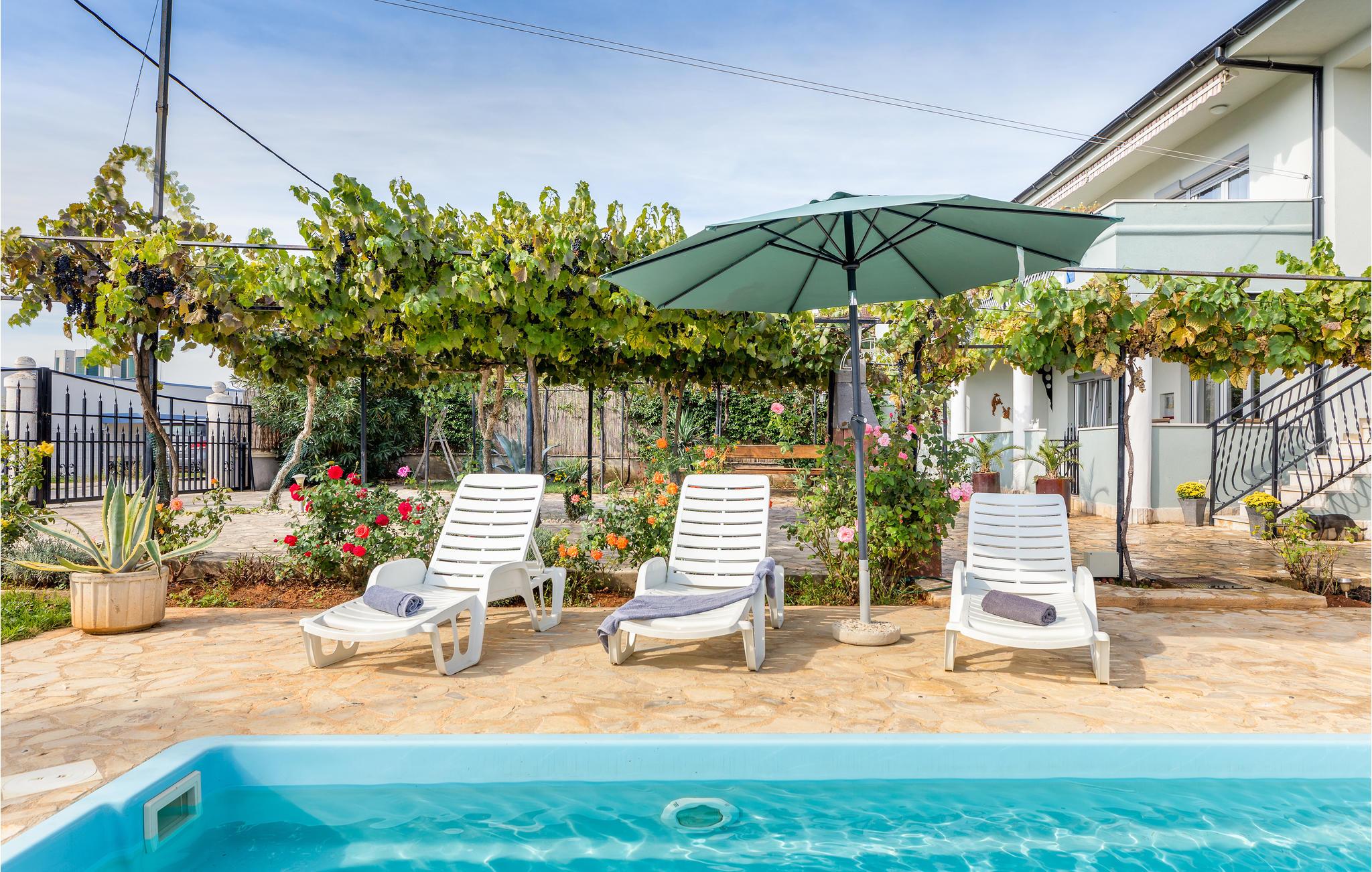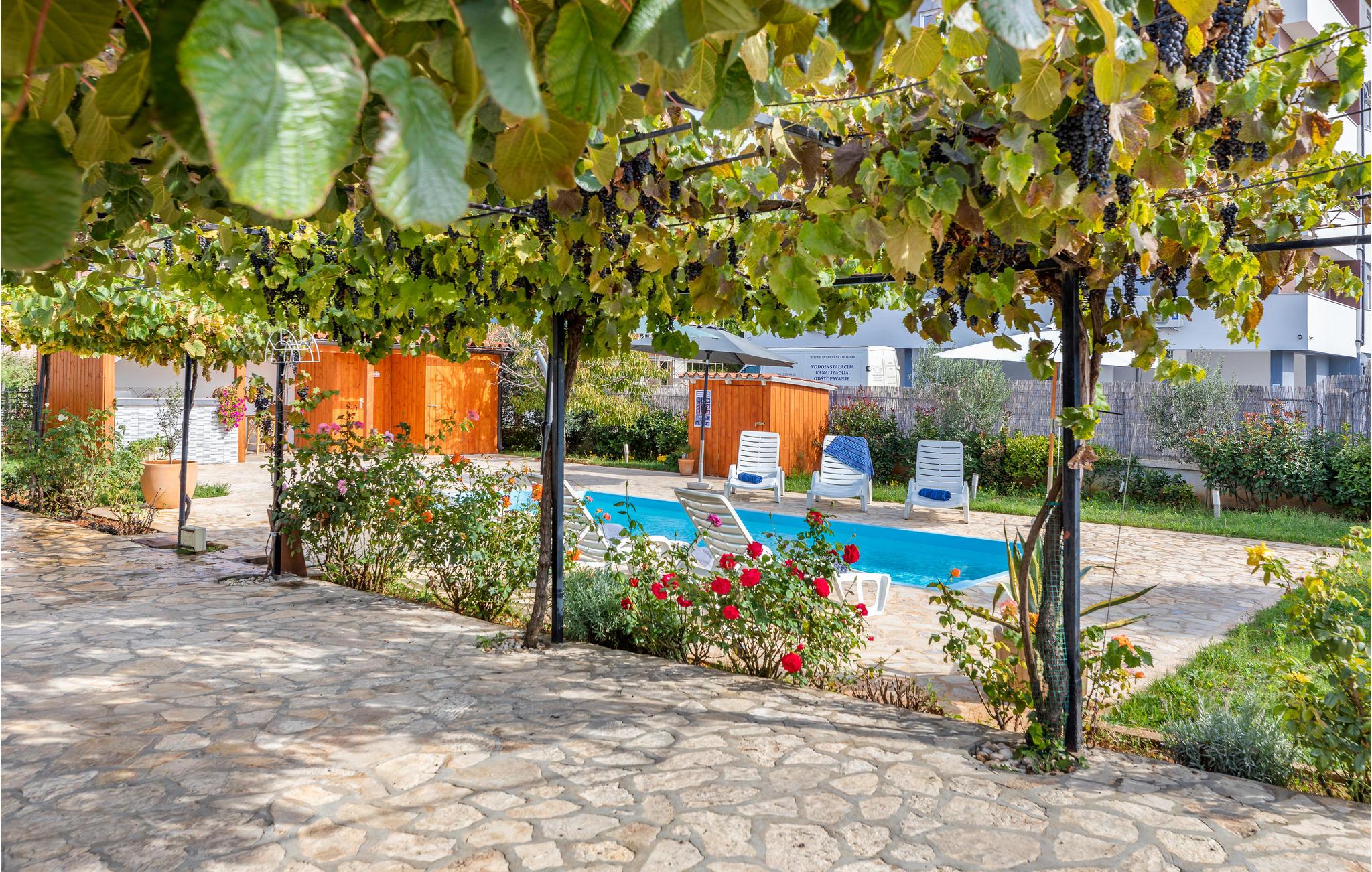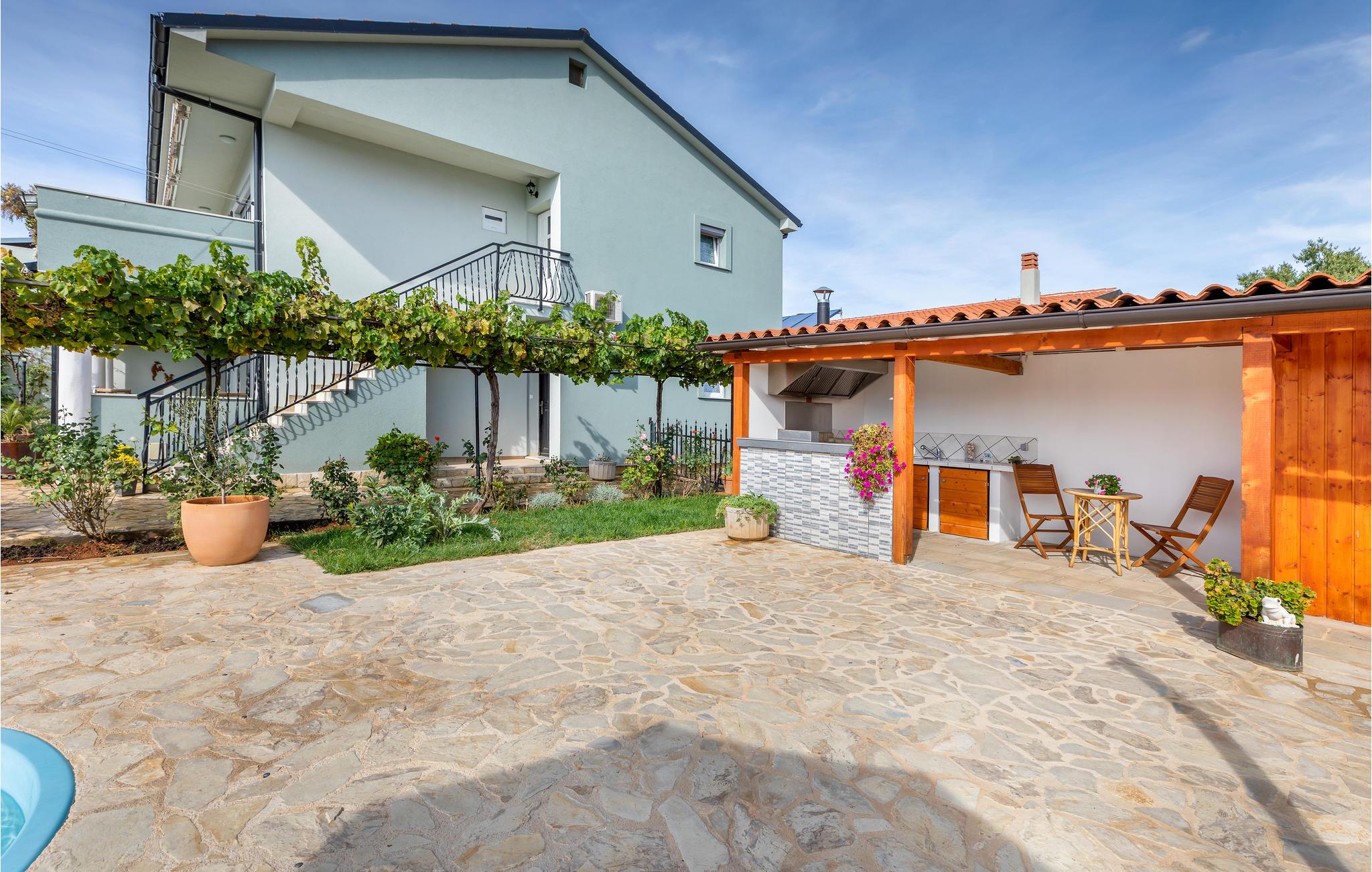 Disse to rummelige og godt udstyrede ferielejligheder ligger i et dejligt hus, nær Pula. Huset bebos kun af feriegæster. Slap af på den fælles velplejede grund. Lejlighedens beliggenhed er perfekt til børnefamilier, da der kun er få minutter i bil til byens centrum og til de nærmeste badestrande og omgivelserne er rolige. Gå en tur gennem Pulas centrum, hvor der er megen sommerunderholdning og oplev de mange seværdigheder fra romertiden. Feriebyen Medulin er bestemt også et besøg værd. I den fælles pool kan I svømme og lege i vandet og i kan lave mad på den overdækkede terrasse med udendørs køkken. Det udendørs toilet er til fælles brug.