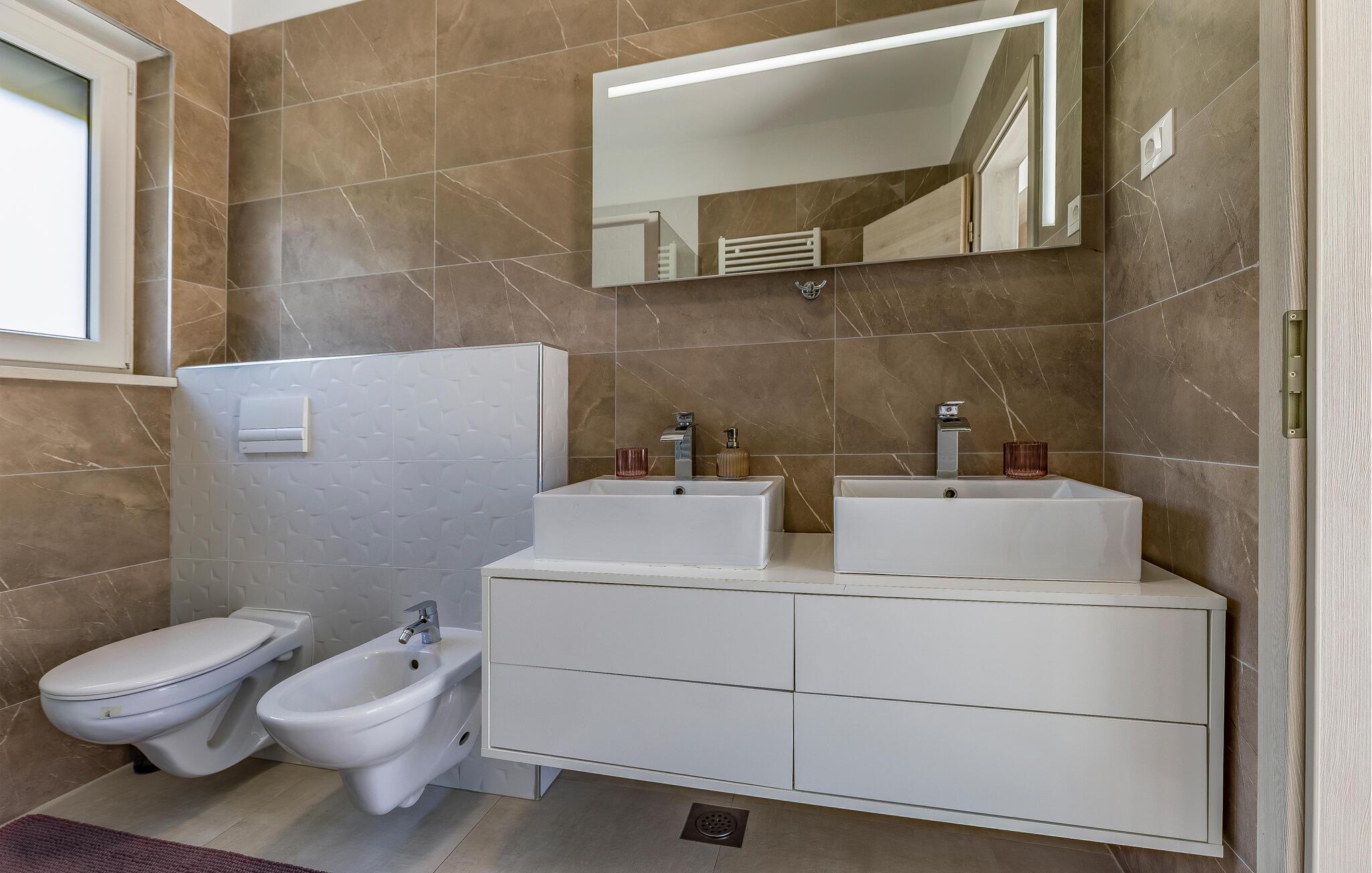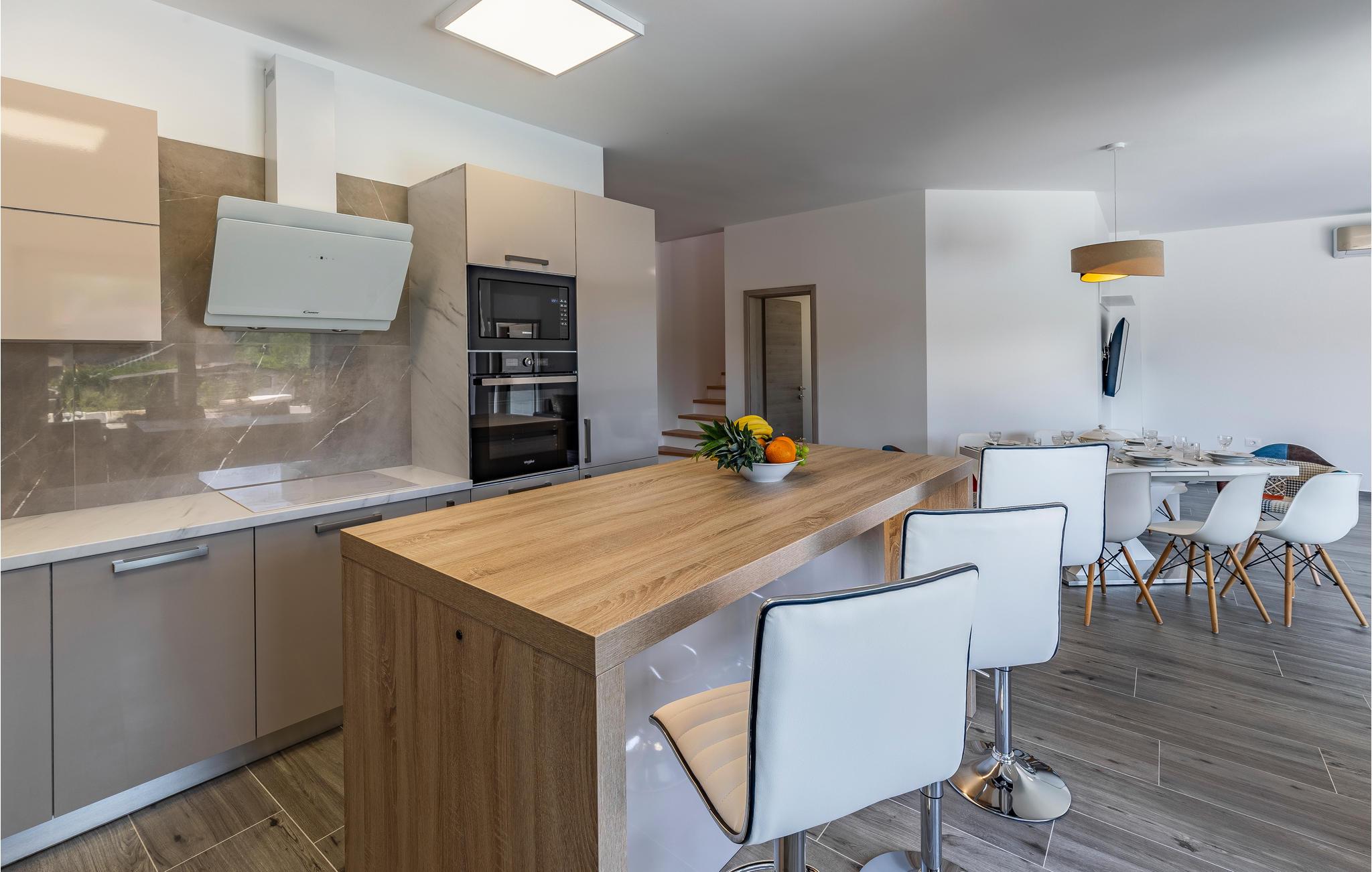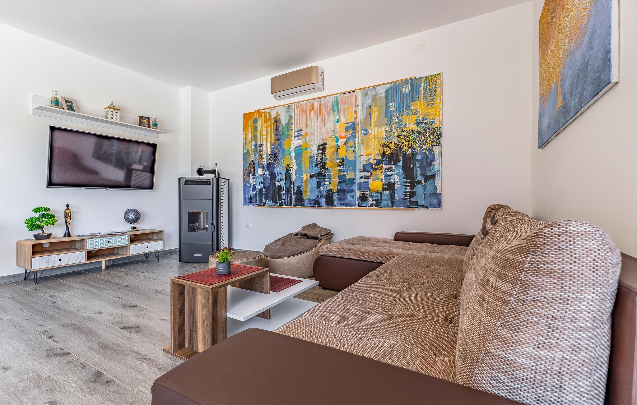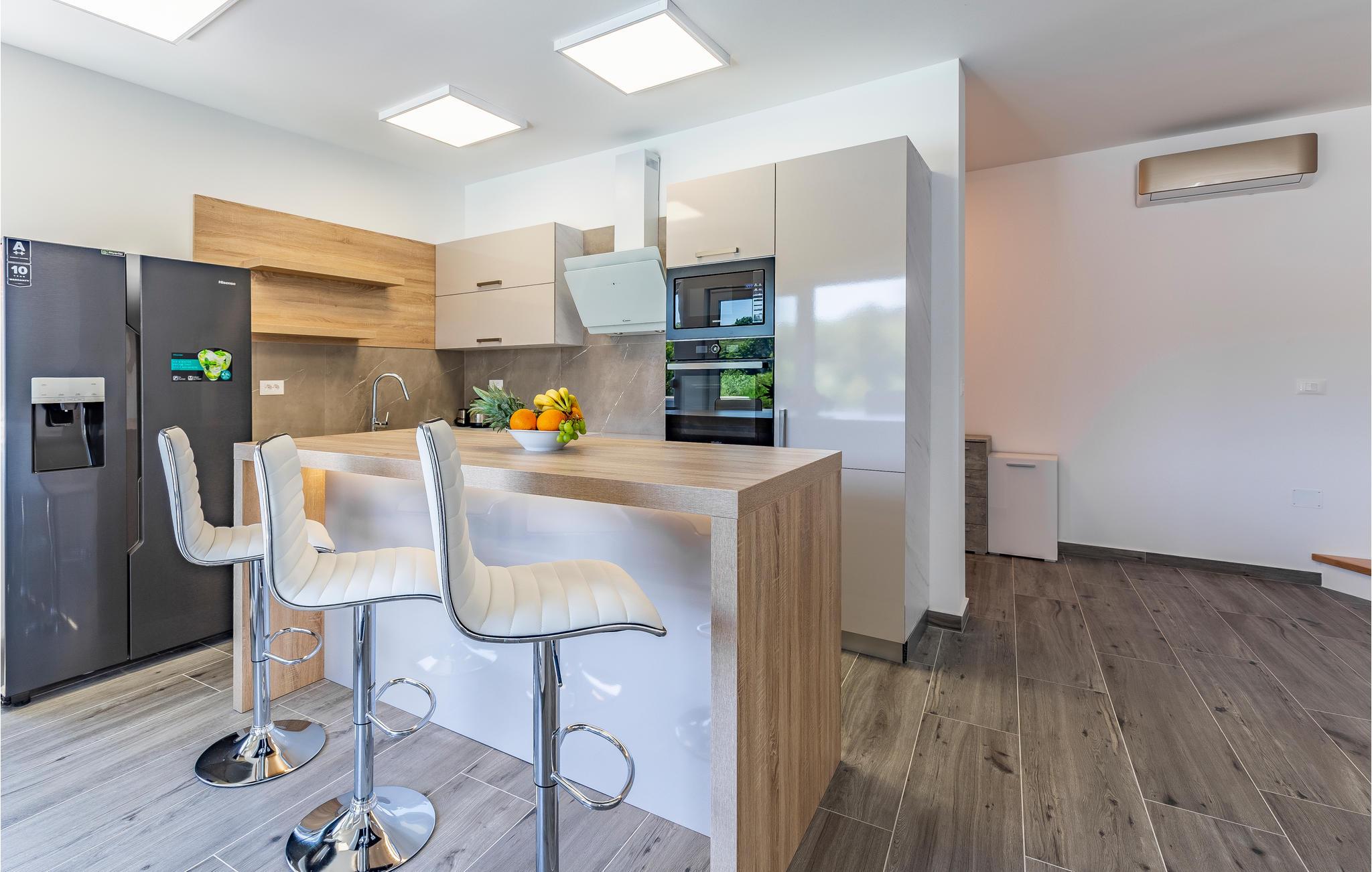 Med en rolig beliggenhed i udkanten af Pula, ligger denne flotte halvdel af et dobbelthus med privat swimmingpool. Det er bygget i morderne stil og tilbyder lækker massage i spabadet på terrassen.