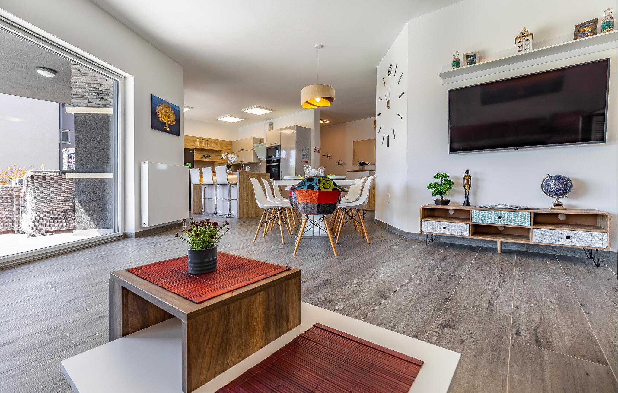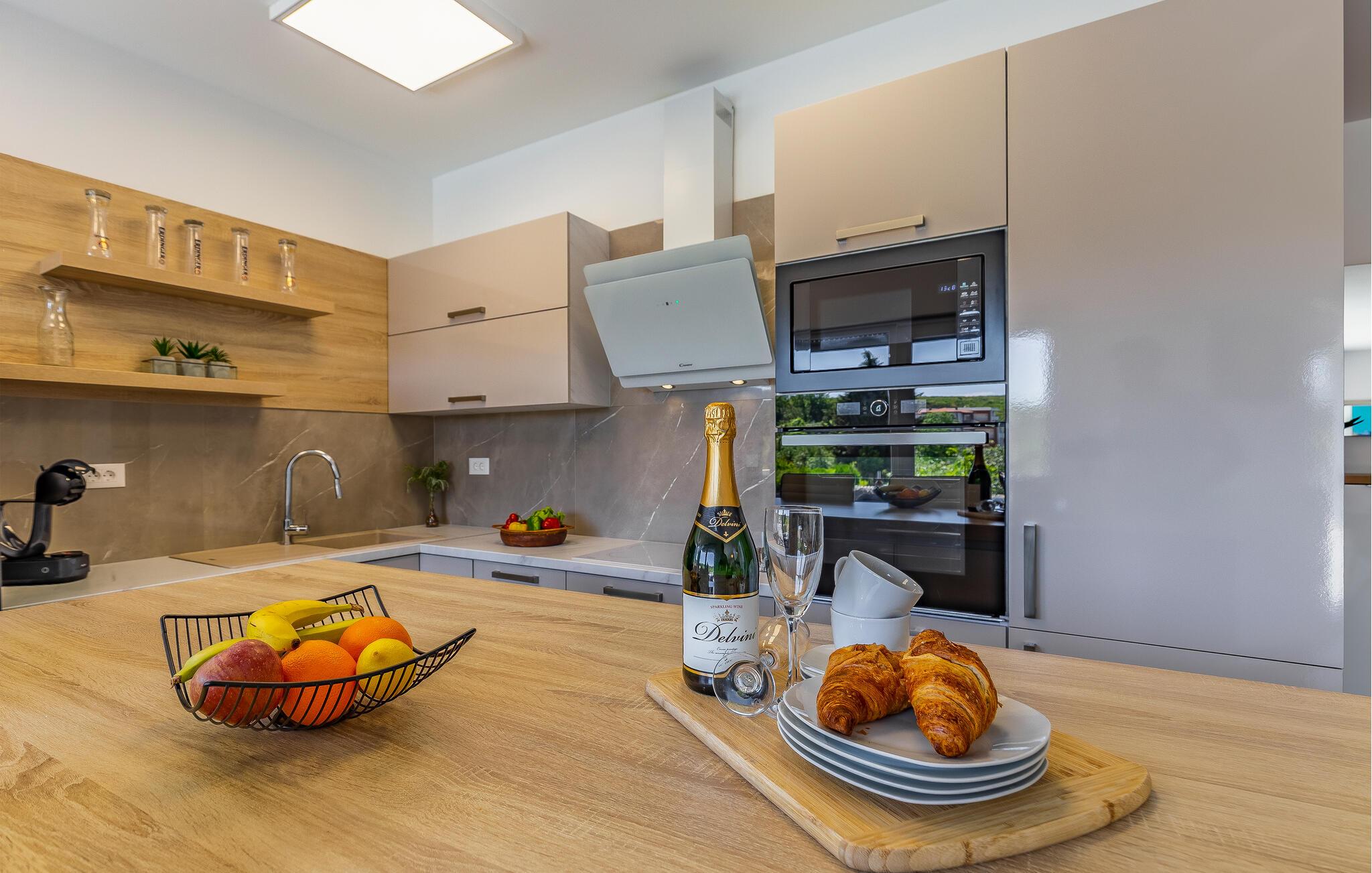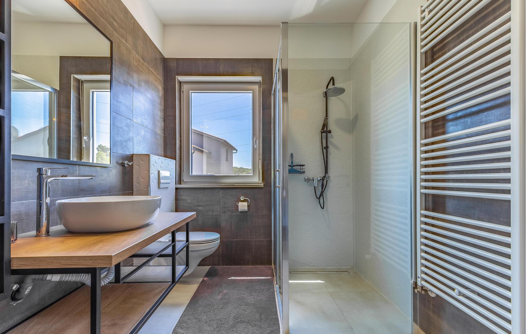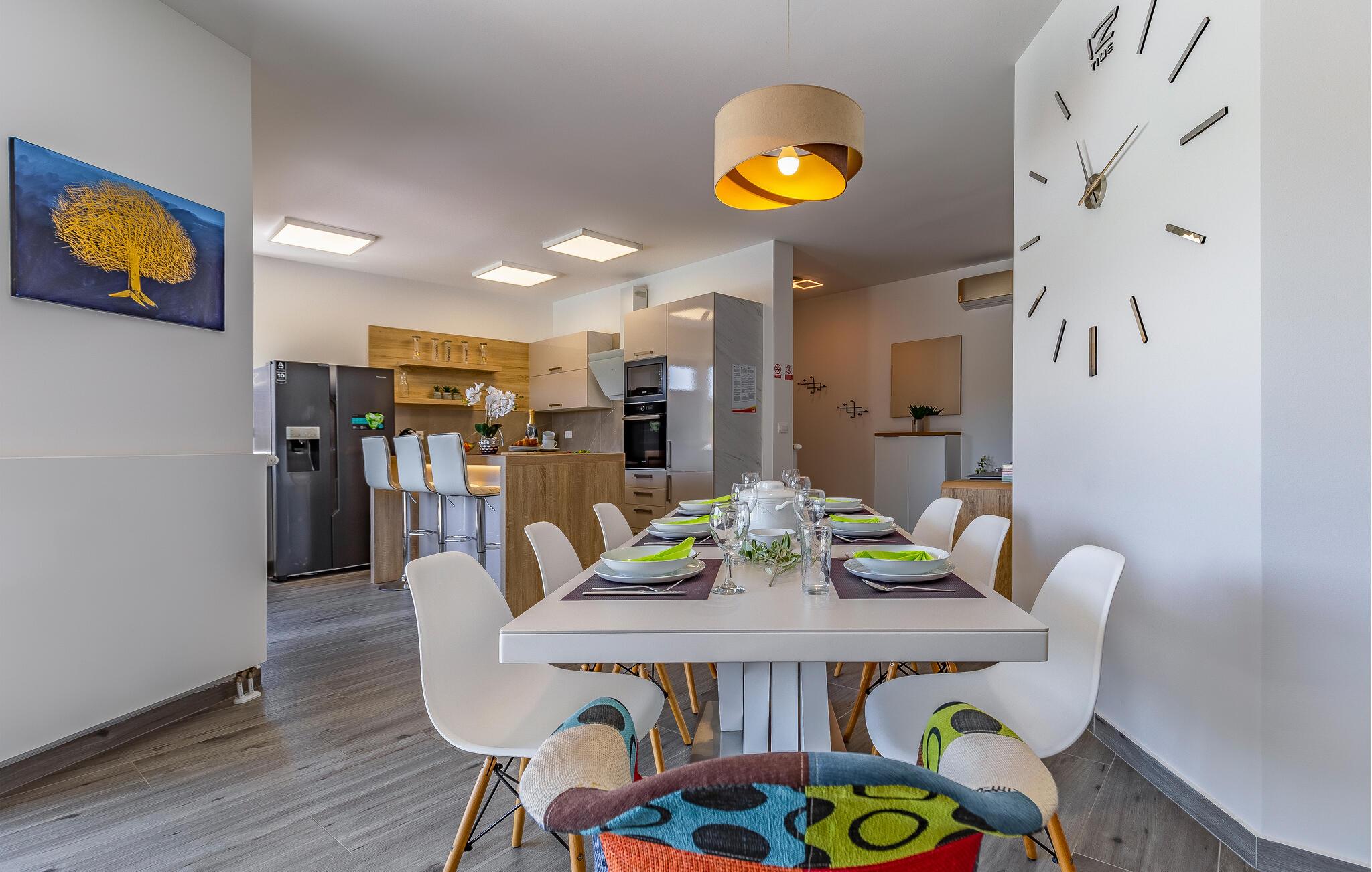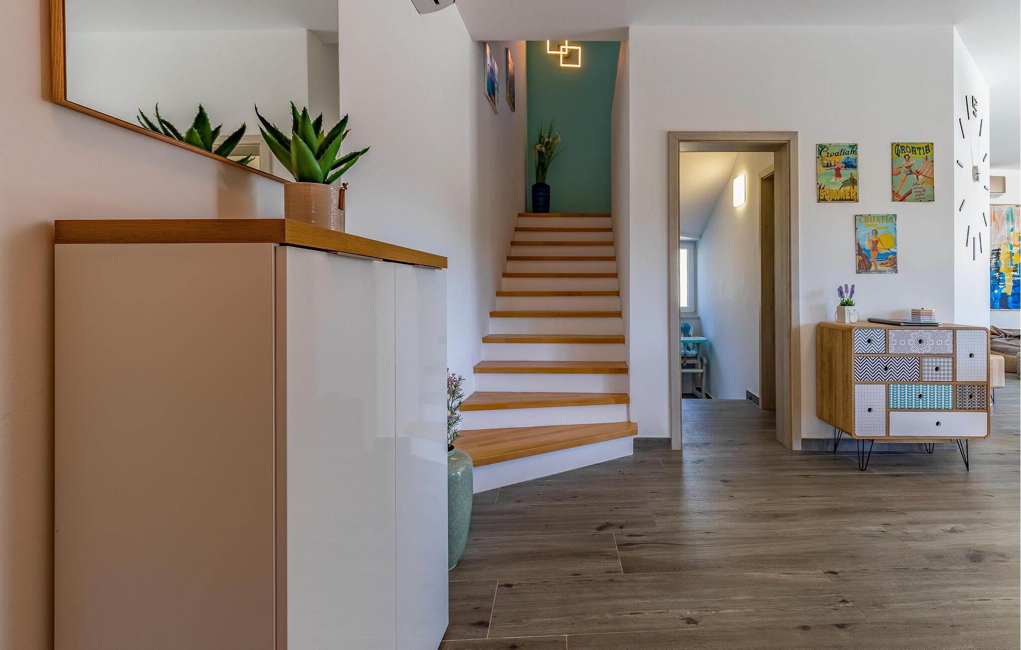 Med en rolig beliggenhed i udkanten af Pula, ligger denne flotte halvdel af et dobbelthus med privat swimmingpool. Det er bygget i morderne stil og tilbyder lækker massage i spabadet på terrassen.