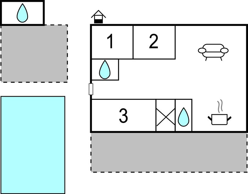 Soveværelse (nr. 1) - 2 Sovepladser. (Dobbeltseng(e)). 1 Soveplads. (Sofa, madras eller lignende).