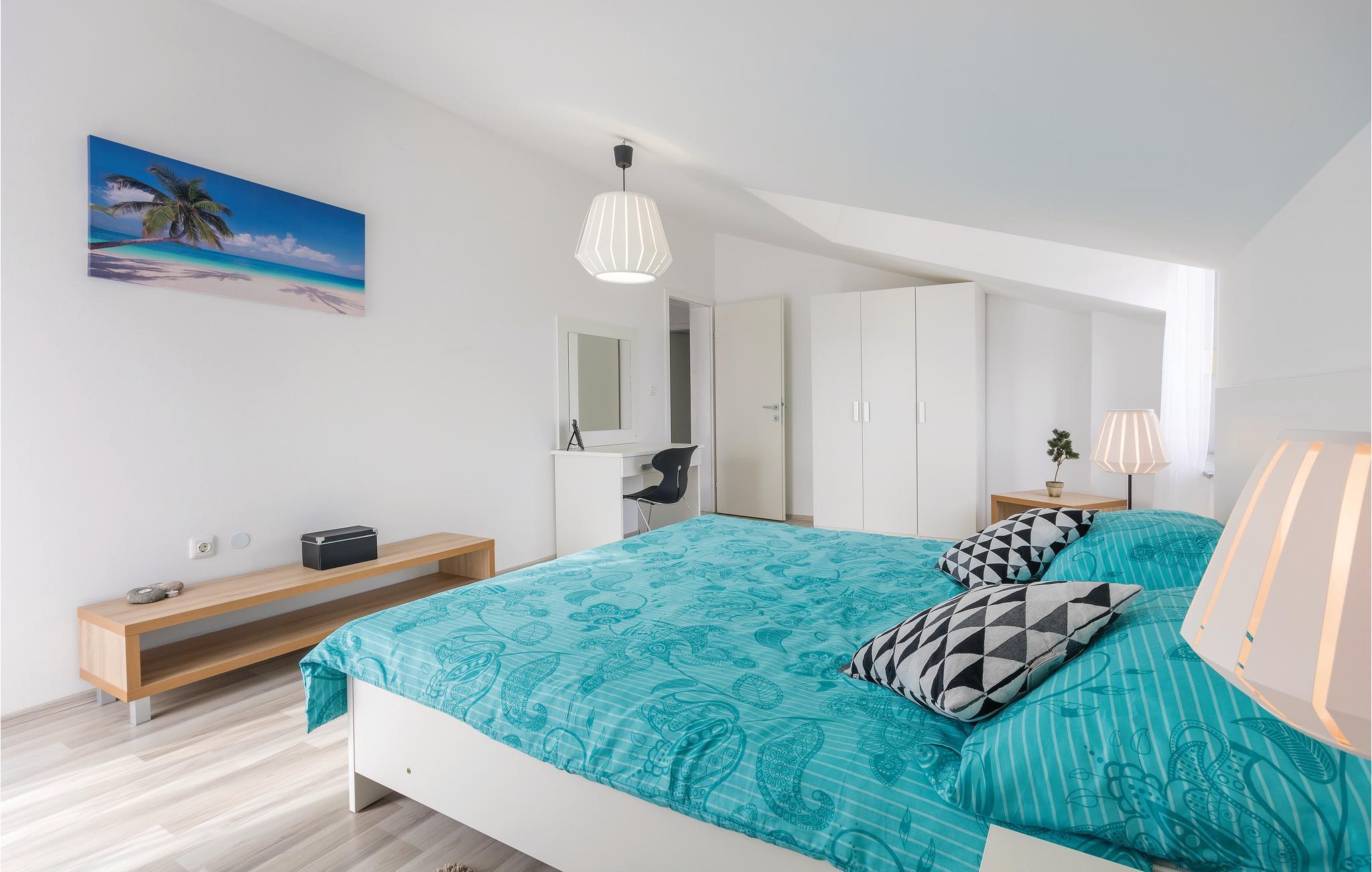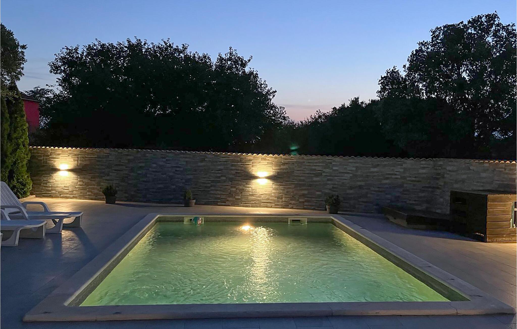 I en lille forstad til Pula, på en indhegnet grund, ligger dette skønne feriehus. Det moderne, lyse og ikke mindst rummelige indre, fordeler sig over stueetage og første sal hvor væggene skråner fra 50cm fra gulvet. Udendørs er swimmingpoolen grundens naturlige omdrejningspunkt, hvor I vil tilbringe adskillige timer med afslapning, solbadning og forfriskende dukkerter. Byerne Pula, Rovinj og Porec er oplagte udflugtsmål, der hver har et omfattende program af kulturarrangementer hen over sommeren. Tag også på opdagelse på områdets betagende naturstrande. Bestemt et udgangspunkt for en uforglemmelig familieferie.