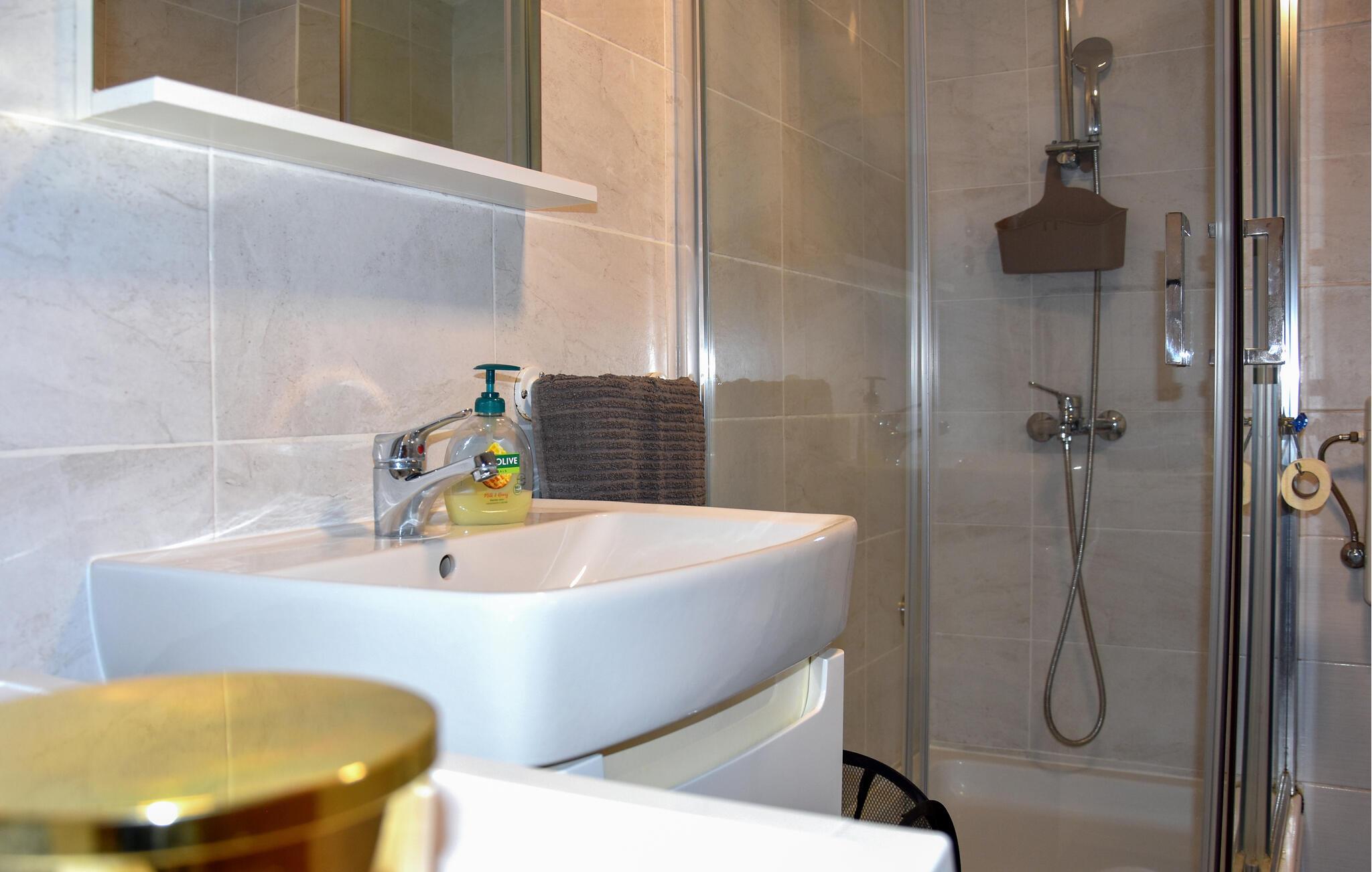 Badeværelse (nr. 1) - WC. Varmt og koldt vand. Bruser