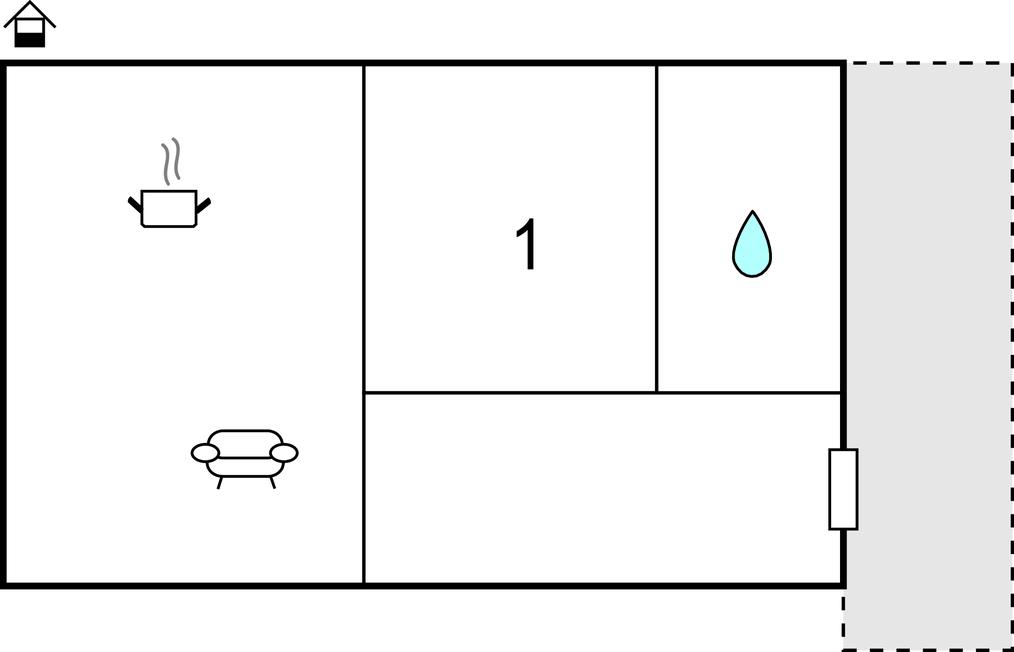Opholdsstue/køkken - 1 Soveplads. (Sofa, madras eller lignende).