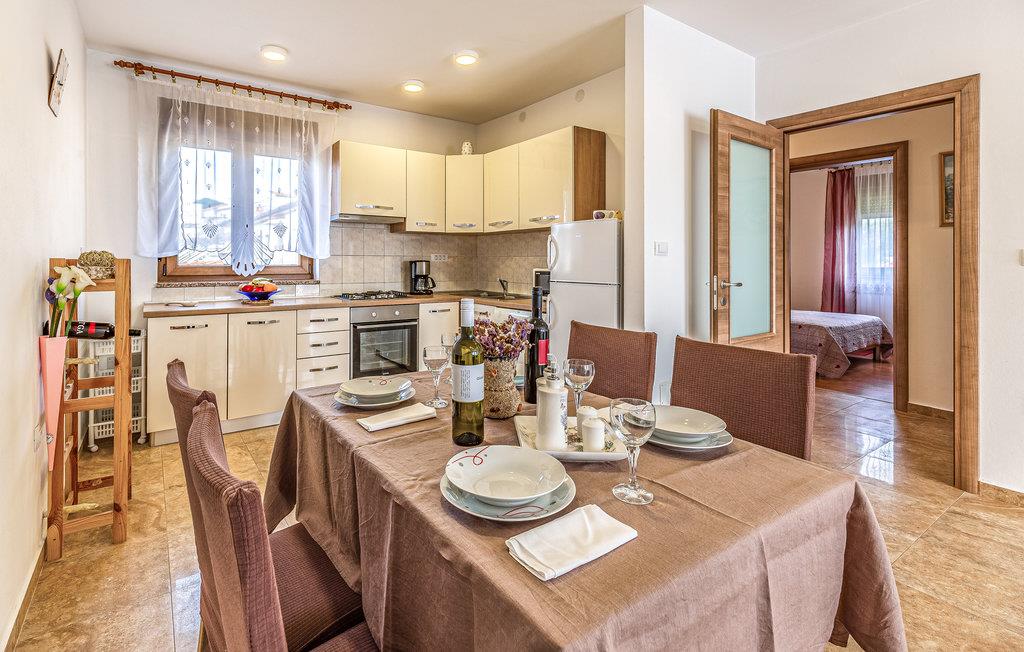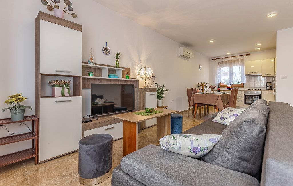 Denne rummelige ferielejlighed ligger i en privat ejendom og vil danne dejlige rammer om en afslappende ferie. Lejligheden er behageligt møbleret og komfortabelt udstyret. Den rummelige terrasse inviterer til skønne afslappede timer udendørs. Det tager kun få minutter at køre til byens skønne strand og Pula lokker med sine mange seværdigheder, kultur, sportsfaciliteter, forskellige arrangementer og koncerter, her er noget for alle og for alle aldersklasser. Det kan også anbefales at tage på udflugt til Rovinj, Porec eller Brijuniøernes National Park.