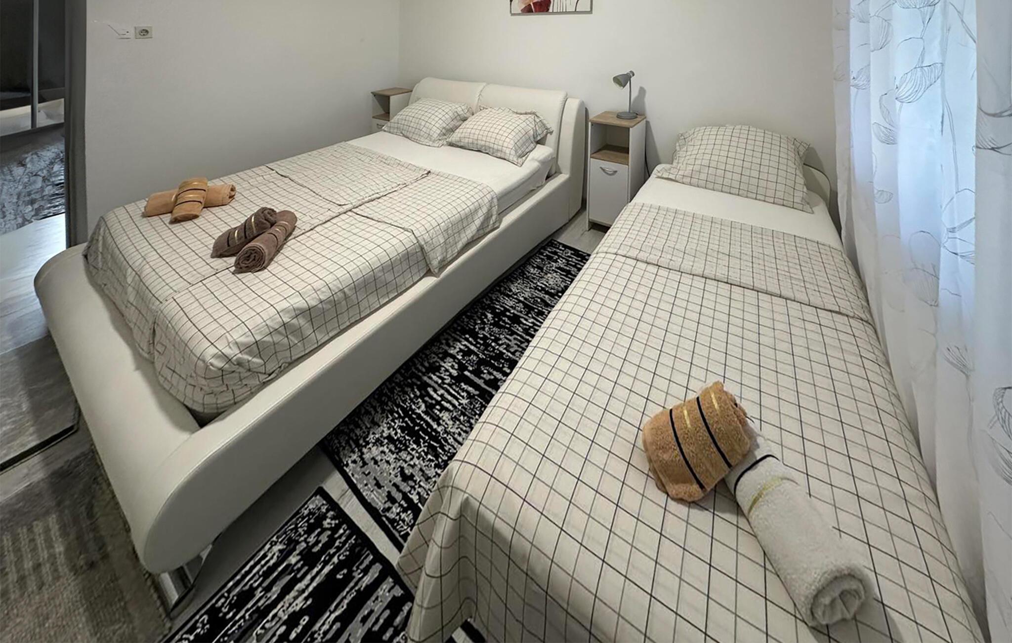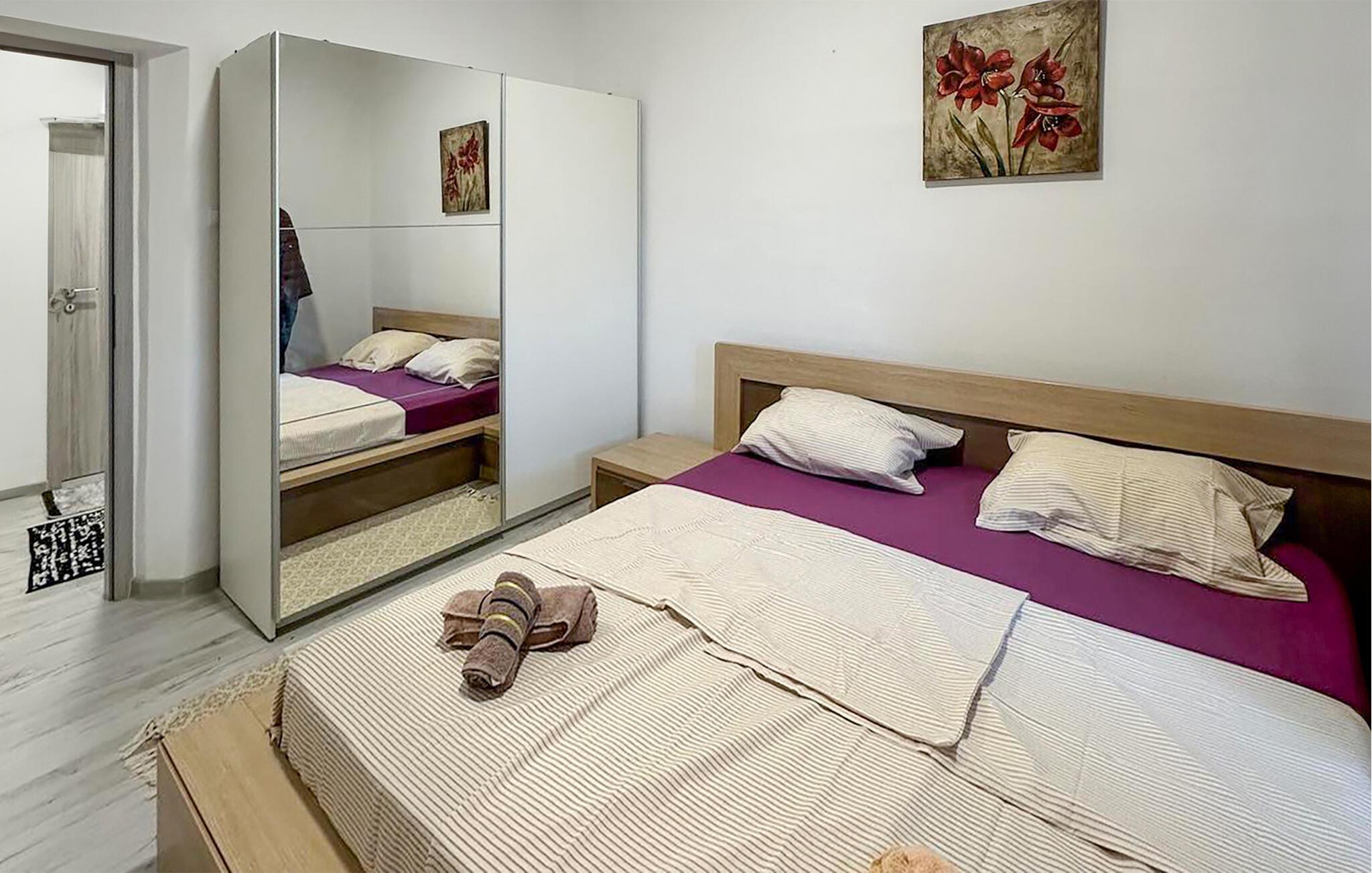 Tilbring ferien i denne smukt og enkelt indrettede lejlighed med to soveværelser, badeværelse, køkken og stue.