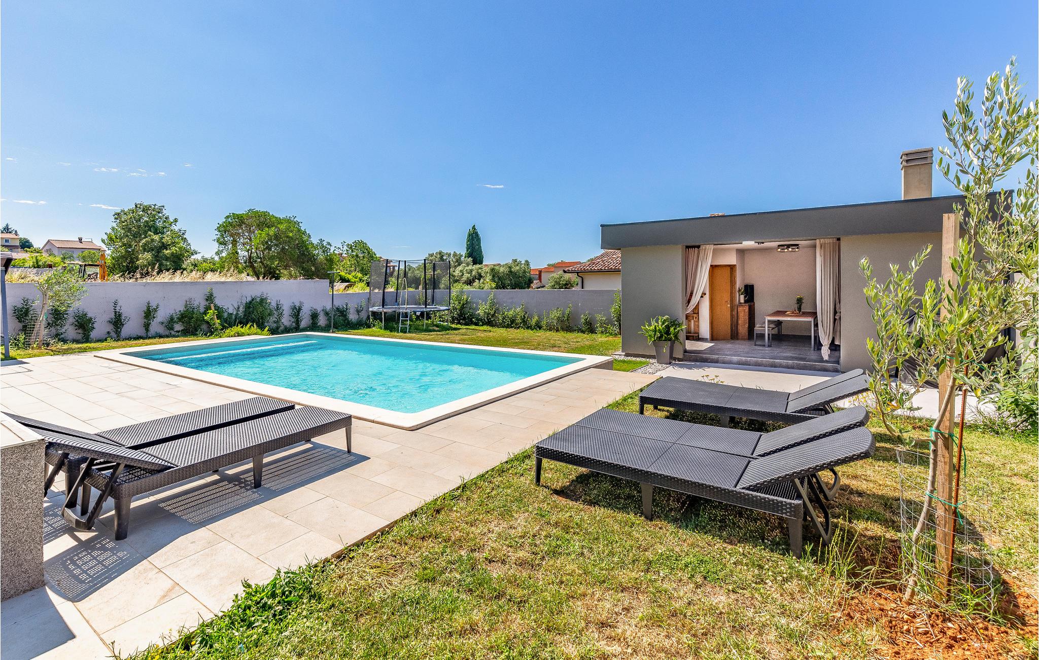 Dette lækre feriehus med pool ligger i en rolig forstad til Pula midt i enfamiliehuse.