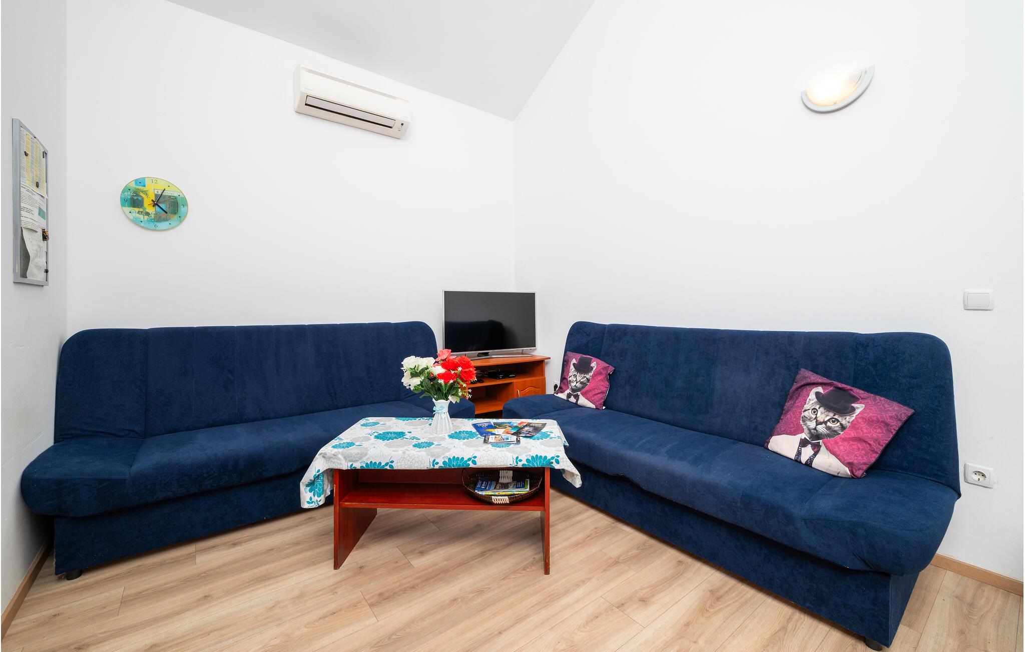 Ferielejligheden byder jer velkommen på første sal i et hus. Med sine moderne og attraktive møbler er den det ideelle sted til en afslappende ferie når som helst på året. Takket være aircondition kan I nyde behagelige temperaturer her selv om sommeren.