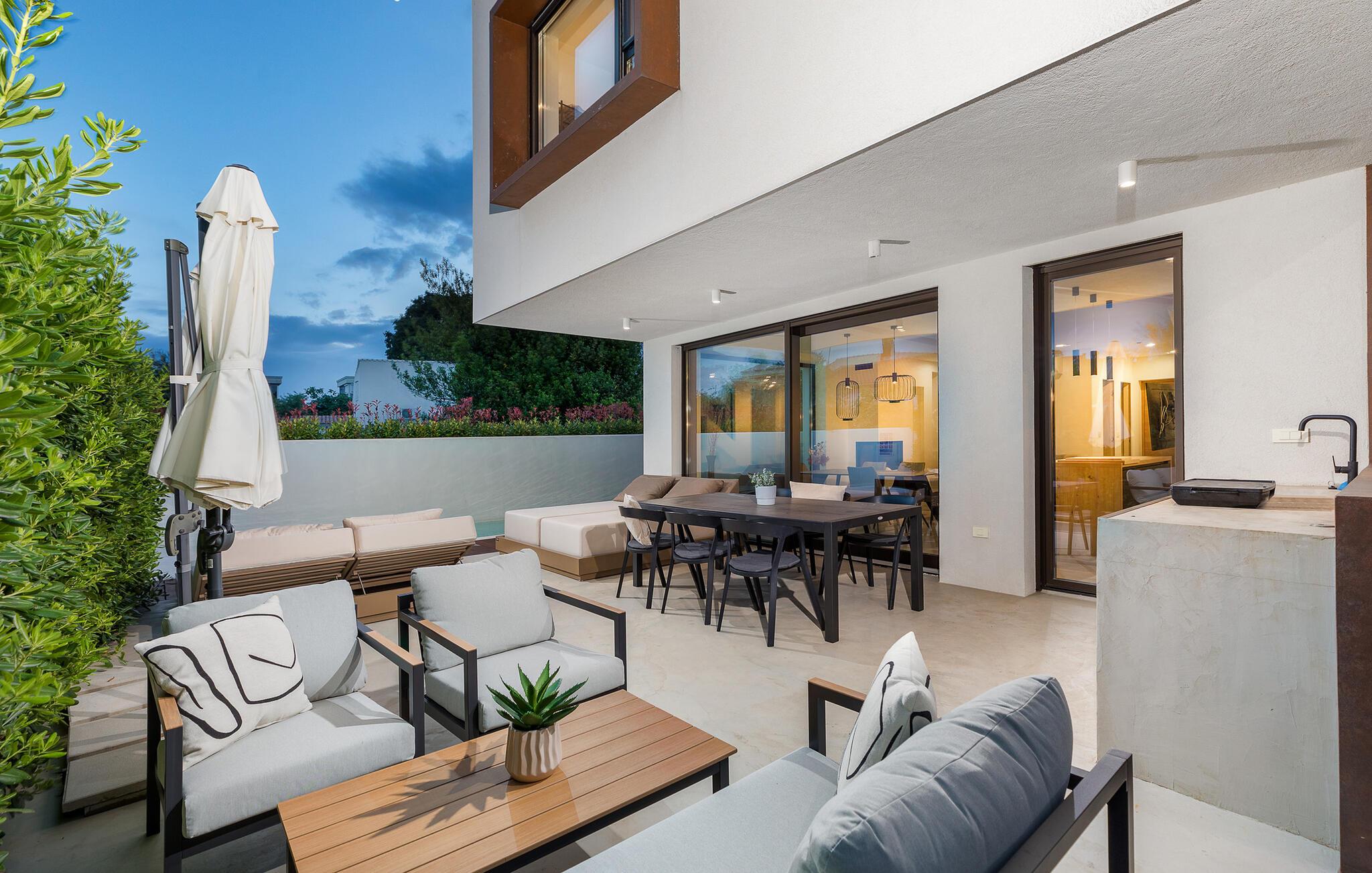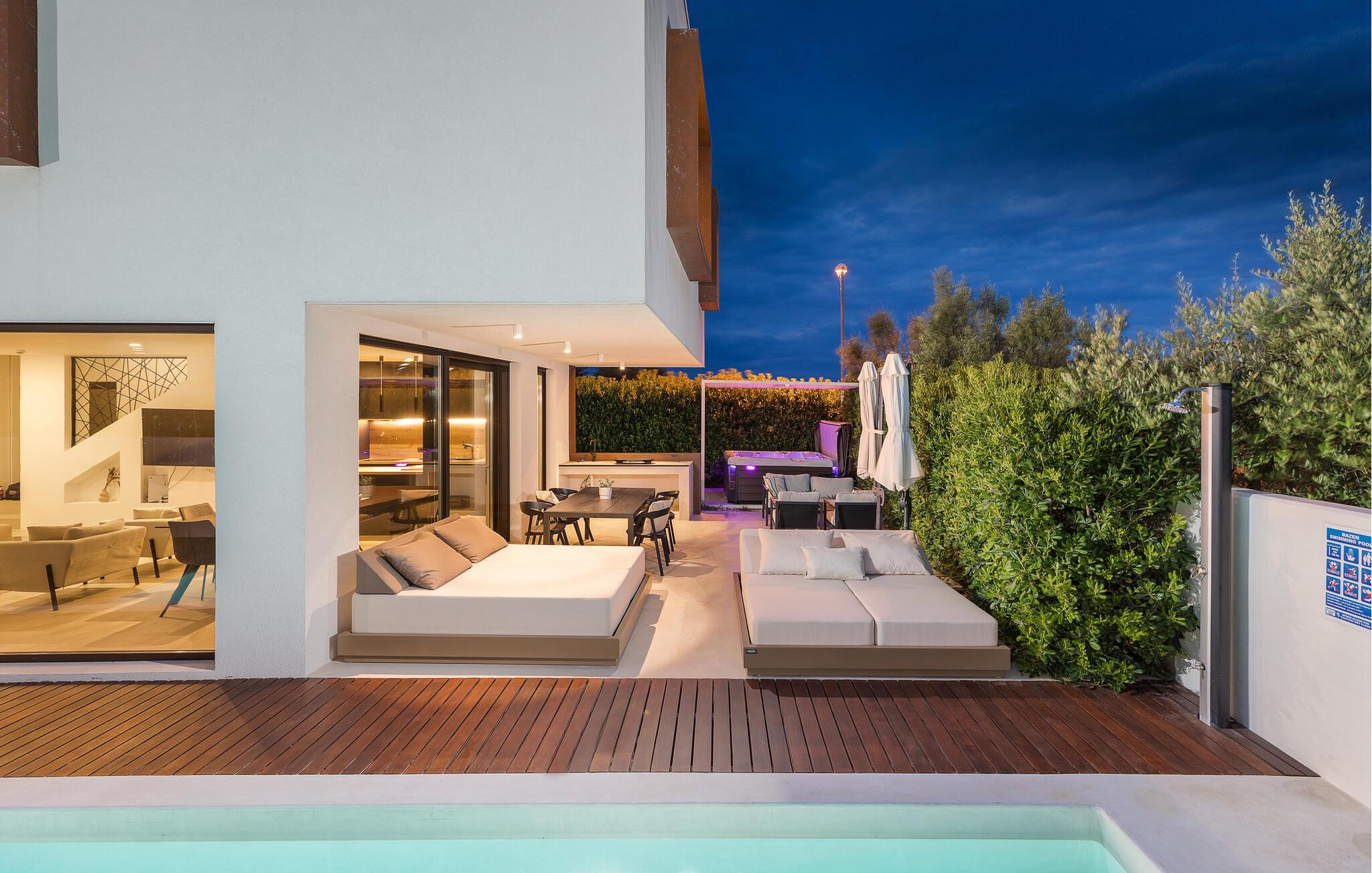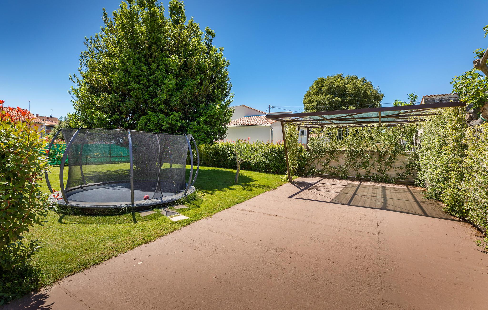 Dette feriehus er perfekt til en ferie med venner eller familie og har et moderne design med omhyggeligt udvalgte detaljer overalt. I vil især elske udendørs området. På første sal finder I en stor solterrasse, hvor I kan slappe af på liggestolene. Terrassen har et hvileområde samt en spiseplads. Her kan I spise morgenmad sammen og afslutte dagen med et glas vin. Der er naturligvis også en grill til hyggelige grillaftener til rådighed. Poolen har et elektrolysesystem og kan også give massage. Der er også en trampolin til de små.