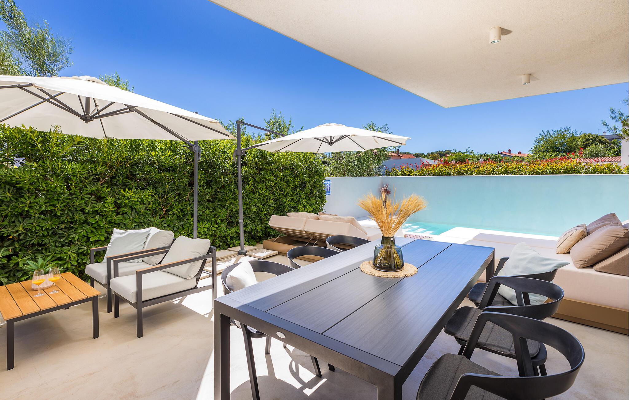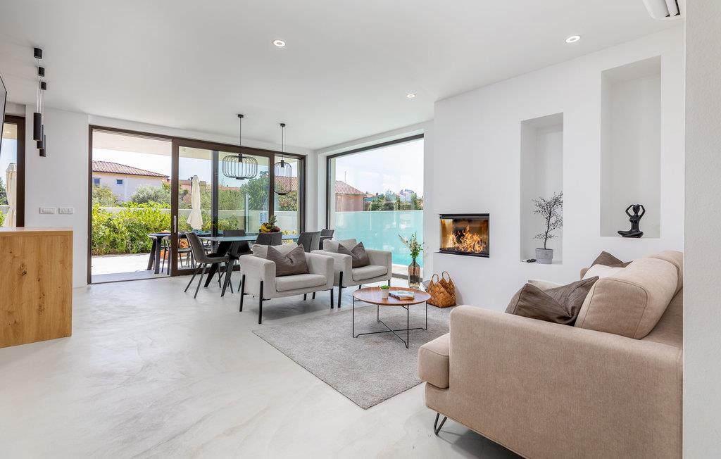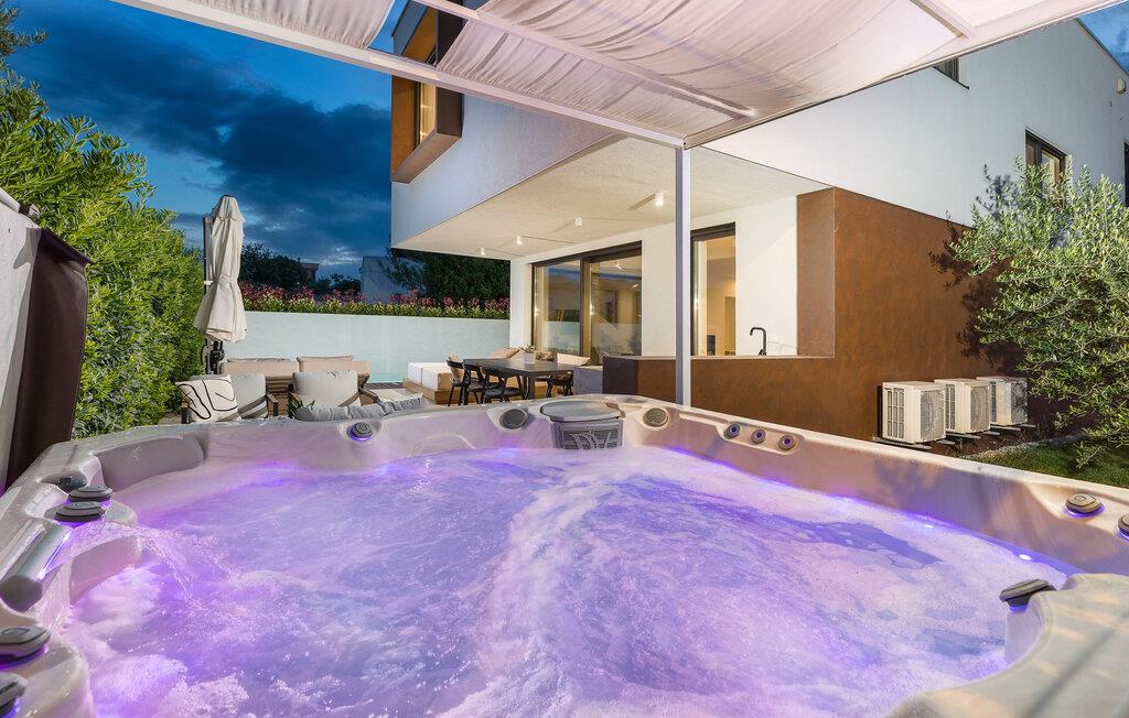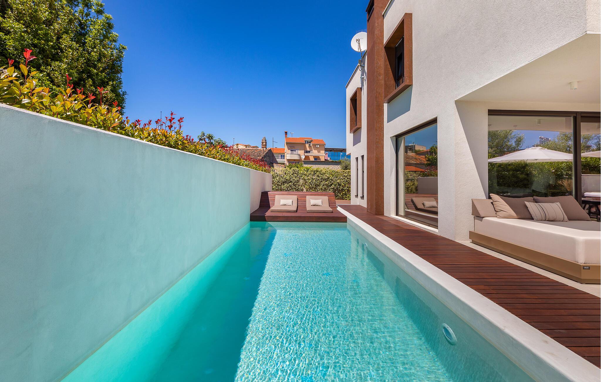 Dette feriehus er perfekt til en ferie med venner eller familie og har et moderne design med omhyggeligt udvalgte detaljer overalt. I vil især elske udendørs området. På første sal finder I en stor solterrasse, hvor I kan slappe af på liggestolene. Terrassen har et hvileområde samt en spiseplads. Her kan I spise morgenmad sammen og afslutte dagen med et glas vin. Der er naturligvis også en grill til hyggelige grillaftener til rådighed. Poolen har et elektrolysesystem og kan også give massage. Der er også en trampolin til de små.
