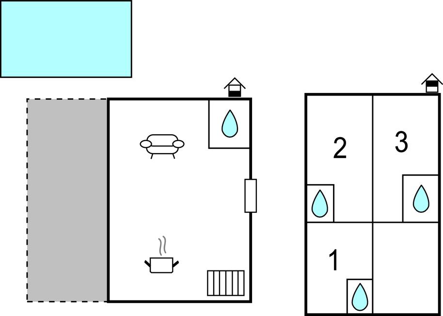 Badeværelse 6m2 (nr. 1) - WC. Varmt og koldt vand. Bruser