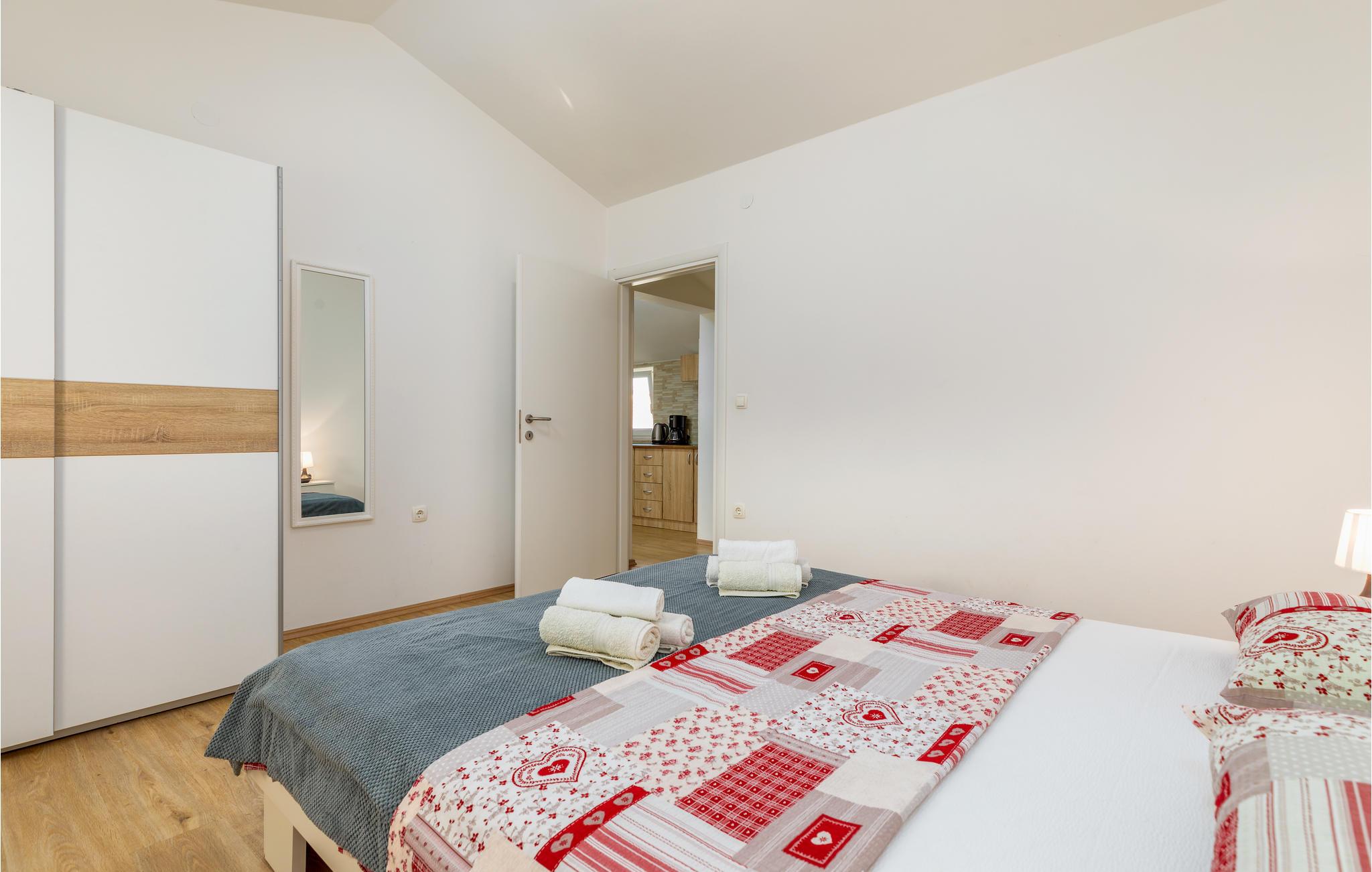 Denne lejlighed ligger i Pula og tilbyder rummelige, lyse og pænt møblerede værelser, som også er meget veludstyrede. I stuen med åbent køkken kan du lave god mad og efterfølgende nyde den spisebordet.