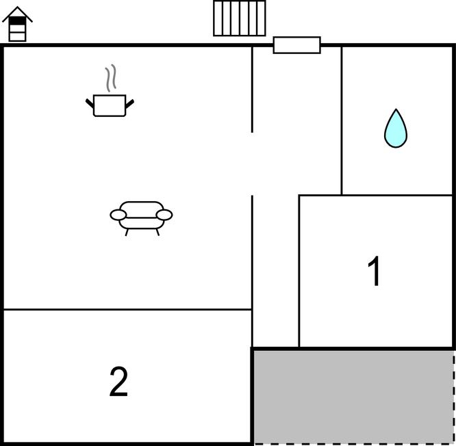 Opholdsstue/køkken 19m2 - 1 Soveplads. (Sofa, madras eller lignende).