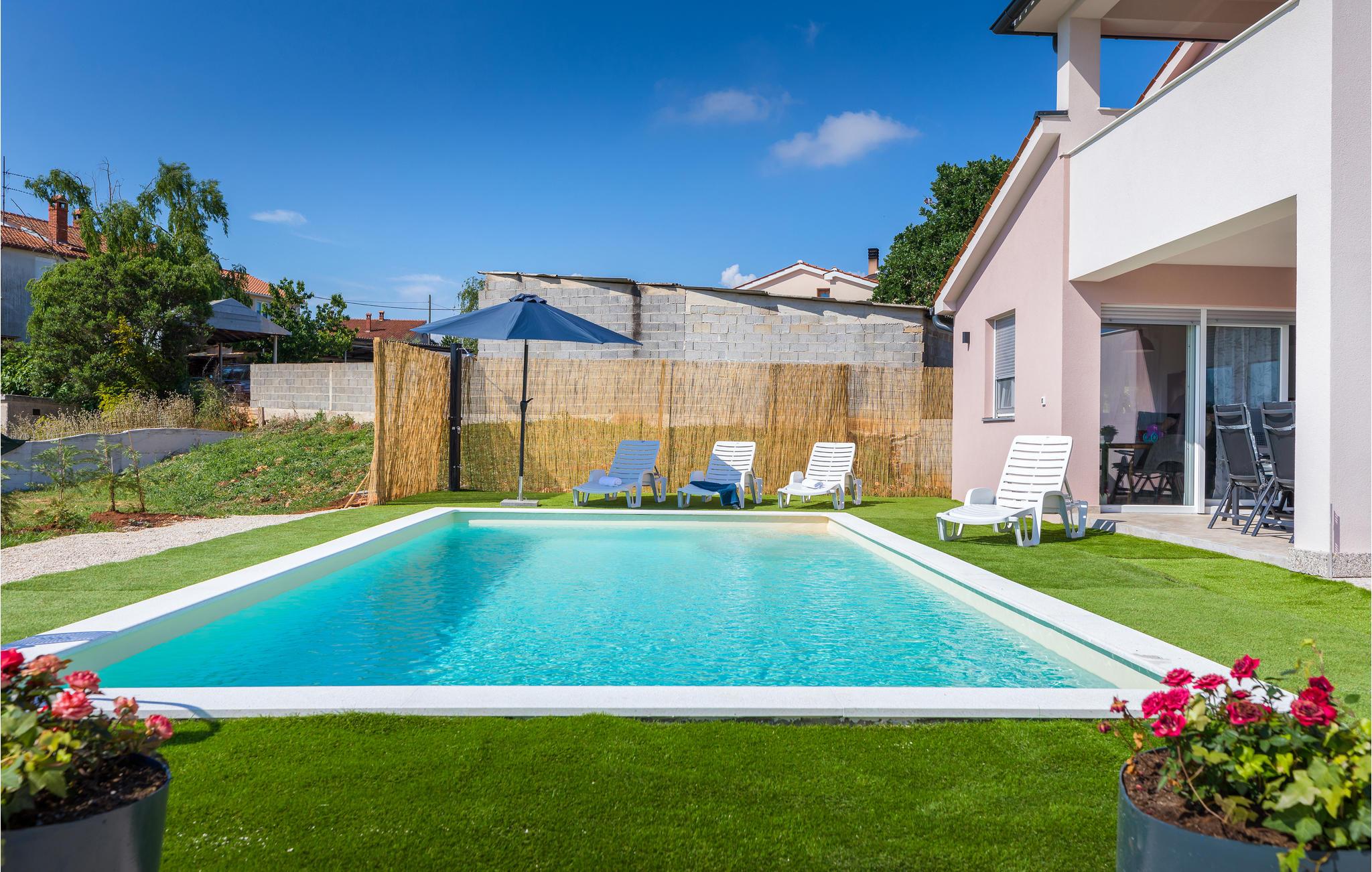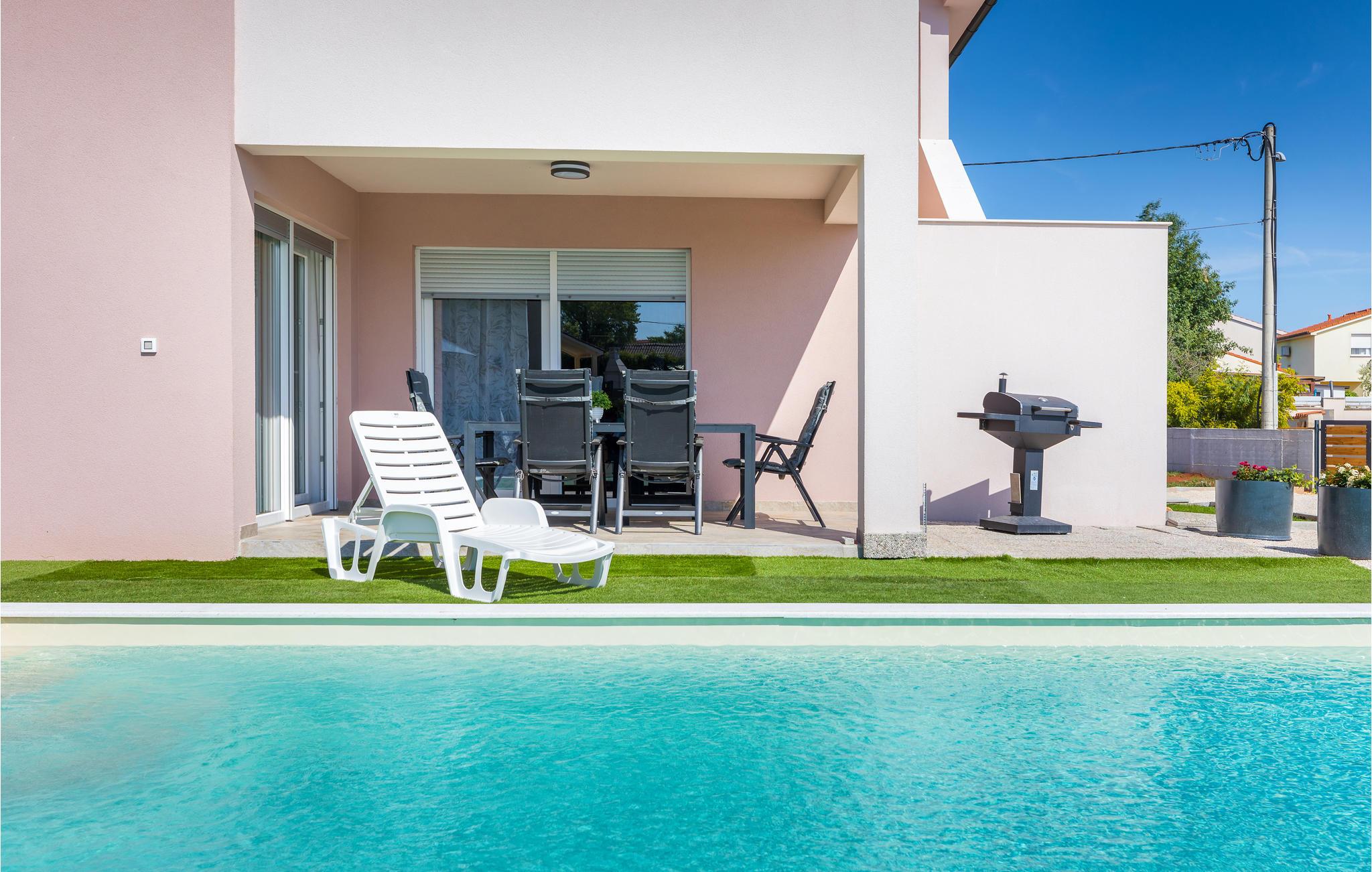 Smagfuldt indrettet poolhus til en skøn sol- og badeferie.