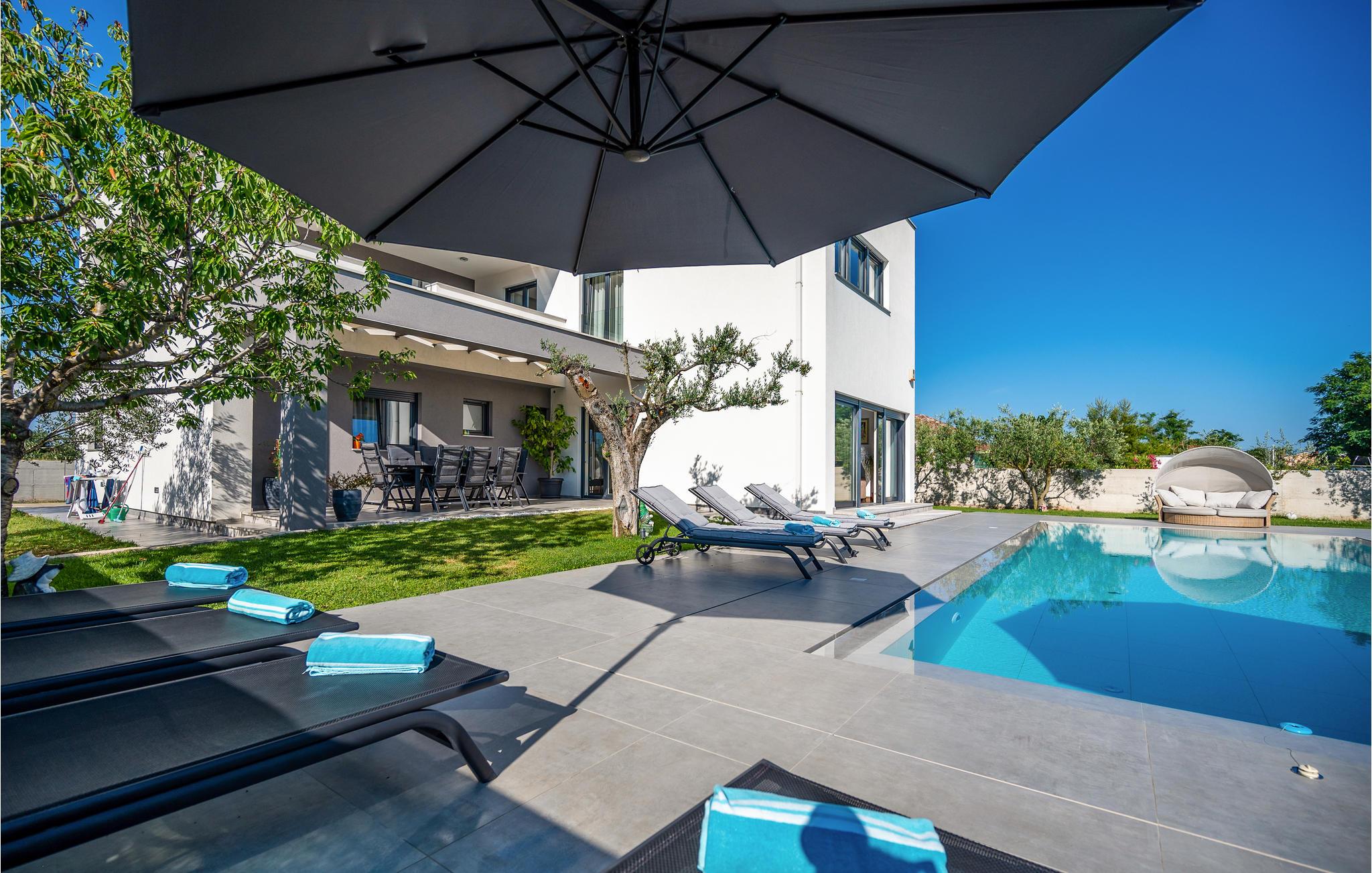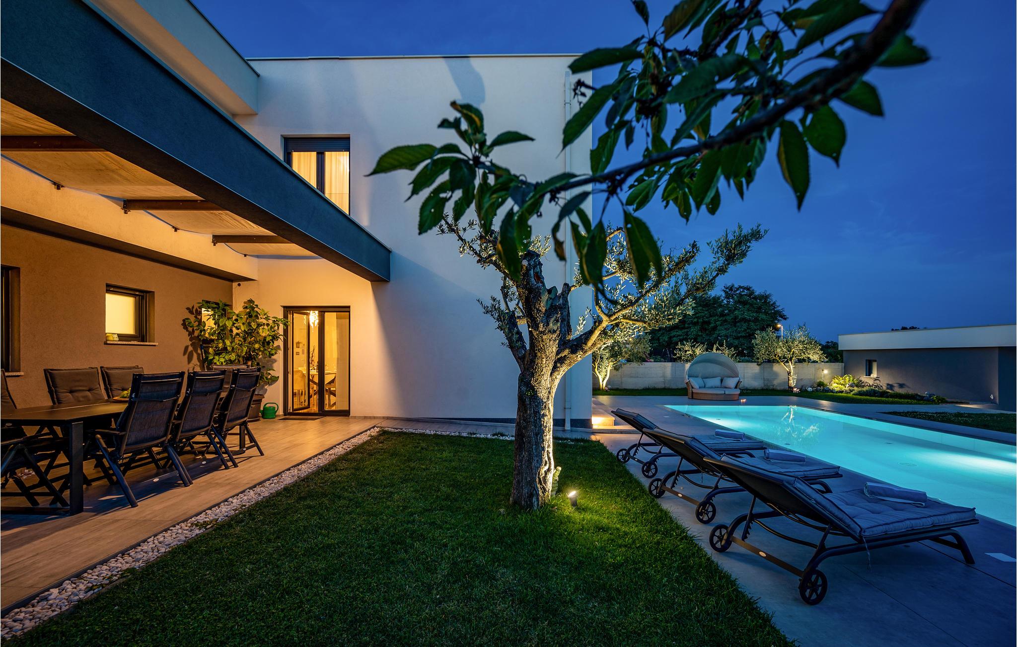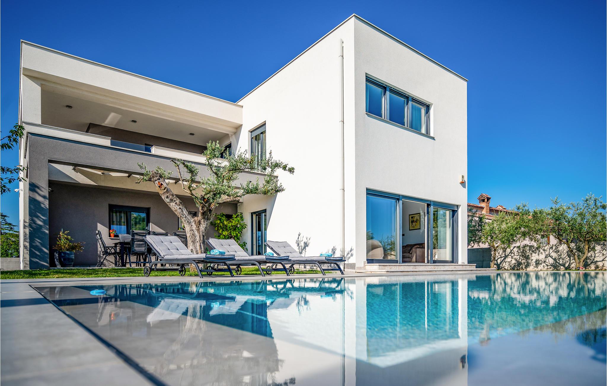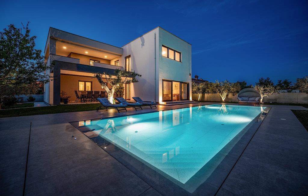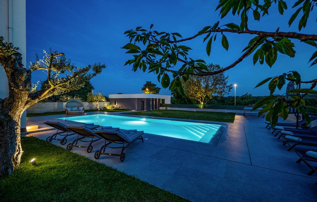 Dette skønne feriehus ligger i udkanten af ??Pula. Husets rene linjer og store rum sørger for høj komfort. Antallet af soveværelser og badeværelser gør, at alle har mulighed for at få alenetid, mens I om dagen kan slappe af, se en film eller lave mad sammen i den elegante stue.
