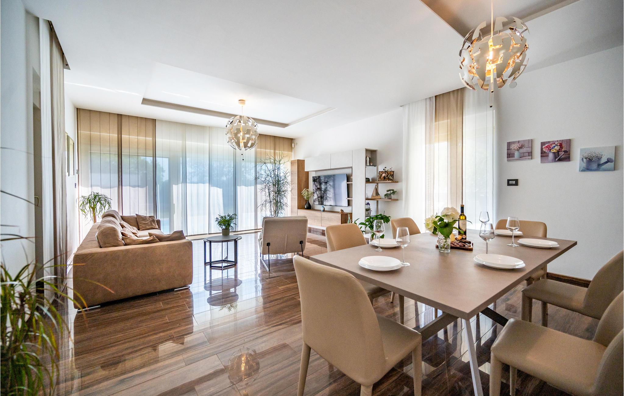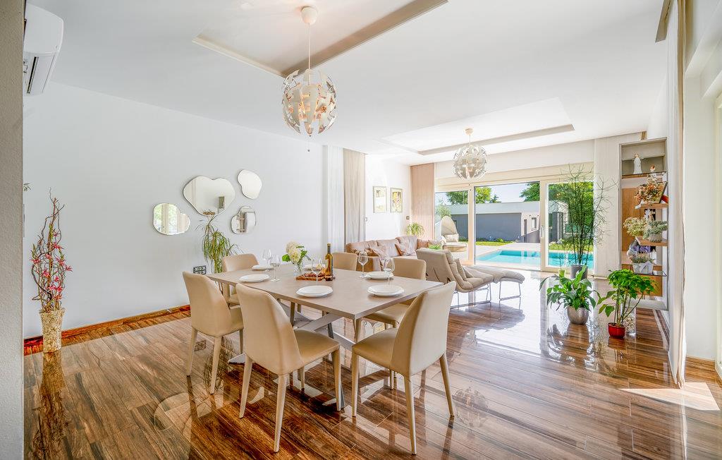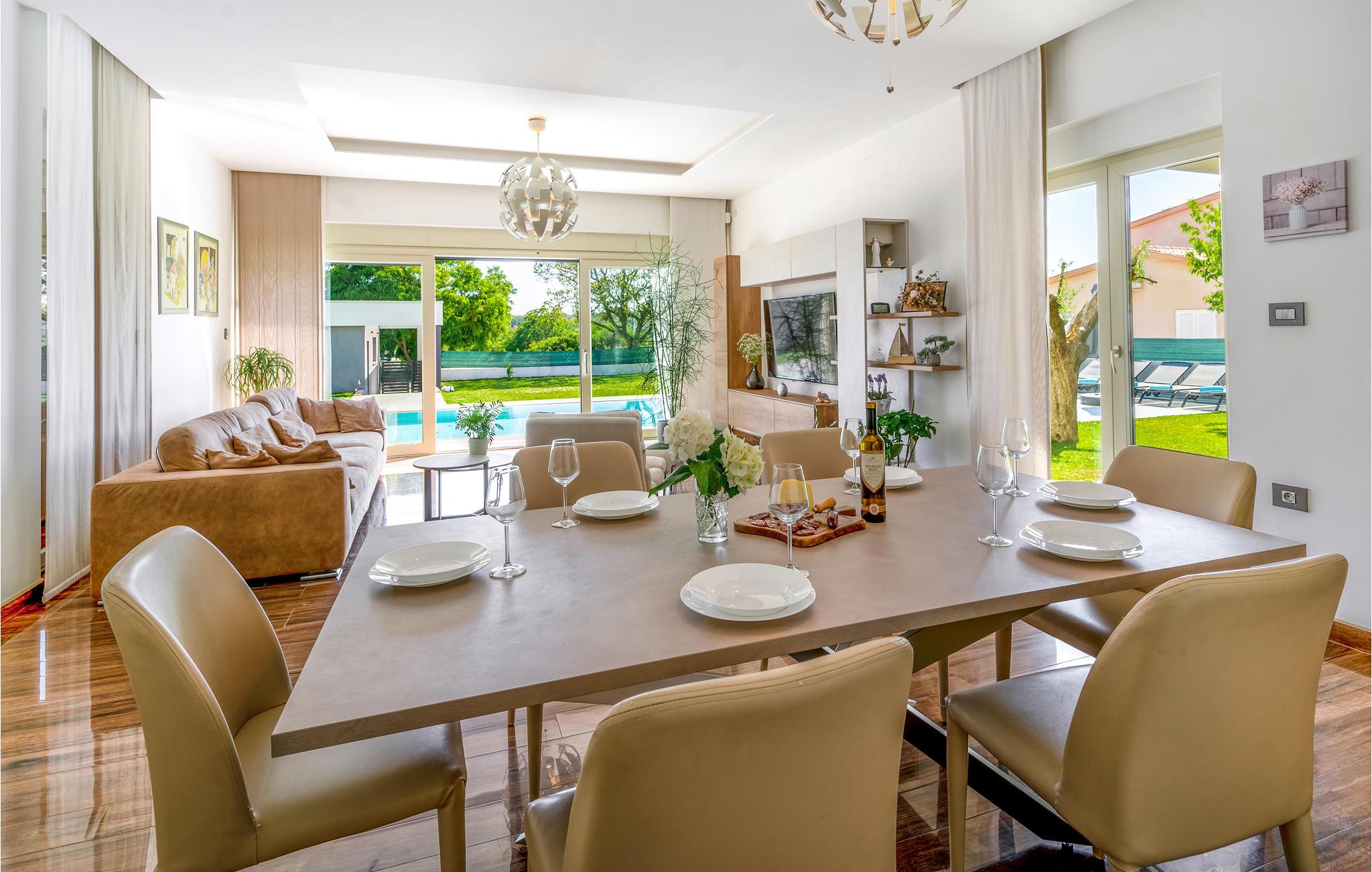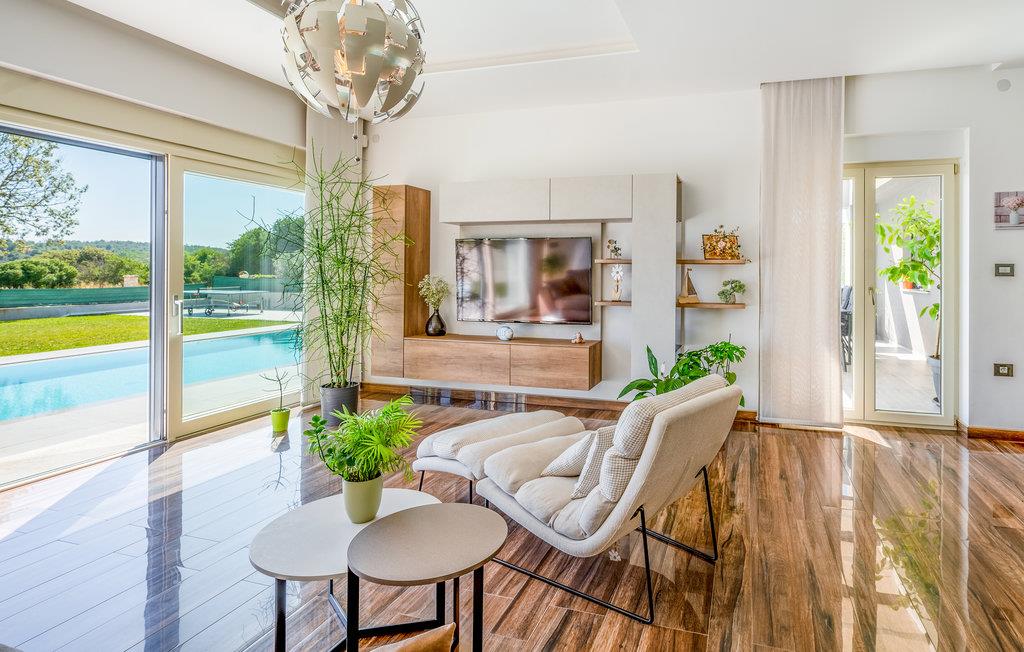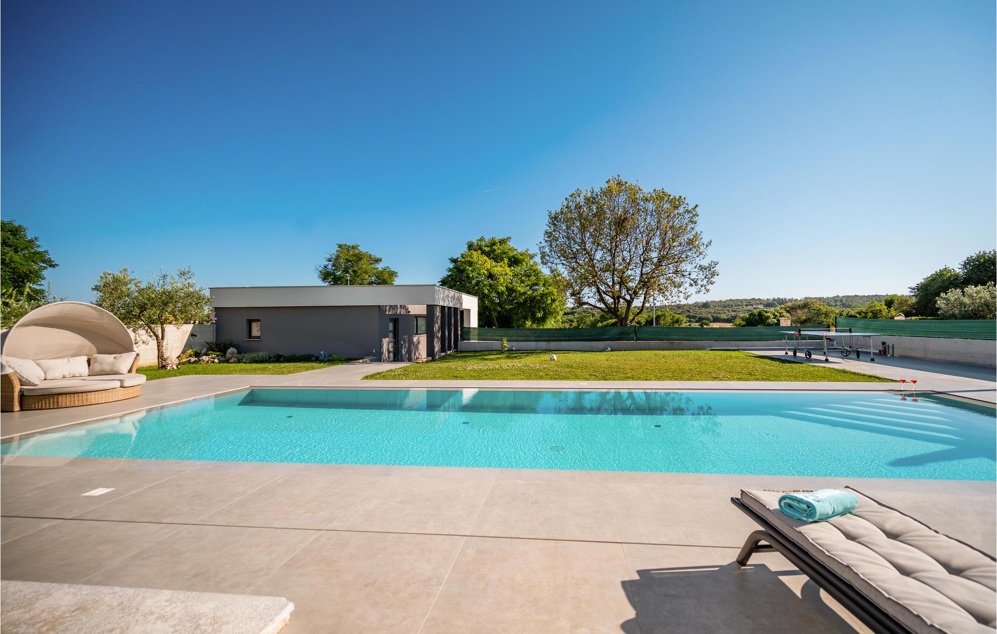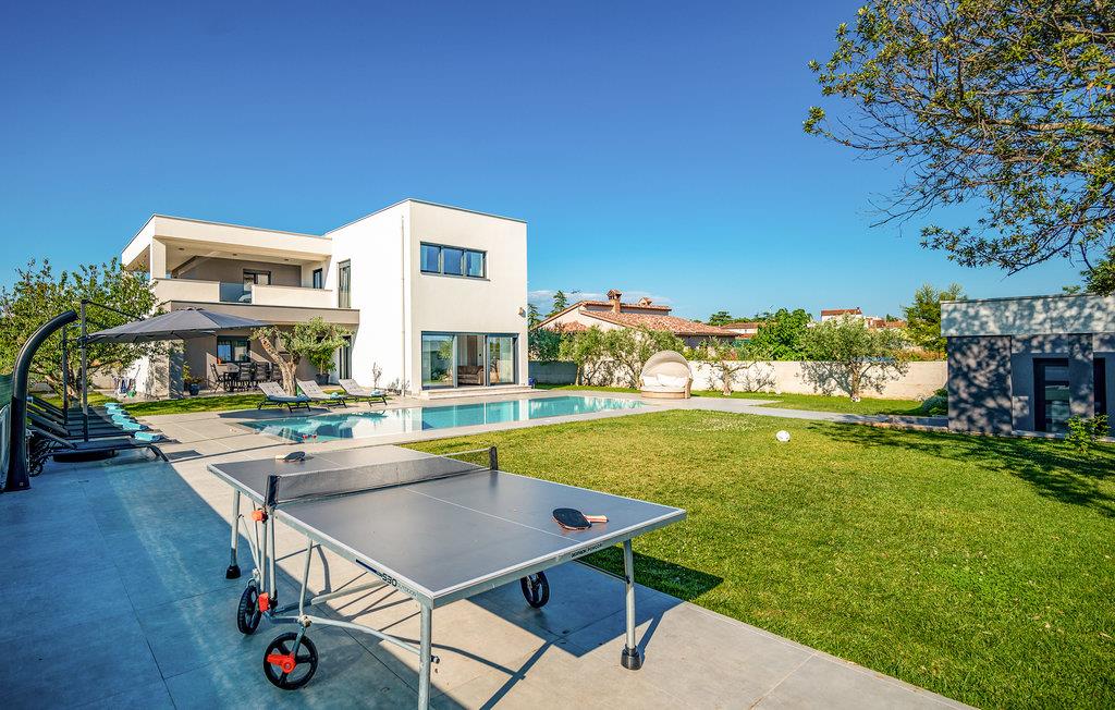 Dette skønne feriehus ligger i udkanten af ??Pula. Husets rene linjer og store rum sørger for høj komfort. Antallet af soveværelser og badeværelser gør, at alle har mulighed for at få alenetid, mens I om dagen kan slappe af, se en film eller lave mad sammen i den elegante stue.