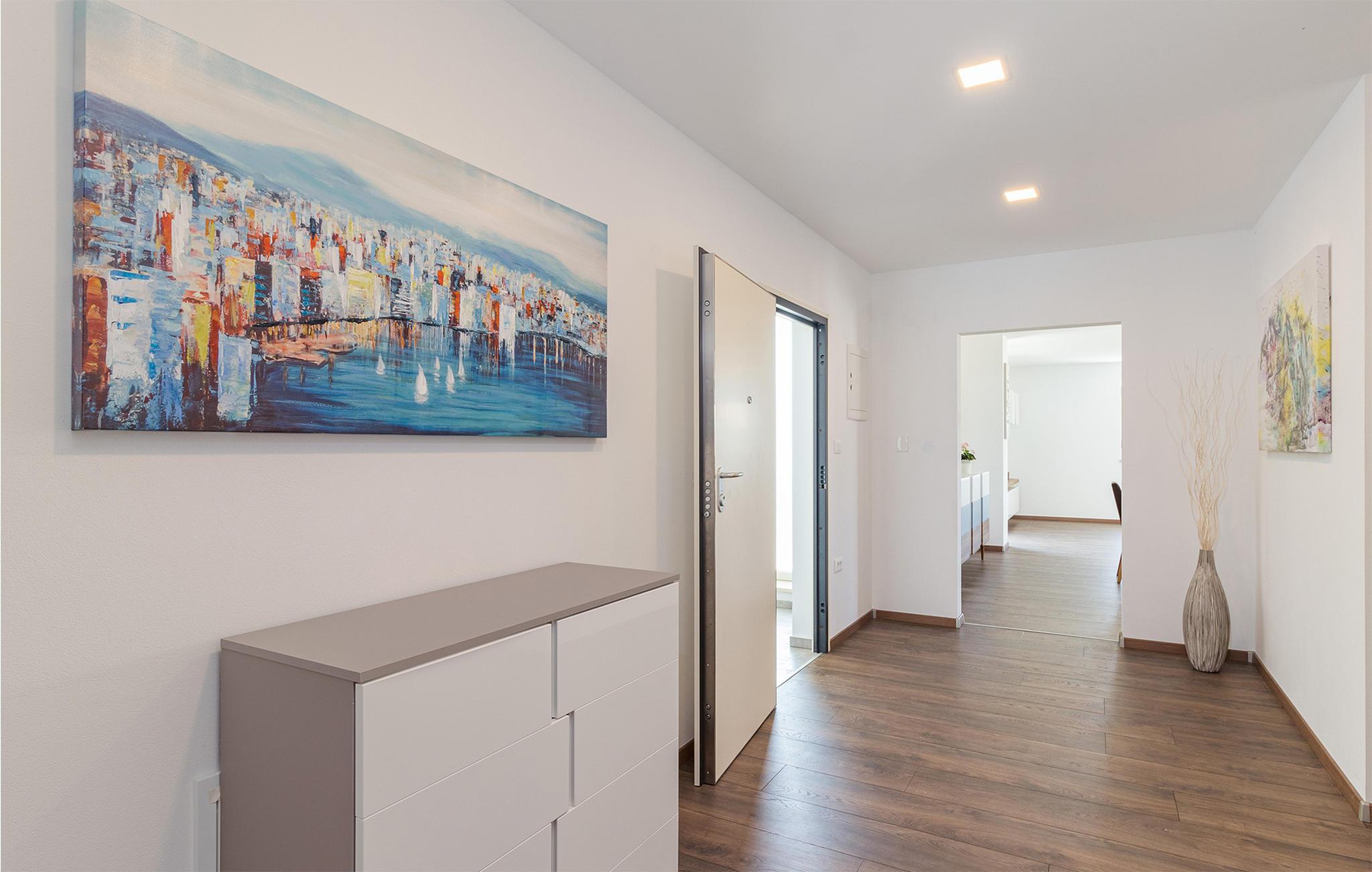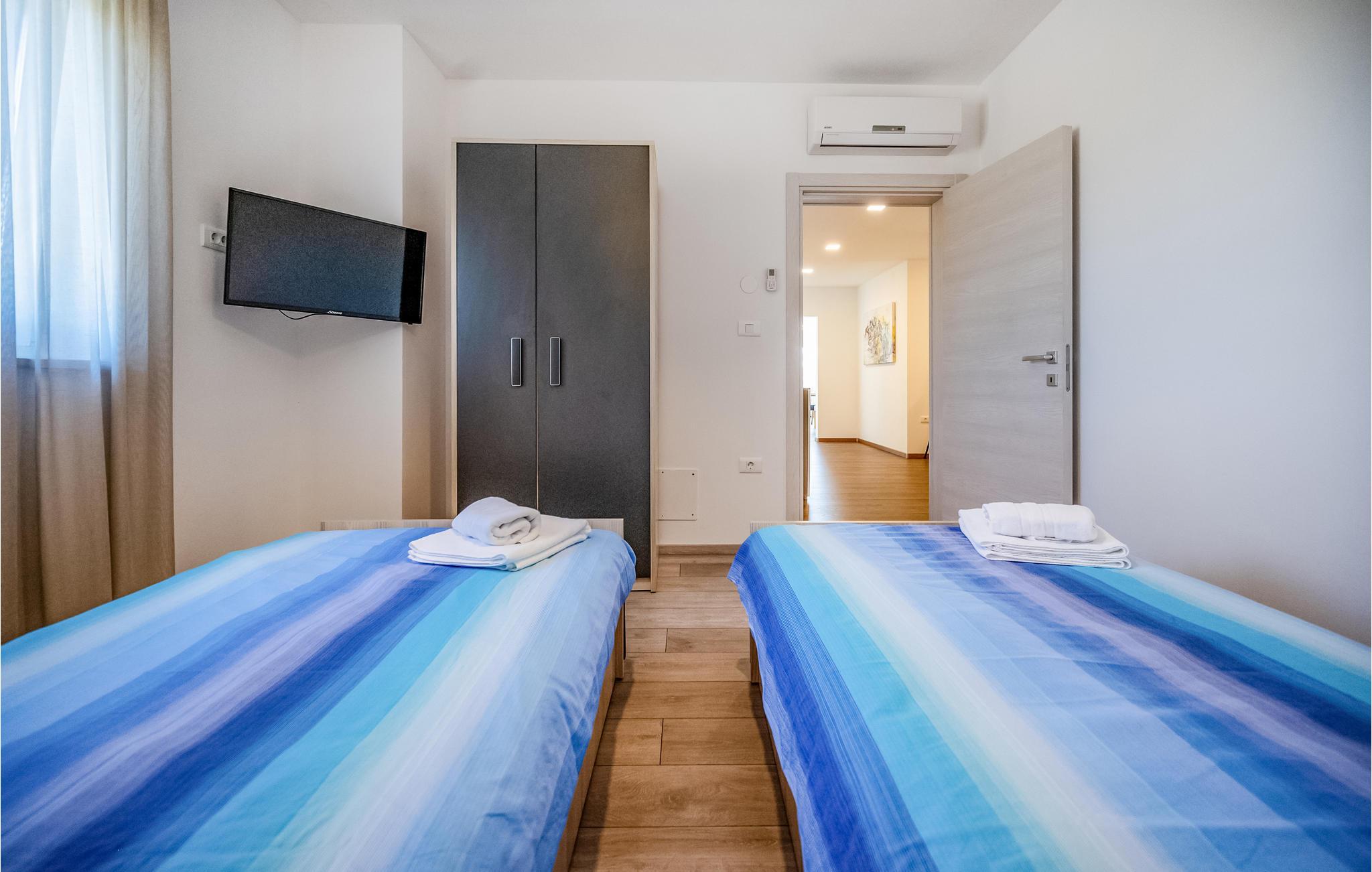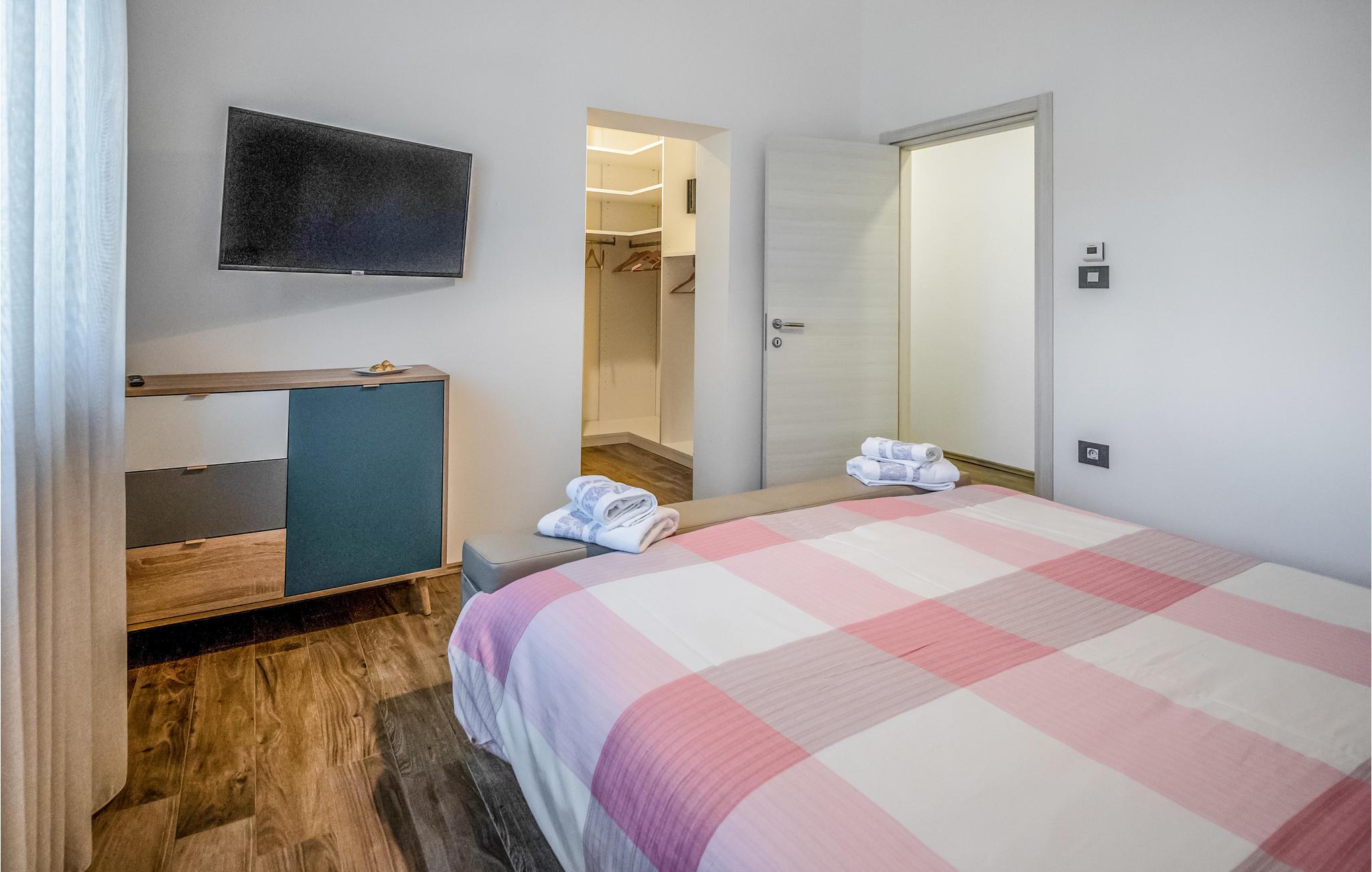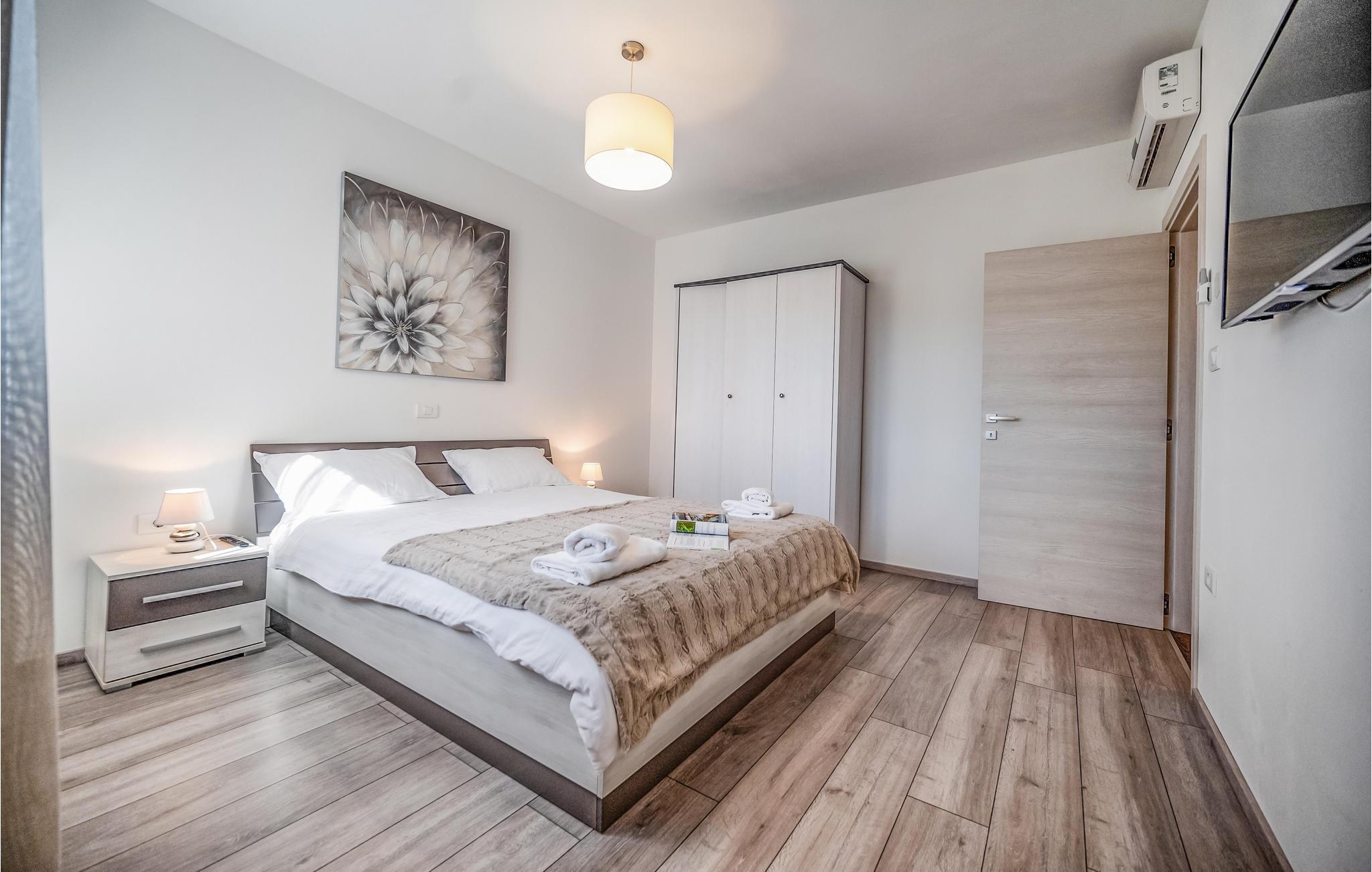 Dette skønne feriehus ligger i udkanten af ??Pula. Husets rene linjer og store rum sørger for høj komfort. Antallet af soveværelser og badeværelser gør, at alle har mulighed for at få alenetid, mens I om dagen kan slappe af, se en film eller lave mad sammen i den elegante stue.