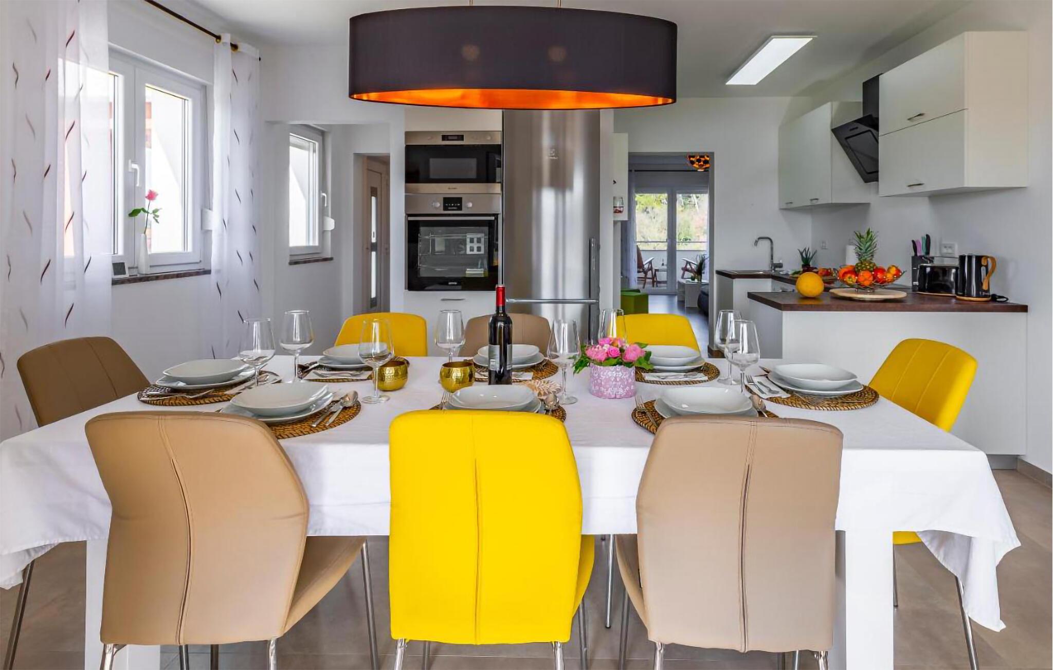 Velkommen til denne vidunderlige villa, der ligger tæt på havet, og hvor I får masser af plads og faciliteter til en magisk ferie med familien. Udover de mange kvadratmeter kan I se frem til en indretning, der fremtræder lyst og indbydende med god komfort, så I kan hygge jer med tingene og sænke skuldrene efter en aktiv feriedag. Lad aftenen gå på hæld i de behagelige sofaer med snacks og en god film, mens I lægger planer for de kommende dage.
