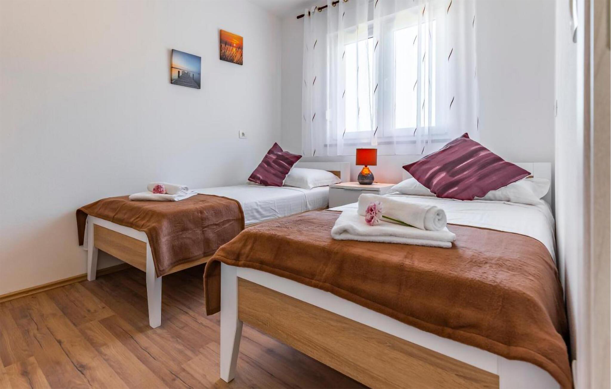 I bor kun en kort køretur fra havet, hvor I kan snuppe nogle friske dyp og gå en dejlig tur langs vandet. Med sine vidunderlige strande, afsondrede bugter og historiske bygninger er Pula det ideelle sted for en varieret ferie. Gå en tur gennem den gamle bydel, bliv betaget af det romerske amfiteater og lad jer transportere tilbage til romertiden i forummet omgivet af de gamle huse. Hvis I er på udkig efter store naturoplevelser, anbefales dagsture til øerne i Brijuni National Park og ved Kap Kamenjak.