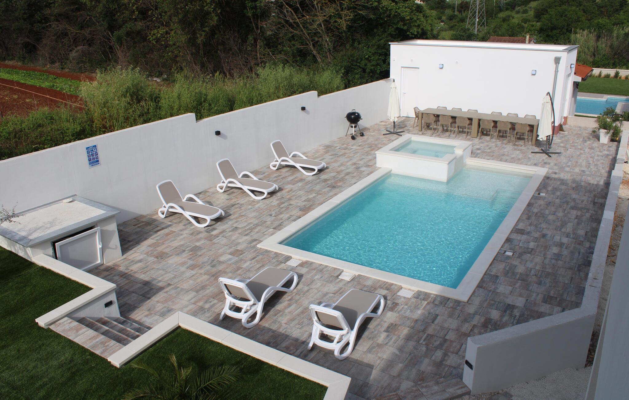 Gør jer klar til et fantastisk ophold i dette rummelige luksushus med pool og jacuzzi.