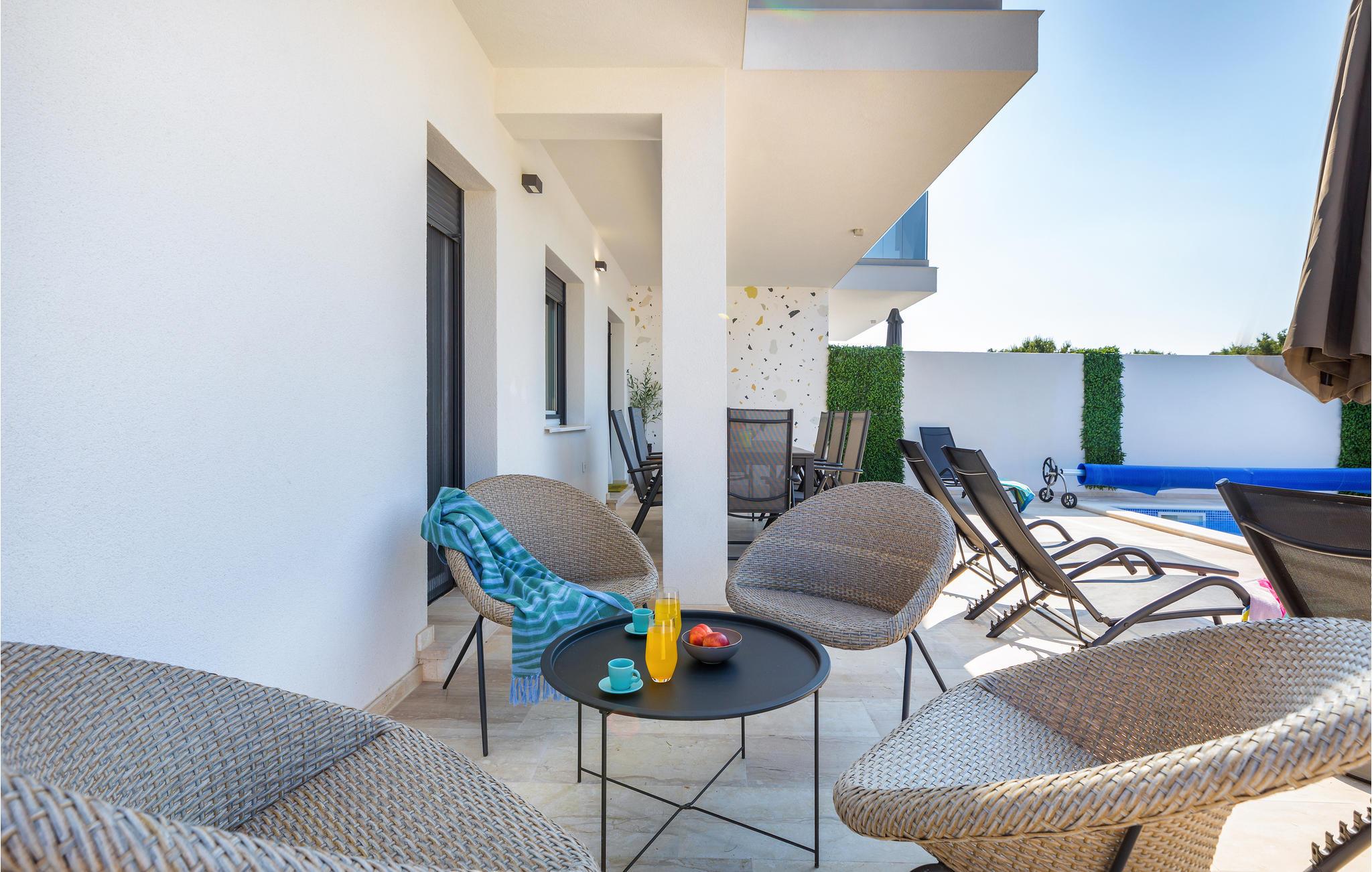Nyd årets smukkeste uger i dette smagfulde og moderne feriehus med swimmingpool. Glæd jer til en ubekymret ferie for hele familien. Det smukke hjem er ideelt til afslapning og fokus på familien. På to etager kan I føle jer hjemme og nyde komforten og designet. Møblerne og den kærlige udsmykning skaber en hjemlig oase af velvære, som forstærkes af de lyse farver. Uanset om I vil spille bordfodbold, se en film sammen eller afslutte aftenen på terrassen med god mad og spil, tilbyder denne bolig jer de perfekte områder. Højdepunktet er jeres private pool, som I til enhver tid kan bruge til jeres forfriskning. Medbring jeres cykler, og efter en kort tur kan I nå den smukke by Pula. Gå en tur gennem den gamle bydel, opdag de gamle bygninger såsom amfiteatret eller Augusttemplet og nyd en forfriskende drink i en af caféerne. Den smukke kystby Fazana er heller ikke langt. Glæd jer til smukke strande, bugter og krystalklart vand. Slap af i og omkring Pula!