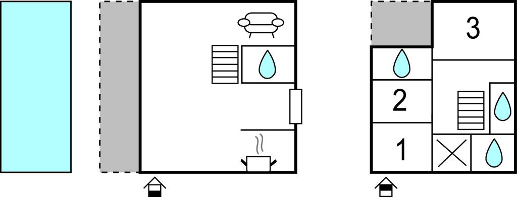Badeværelse 3m2 (nr. 4) - WC. Varmt og koldt vand. Bruser