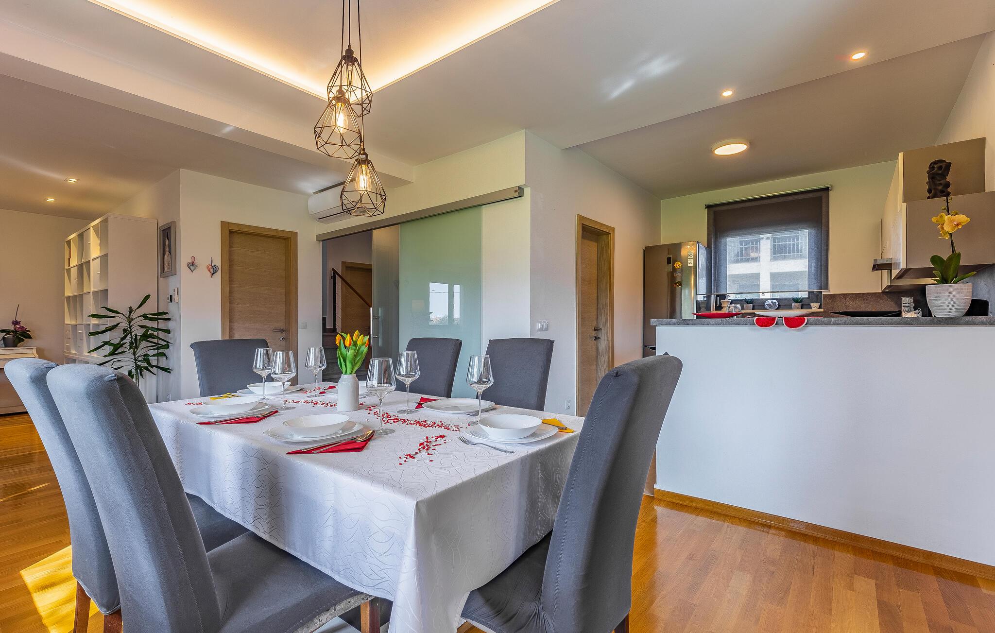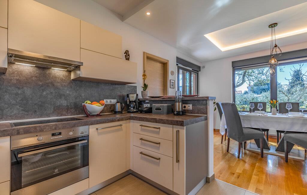 Velkommen til dette indbydende og familievenlige hus, der ligger tæt på Istriens sydøstlige kyst og danner rammen om en herlig ferie med dem, I holder af. Huset er flot indrettet i behagelige farveskalaer og byder på god komfort og alle de faciliteter, I behøver for bare at lade skuldrene falde og slappe af med det samme, I ankommer. Husets hjerte er den åbne stue, hvor I kan kræse om livretterne i køkkenet, nyde måltiderne ved spisebordet og spille op til fællessang ved klaveret.