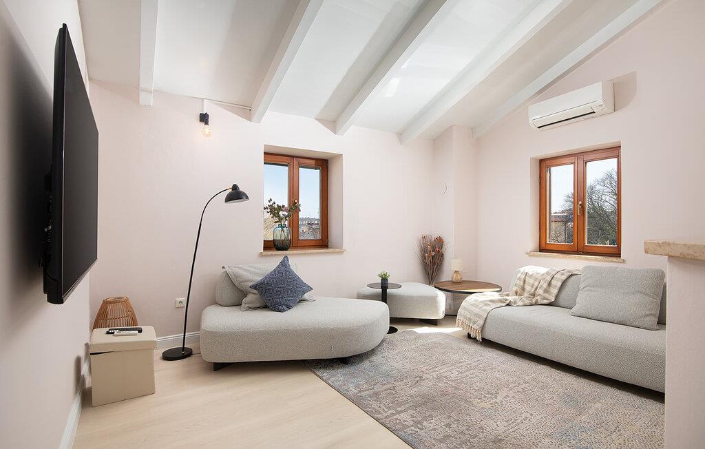 Jeres stenhus i hovedstaden på Istrien er det ideelle sted til en afslappende ferie. Start dagen med morgenmad på den hyggelige terrasse, omgivet af frodig natur og farverige blomster. Udsigten over det maleriske landskab og den historiske by i baggrunden skaber en fredfyldt feriestemning. Indenfor venter en smagfuldt indrettet stue med komfortable siddepladser, perfekt til afslappede aftener efter en eventyrlig dag. Brug det veludstyrede køkken med spisebord til at tilberede lækre måltider.