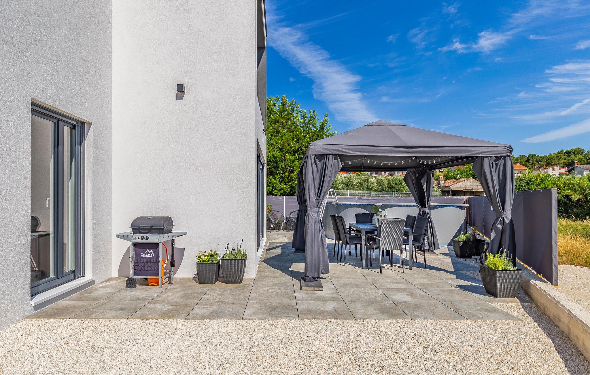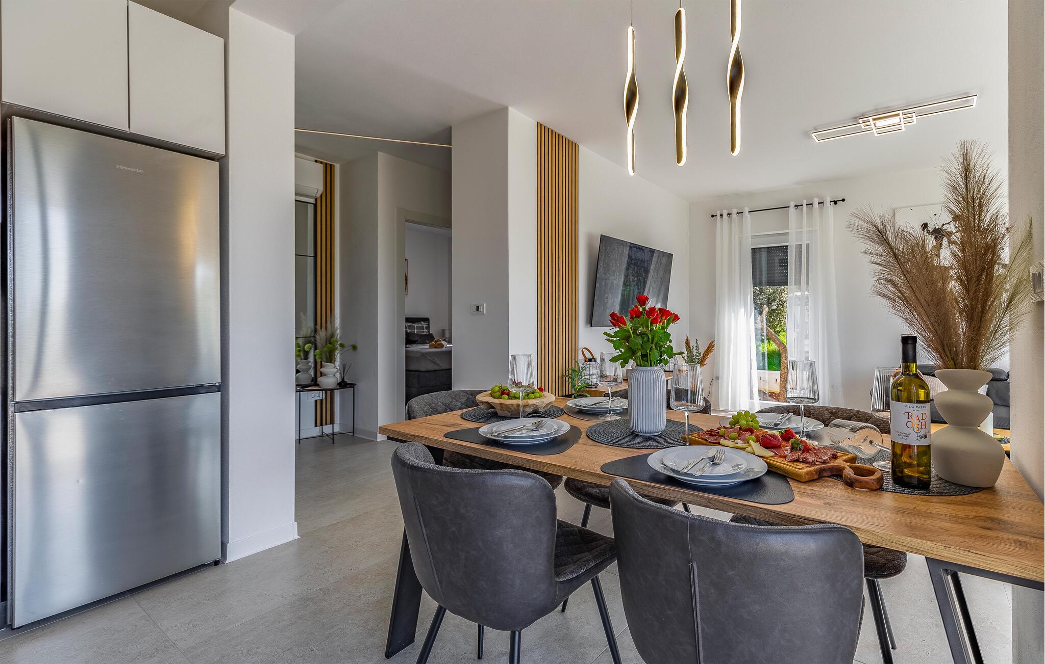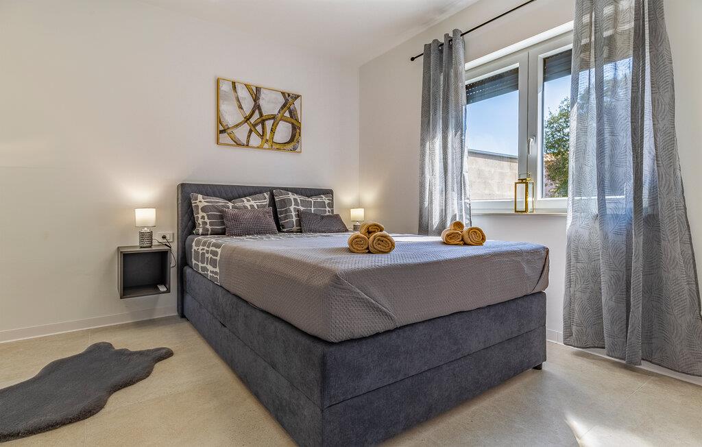 En kort gåtur fører jer forbi hvide stenhuse til stranden, hvor I kan tilbringe afslappende timer ved havet. Oplev smukke kyststier, afsidesliggende bugter og naturreservater som Kap Kamenjak. Hvis I er interesseret i kultur og historie, finder I imponerende spor af antikken i Pula, især det velbevarede romerske amfiteater.