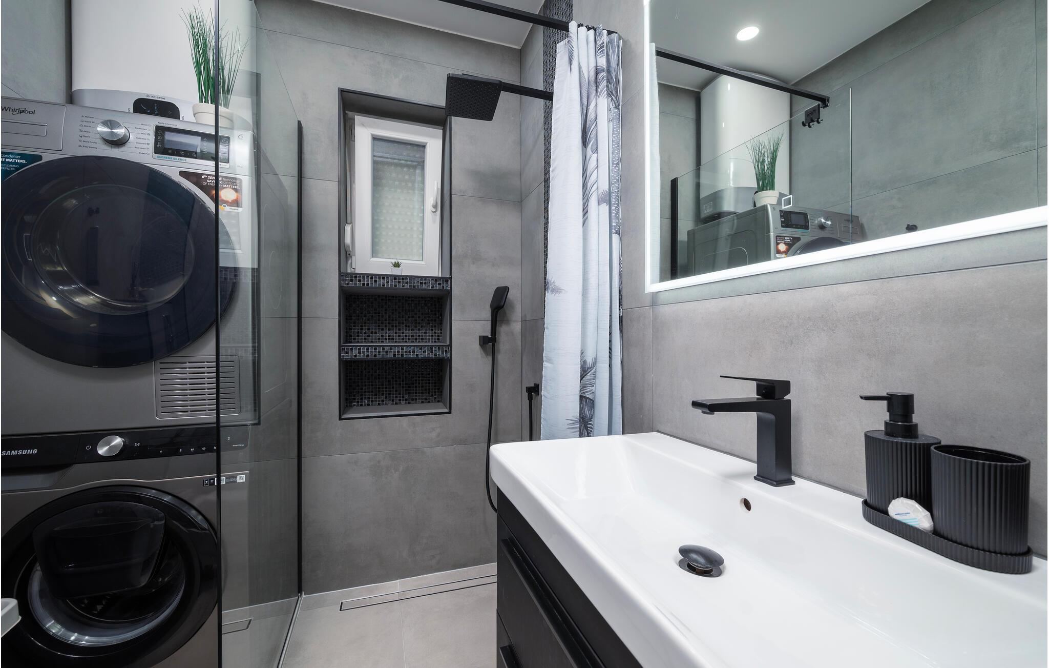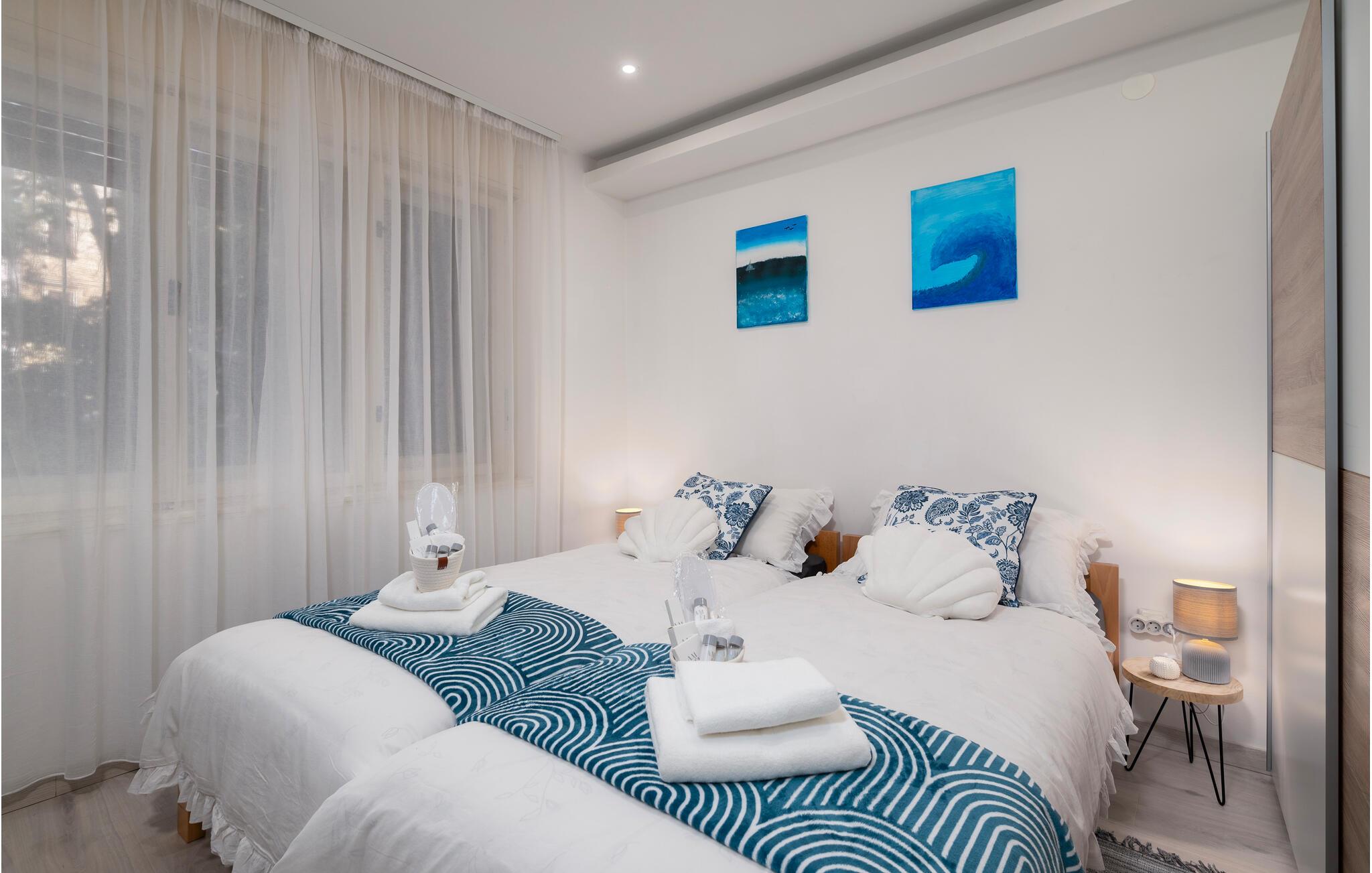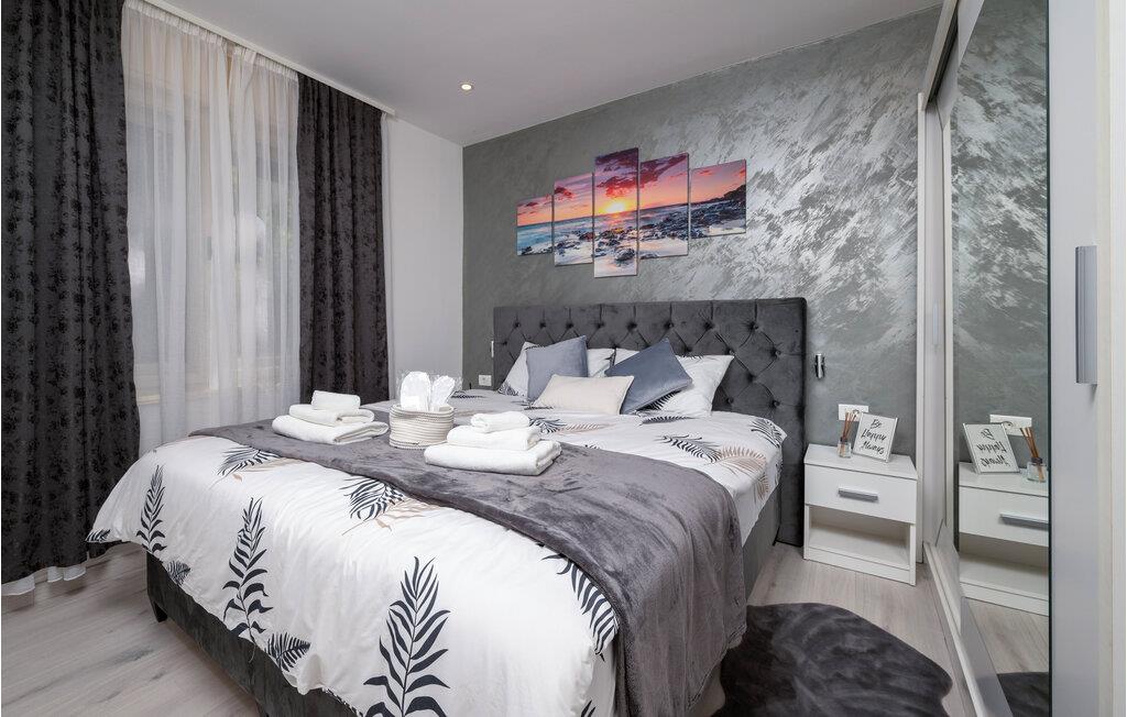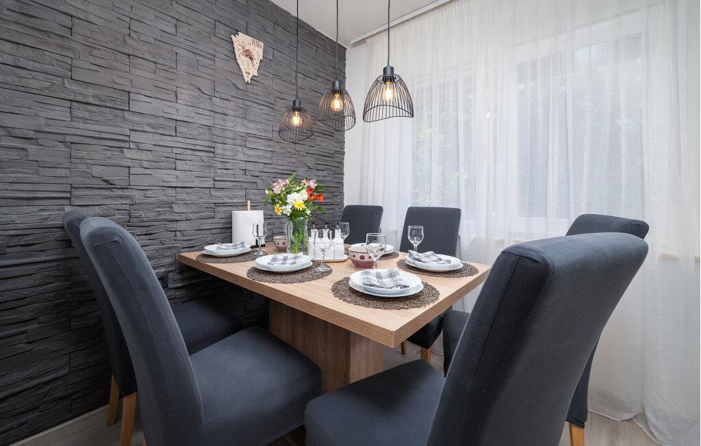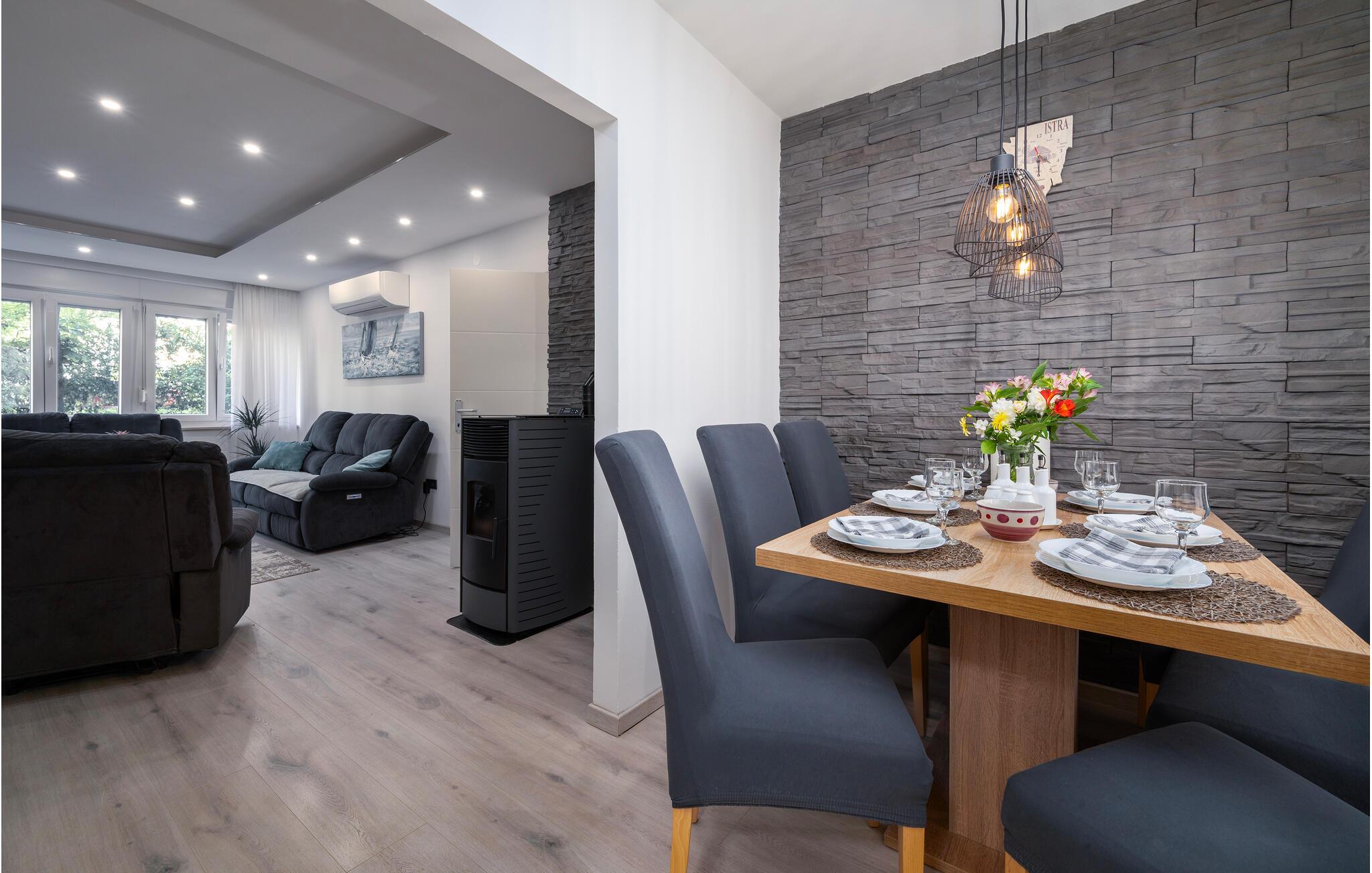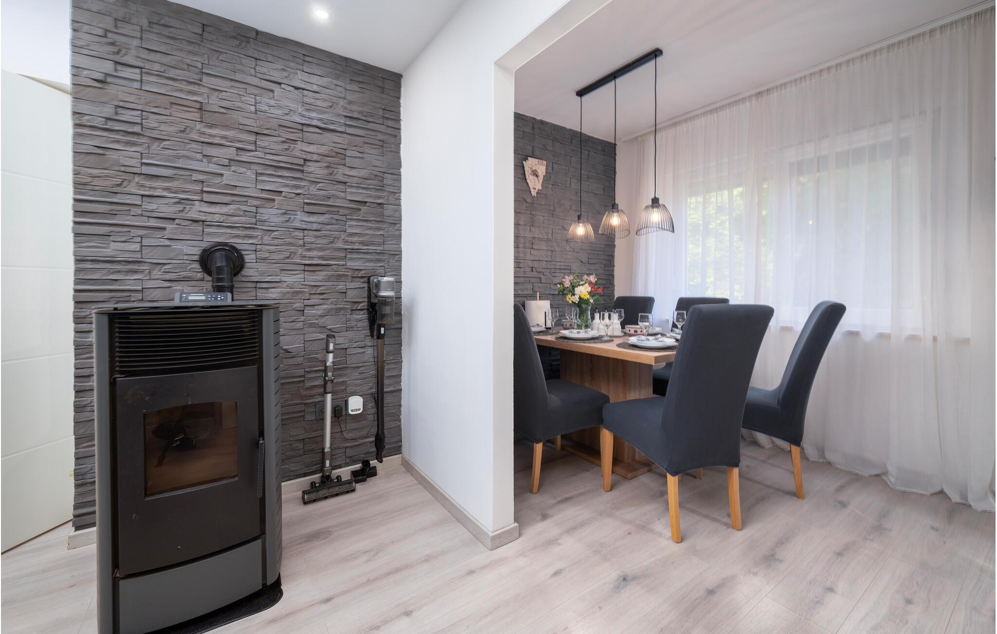 Nyd jeres pause fra hverdagen i denne moderne lejlighed, der er indrettet i tidløst design med naturstenslook, brændeovn og maritime farver. Læn jer tilbage på det komfortable sofasæt, nyd en god kop kaffe og saml jer til en fælles filmaften. Lav lækre retter i det moderne køkken med friske råvarer og forkæl jeres rejsefæller med et godt glas vin.