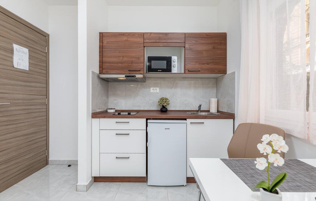 Dette charmerende etværelseslejlighed tilbyder jer et komfortabelt hjem væk fra hjemmet i hjertet af Pula, mens I opdager nye seværdigheder i denne pulserende kystby hver dag. Planlæg jeres aktiviteter for den kommende dag ved spisebordet, tilbered små måltider i det åbne køkken, og efter en lang dag kan I streame en film eller fordybe jer i en god bog.
