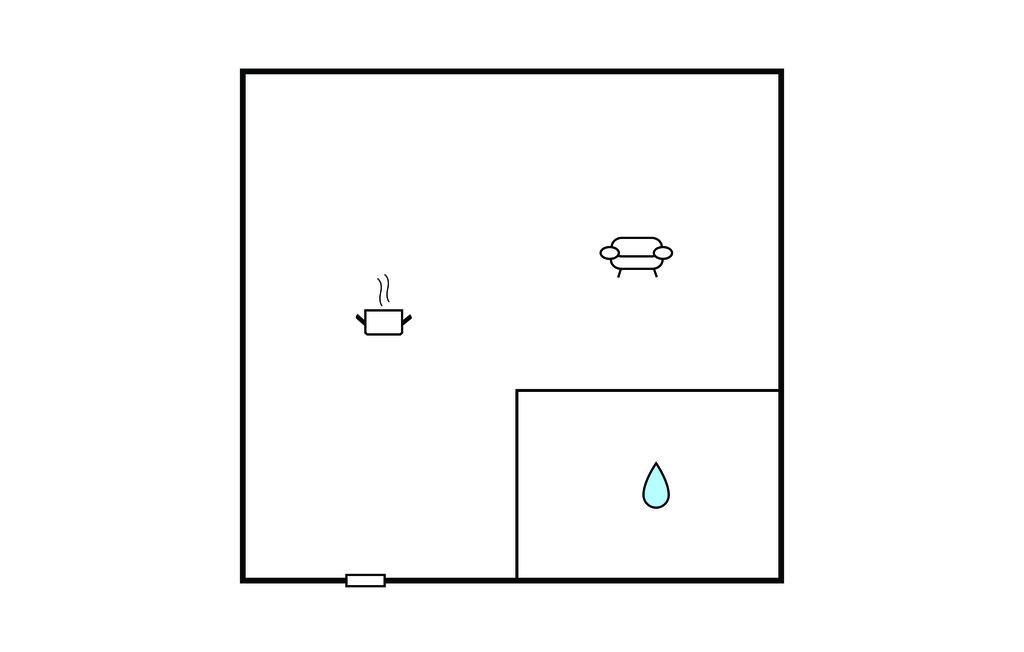 Opholdsstue/køkken 20m2 - 2 Sovepladser. (Dobbeltseng(e)).