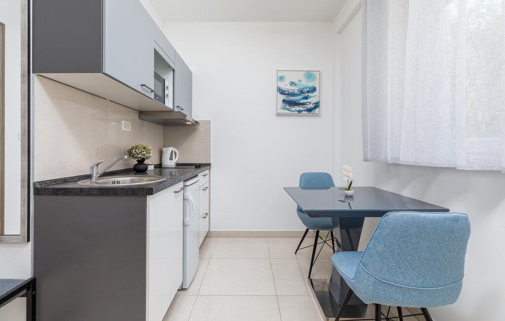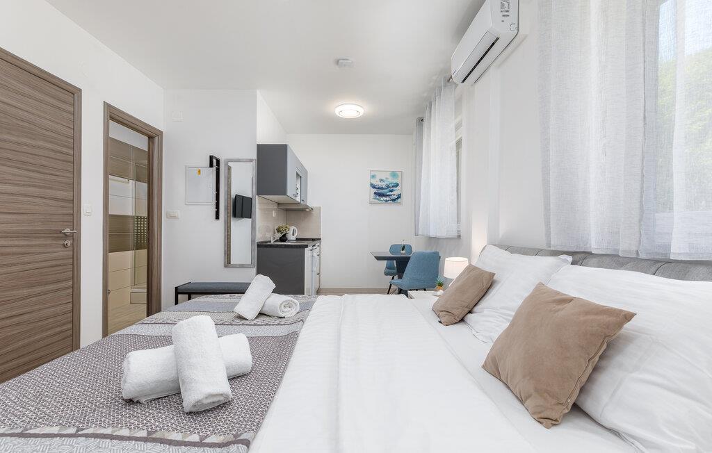 Dette indbydende etværelseslejlighed tilbyder jer et komfortabelt, lille hjem væk fra hjemmet i hjertet af Pula, mens I opdager nye seværdigheder i denne pulserende kystby hver dag. Planlæg jeres aktiviteter for den kommende dag ved spisebordet, tilbered små måltider i det åbne køkken, og efter en lang dag kan I streame en film eller fordybe jer i en god bog.