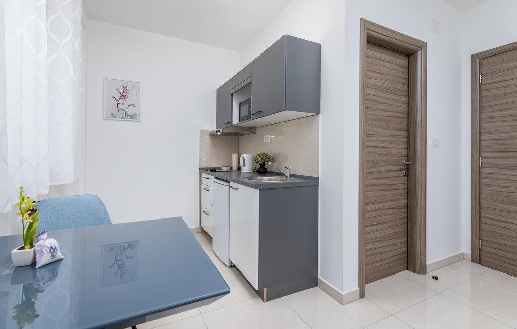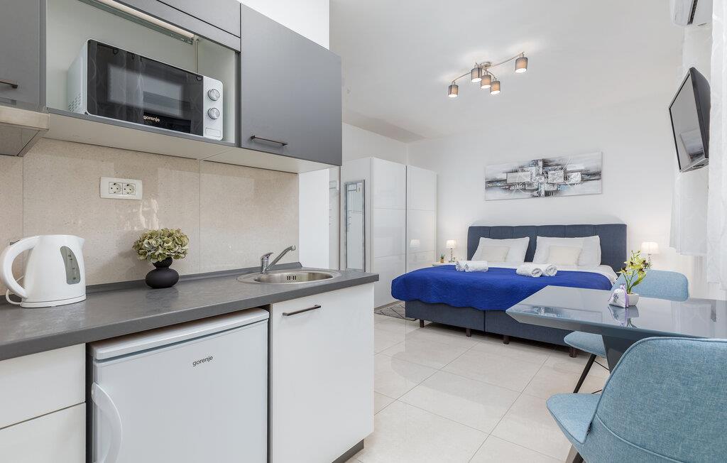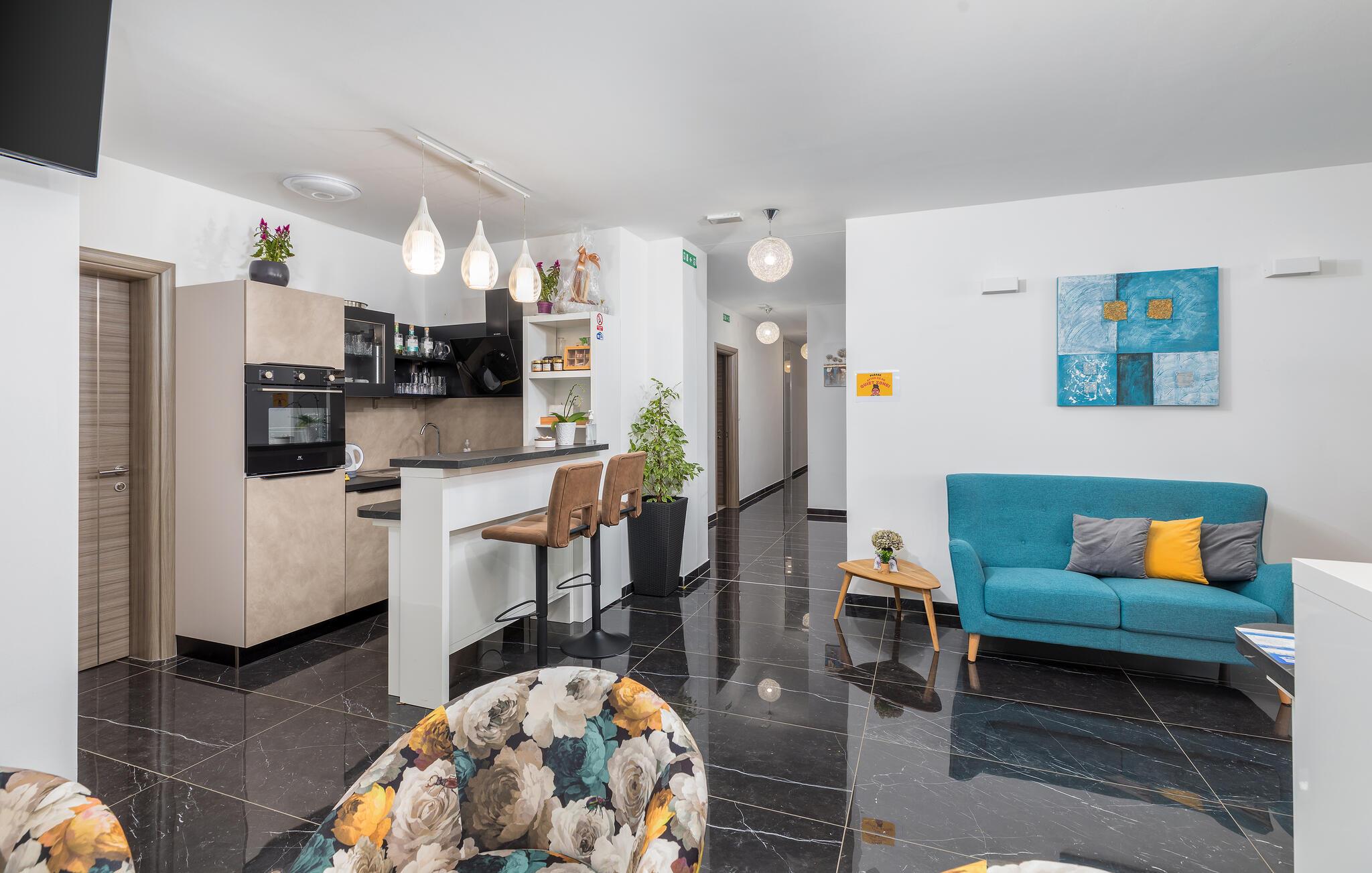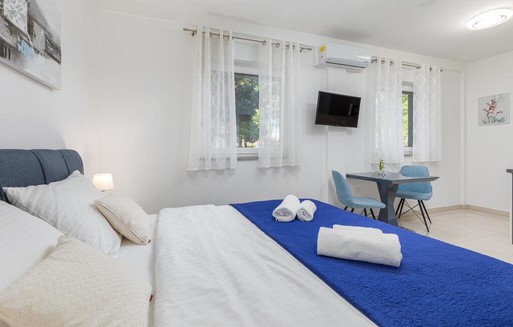Dette komfortable etværelseslejlighed i stueetagen tilbyder jer et hyggeligt hjem væk fra hjemmet i hjertet af Pula, mens I opdager nye seværdigheder i denne pulserende kystby hver dag. Planlæg jeres aktiviteter for den kommende dag ved spisebordet, tilbered små måltider i det åbne køkken, og efter en lang dag kan I streame en film eller fordybe jer i en god bog.