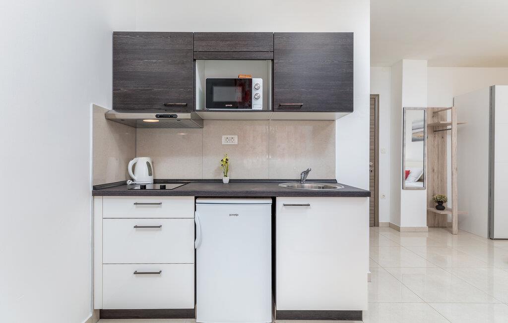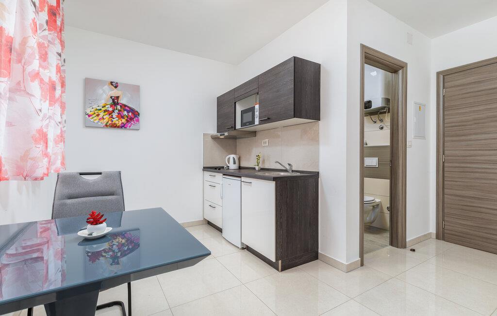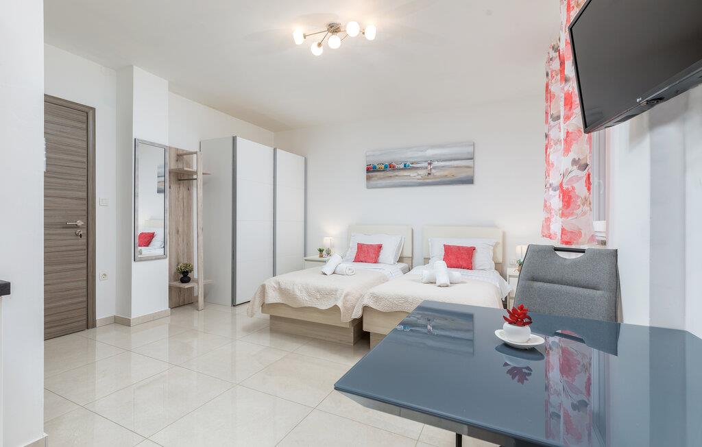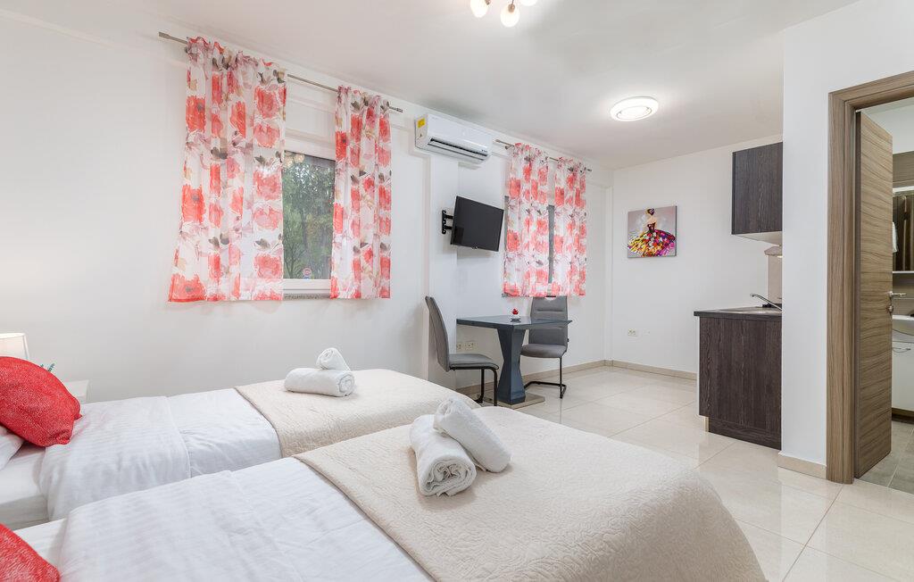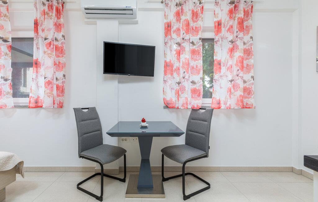 Dette charmerende etværelseslejlighed tilbyder jer et komfortabelt hjem væk fra hjemmet i hjertet af Pula, mens I opdager nye seværdigheder i denne pulserende kystby hver dag. Planlæg jeres aktiviteter for den kommende dag ved spisebordet, tilbered små måltider i det åbne køkken, og efter en lang dag kan I streame en film eller fordybe jer i en god bog.