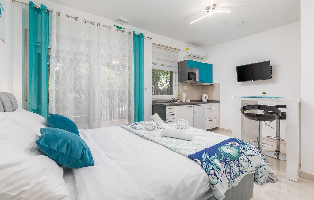 Dette indbydende etværelseslejlighed tilbyder jer et komfortabelt, lille hjem væk fra hjemmet i hjertet af Pula, mens I opdager nye seværdigheder i denne pulserende kystby hver dag. Planlæg jeres aktiviteter for den kommende dag ved spisebordet, tilbered små måltider i det åbne køkken, og efter en lang dag kan I streame en film eller fordybe jer i en god bog.