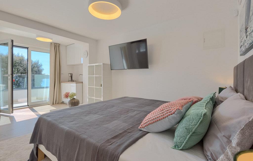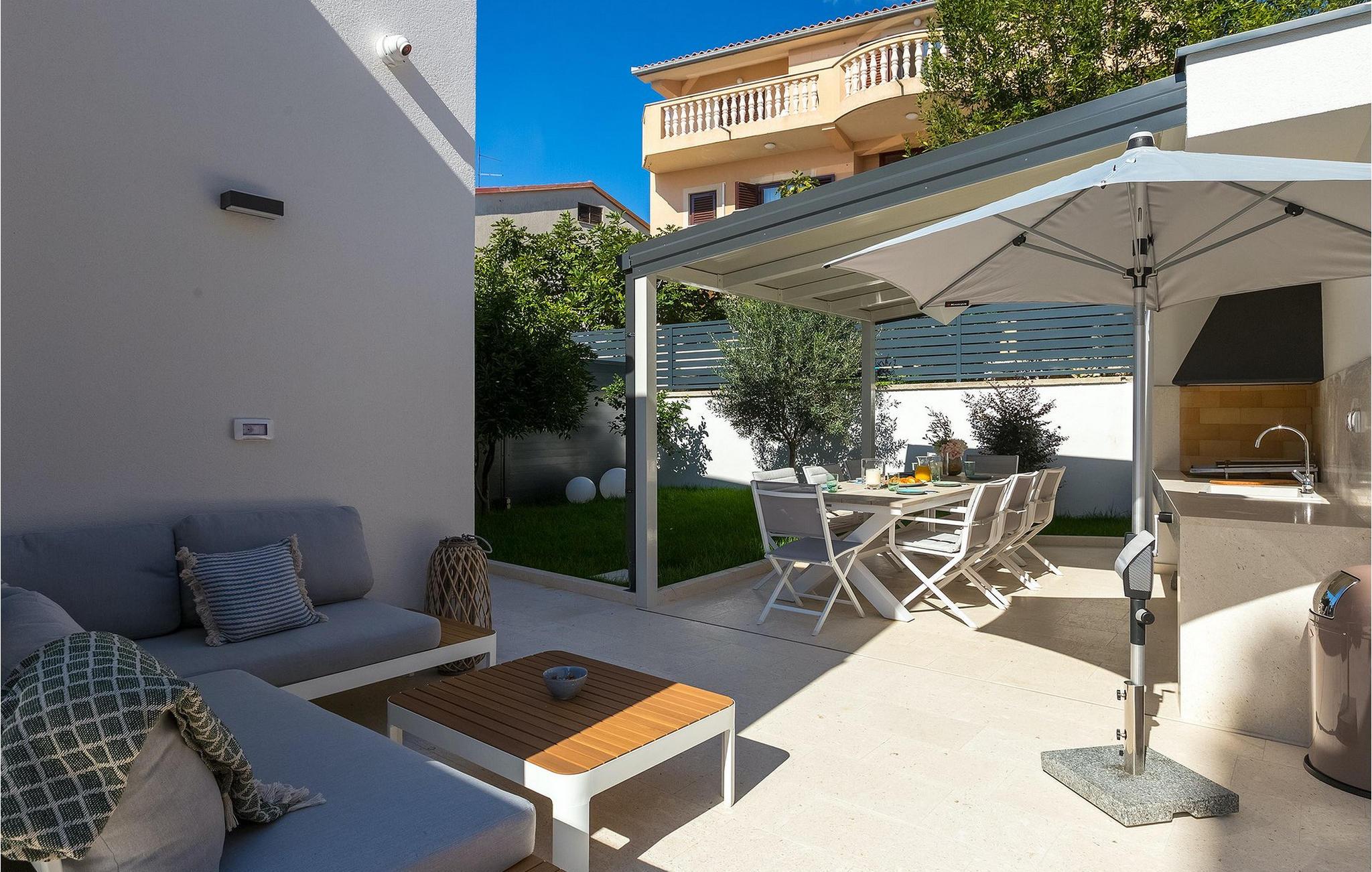En attraktiv semi-villa med en fantastisk beliggenhed, kun få meter fra stranden, men også bekvemt beliggende i forhold til Pula. Villa Bonelli er den højre del af ejendommen og har sin egen separate indgang og eksklusiv brug af poolen. Selve Villa Bonelli er opdelt i to lejligheder, som lejes sammen. Den ene er i stueetagen og den anden er på første sal. Hver har sin egen indgang. Som helhed har Bonelli tre soveværelser, tre badeværelser og kan rumme 6 gæster. Villaen er fuldt klimatiseret, har bredbånd Wi-Fi internet og parkering. Stuelejligheden består af et soveværelse med dobbeltseng med aircondition, en sofa (sovesofa), tv, tekøkken og badeværelse. Denne lejlighed har også en hyggelig terrasse med et separat område til spisning. Lejligheden på første sal har et soveværelse med dobbeltseng, badeværelse (som også rummer en vaskemaskine), stue med køkken (opvaskemaskine, mikroovn, brødrister), tv og terrasse. Ovenpå er et soveværelse (to enkeltsenge) med eget badeværelse og balkon. Der er masser af sengelinned og håndklæder. En enkelt sovesofa er tilgængelig. Udenfor er en smuk have og terrasse, hvoraf en del er overdækket og har stilfulde og komfortable siddepladser. Den dejlige private pool (20m2 og dybde 1,40m), til eksklusiv brug for beboerne i Villa Bonelli, er omgivet af terrasser, liggestole og lænestole. Der er en fantastisk havudsigt fra villaen og dens grund. Ved siden af villaen er en spiseplads med bord og stole. Der er også en grill og en udendørs bruser. Dette er en villa ved stranden i Pjescana Uvala nær Pula. I en meget kort gåafstand er der et bredt udvalg af fremragende barer og restauranter. Stranden ligger lige under ejendommen, hvor du kan leje udstyr til alle former for vandsport. På stranden er der gratis at bruge fitnessudstyr og en beachvolleybane. Der er offentlig transport til centrum af Pula. Både den romerske by Pula og charmerende Medulin er inden for rækkevidde. Medulin betragtes som et af de bedste badesteder i Istrien. Du finder et udvalg af barer og restauranter i Medulin og i det nærliggende Premantura, som alle er berømte for deres fiskemenuer. Pula bugner også af gode restauranter, nogle af dem vil du finde, mens du slentrer i den gamle bymidte, rig på romerske ruiner. Det mest berømte af alle romerske monumenter er i Pula, start- og slutpunktet for hver sightseeingtur er amfiteatret, populært kaldet Pulas Arena, som engang var stedet for gladiatorkampe. Det blev bygget i det 1. århundrede e.Kr. under kejser Vespasians regeringstid, samtidig med det storslåede Colosseum i Rom. I dag er det stedet for sommerforestillinger - filmfestivalen, operasæsonen, ridefestivalen, koncerter og teaterforestillinger. De underjordiske gange, som engang blev brugt af gladiatorerne, er i dag vært for regelmæssige udstillinger. Det er ikke kun kulturelle monumenter, denne del af Istrien bugner af, men den er også rig på naturlige skønheder. Cape Kamenjak er en naturpark beliggende på den sydligste del af Istrien-halvøen, 15 minutters kørsel fra Bonelli. Du kan tilbringe en dag i denne smukke naturpark med at udforske små bugter og bade i det klare hav. En bil er ikke nødvendig.