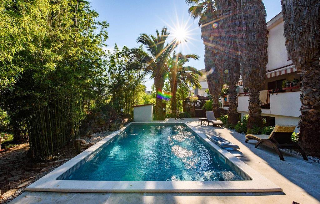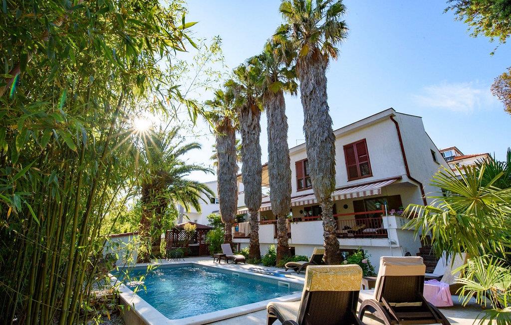 En attraktiv villa med en fantastisk beliggenhed, kun få meter fra stranden, men også bekvemt beliggende fra byen Pula og alle turistattraktioner. Alt hvad du behøver er inden for gåafstand...en smuk strand, fremragende restauranter... Villa Botanica tilbyder dig en luksuriøs indkvarteringsoplevelse med et højt niveau af privatliv, ideel til familier, par og små grupper. Villaen har en vidunderligt dekoreret botanisk have, der tilbyder et dejligt middelhavsrum og større privatliv. Villa Botanica består af 4 soveværelser, alle med aircondition og LCD-tv. Der er en smuk og rummelig opholdsstue med pejseplads, biblioteksområde og hjemmebiografområde, hvor du kan nyde mange uforglemmelige stunder. En opvarmet privat swimmingpool, fitnessområde og sauna er blot nogle af de mange luksuriøse faciliteter, du kan finde i Villa Botanica. Der er også en overdækket udendørs jacuzzi med infrarøde terrassevarmere til en perfekt afslappende forkælelse under køligere nætter. Området omkring swimmingpoolen er udstyret med parasoller og liggestole, lavet af naturlige materialer. Haven omfatter også en grillplads med spisebord. Villaen er fuldt klimatiseret, har bredbånd Wi-Fi internet og parkering. Der er også et professionelt poolbord med Simonis billardklud, en PlayStation 3, brætspil og bøger. Villa Botanica ligger kun 300 m fra stranden i Pjescana Uvala nær Pula. Der kan du leje udstyr til alle former for vandsport. På stranden er der gratis at bruge fitnessudstyr og en beachvolleybane. I en meget kort gåafstand er der et bredt udvalg af fremragende barer og restauranter. Der er også offentlig transport til centrum af Pula. Både den romerske by Pula og charmerende Medulin er inden for rækkevidde. Medulin betragtes som et af de bedste badesteder i Istrien, hvor du finder en række barer og og i nabolandet Premantura, som alle er berømte for deres fiskemenuer. Pula bugner også af gode restauranter, nogle af dem vil du finde, mens du slentrer gennem den gamle bymidte, rig på romerske ruiner. Det mest berømte af alle romerske monumenter i Pula, start- og slutpunktet for hver sightseeingtur, er amfiteatret, populært kaldet Pulas Arena, som engang var stedet for gladiatorkampe. Det blev bygget i det 1. århundrede e.Kr. under kejser Vespasians regeringstid, samtidig med det storslåede Colosseum i Rom. I dag er det stedet for sommerforestillinger - filmfestivalen, operasæsonen, ridefestivalen, koncerter og teaterforestillinger. De underjordiske gange, som engang blev brugt af gladiatorerne, er i dag vært for regelmæssige udstillinger. Det er ikke kun kulturelle monumenter, denne del af Istrien bugner af, men den er også rig på naturlige skønheder. Cape Kamenjak er en naturpark beliggende på den sydligste del af Istrien-halvøen, kun 15 minutters kørsel fra Villa Botanica. Du kan tilbringe en dag i denne smukke naturpark med at udforske små bugter og svømme i det klare hav. En bil er ikke nødvendig.
