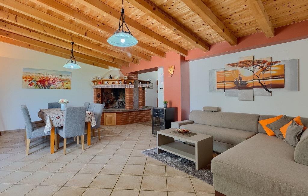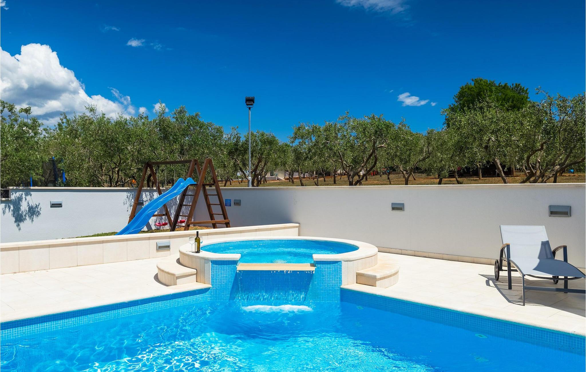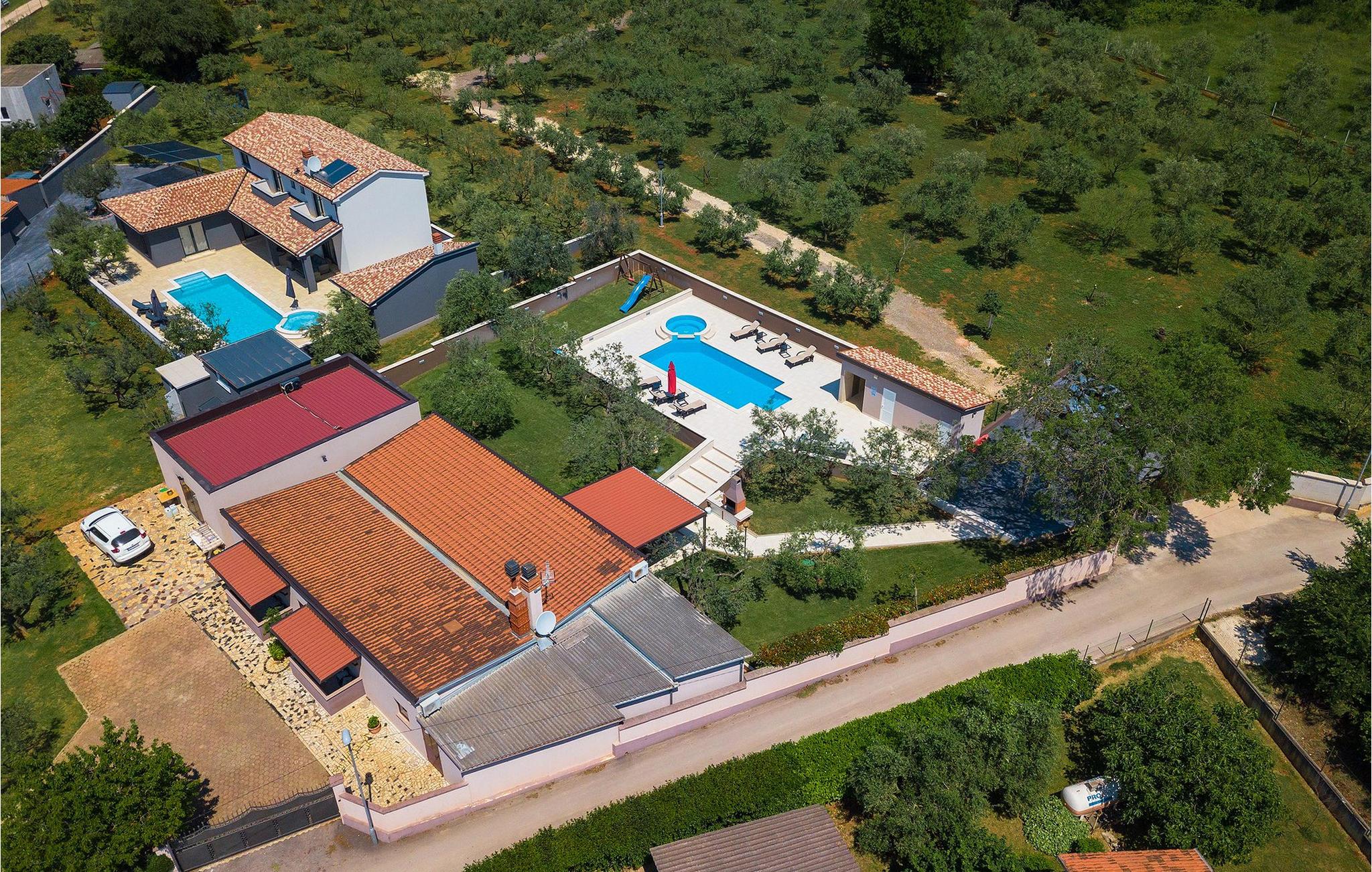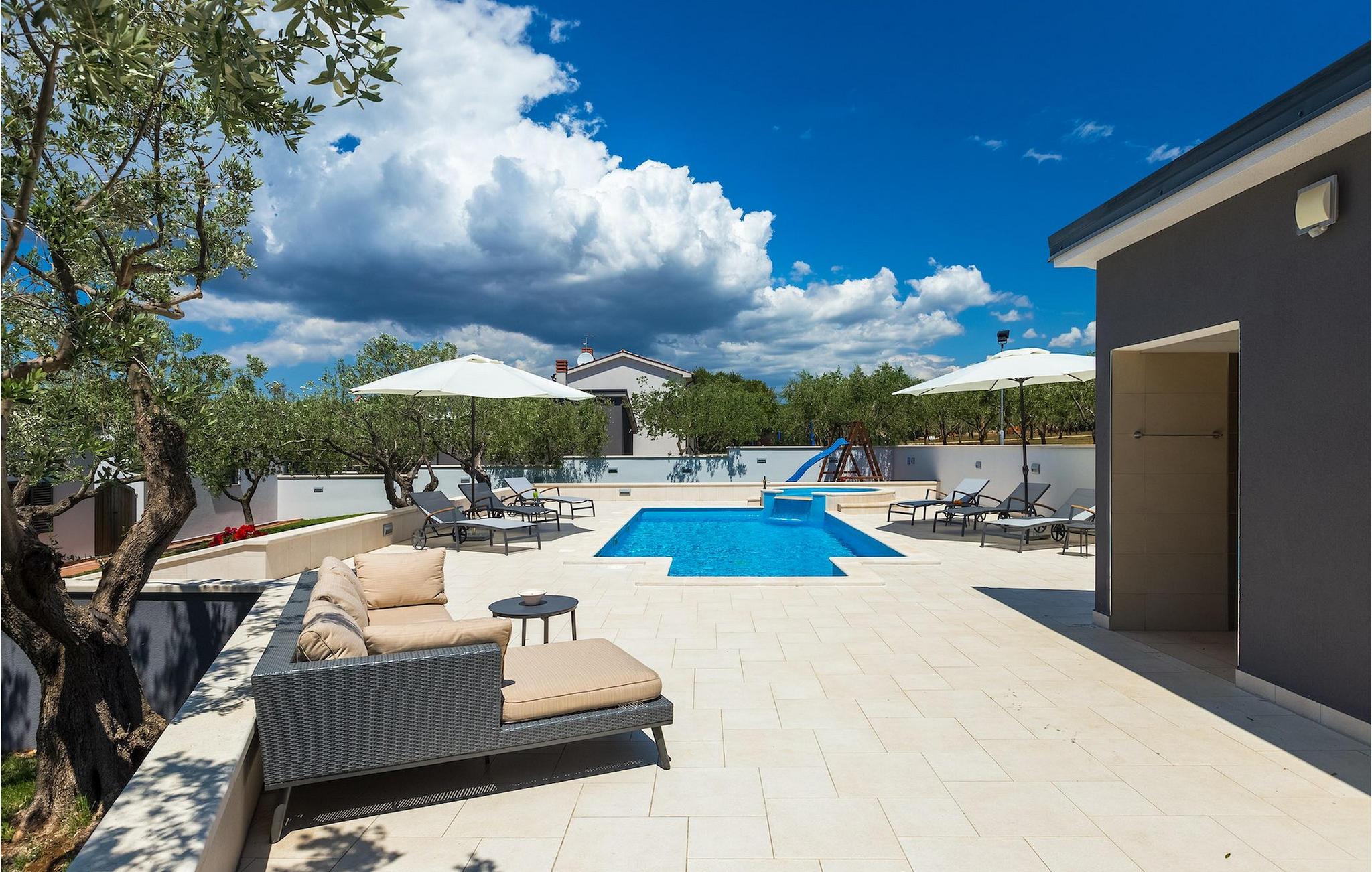 Villa Vale ligger i udkanten af byen Pula på et idyllisk sted omgivet af oliventræer. Denne villa kan rumme 8 gæster. Dette er et ideelt sted for et fuldstændigt tilbagetog fra hverdagen, larm og travlhed, kun 5 minutter fra Pulas livlige turistcenter og smukke strande med hvide småsten. Villaen er ideel til at rumme store familier med små børn. Fire soveværelser har deres egne badeværelser for maksimal komfort og en tv-modtager. Det ene soveværelse ligger i stueetagen, hvilket gør det velegnet til familier med børn. Billeder af din familie og kæledyr i denne luksusvilla vil forbløffe alle. Den store spisestue er rustikt indrettet med åben pejs og træloft, der bidrager til varmen i hjemmets stemning. Køkkenet er moderne og fuldt udstyret. Det ydre var ikke glemt - i løbet af den varmeste del af dagen kan du nyde en forfriskende drink på den overdækkede del af terrassen, og der er også en grill til at tilberede måltider, der vil kilde dine smagsløg. Udenfor er der en af de smukkest dekorerede stenbassiner med en dejlig massagecirkel. Liggestole er der for at fuldende nydelsen. Til aftensammenkomster er der en stor haveseng med behagelige puder, hvor du kan slappe af med din yndlingsdrink. Og mens de voksne hygger sig med drinks og historier, kan børnene lege på deres egen private legeplads. Pula er den vigtigste og største havn i Istrien, som for nylig er blevet til en rigtig turistskat. Den velbeskyttede Pula-bugt er blandt de bedste naturlige havne i Adriaterhavet. Også, omgivet af det frodige grønne landskab i det sydlige Istrien, besidder byen ekstraordinær skønhed og kultur. Denne ferieby ved kysten med et overraskende antal historiske monumenter, storslåede strande og interiørets fantastiske skønhed er et ideelt sted at slappe af. Langt det mest mindeværdige symbol på den romerske indflydelse i Istrien er den storslåede, tyve århundreder gamle by Arena, det sjettestørste amfiteater i verden. I dag byder Pula på gode muligheder for ferier. Turisttilbuddet omfatter mange legepladser til sport, rekreation og underholdning, danseterrasser, diskoteker, kasinoer samt diverse udflugter. Byen er stolt af sit velbevarede amfiteater, det største amforasted i verden, Augustus-templet, mange kirker, klostre, venetiansk og østrig-ungarsk arkitektur, et fremragende og varieret udvalg af mad i sine mange restauranter, rige museer , gallerier, koncertbegivenheder, fantastisk natteliv og mange andre attraktioner i denne berømte by. I byen er der to lystbådehavne, der øger udviklingen af nautisk turisme. Pula er også et velkendt konferencecenter. Byen er tilgængelig med alle former for transport, og det skal bemærkes, at der er en lufthavn i umiddelbar nærhed af Pula (6 km), som kan acceptere international lufttrafik. Pula er også et center for sportsturisme på grund af dets milde klima, kvalitets sportsfaciliteter og nærhed til lufthavnen, som tiltrækker indenlandske og udenlandske sportshold til vintertræning. Sammen med de sædvanlige landsportsgrene er der muligheder for en række forskellige vandsportsgrene. Du er meget velkommen til at opdage charmen ved denne villa. Villaen er beregnet til familieferier, den ligger i boligdelen, så grupper af unge er ikke tilladt.