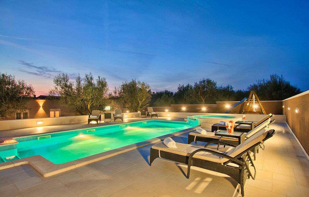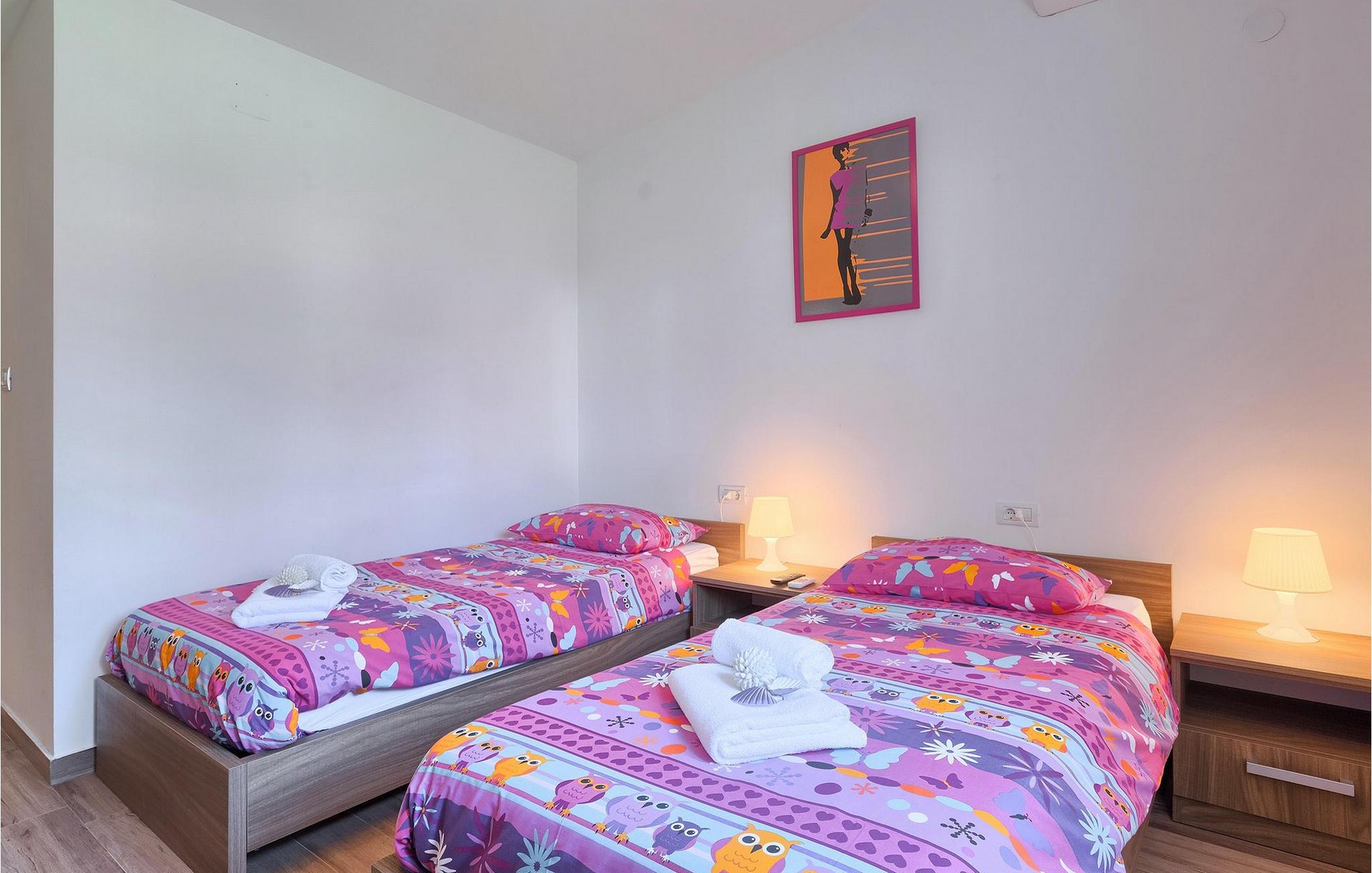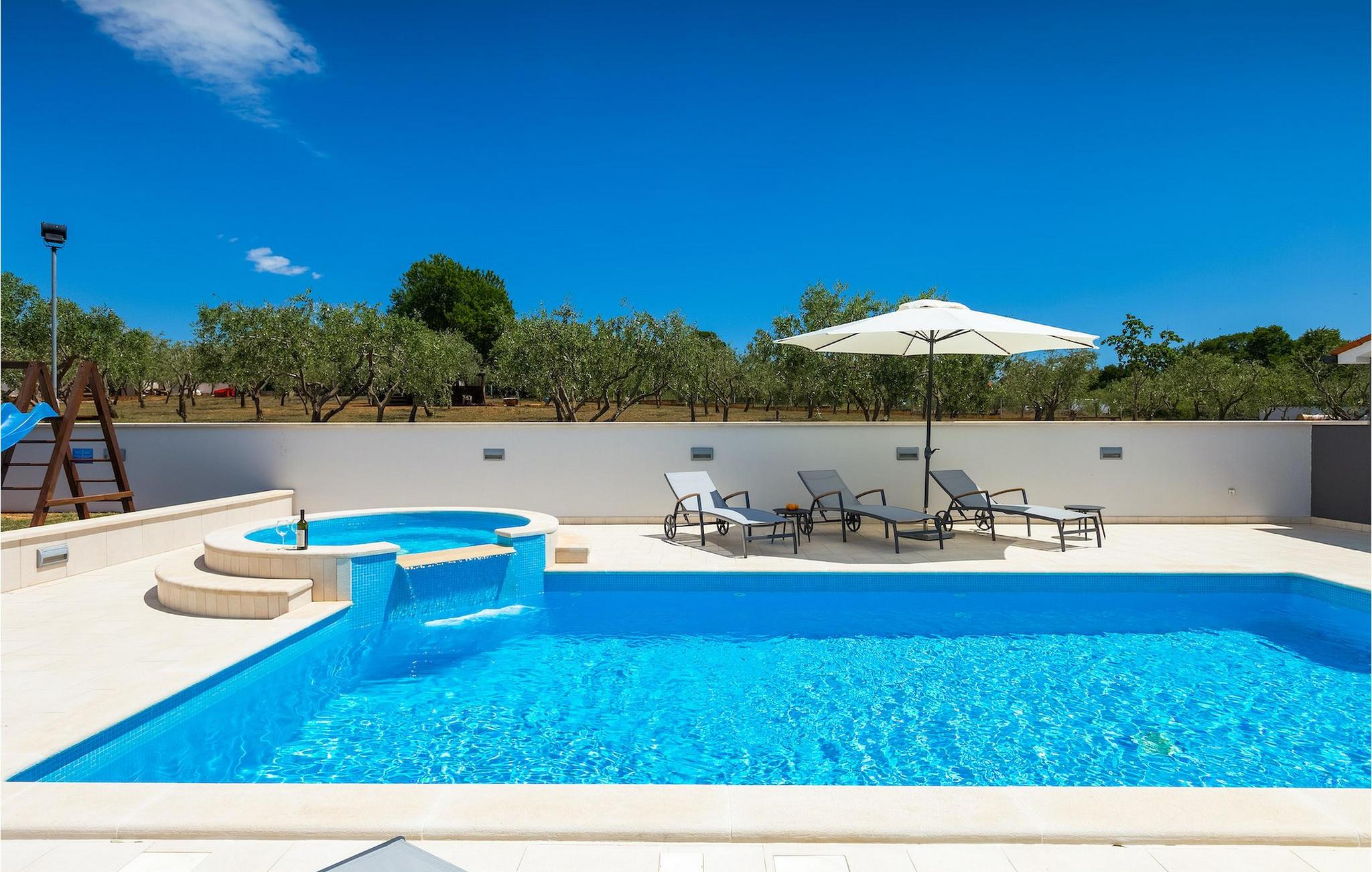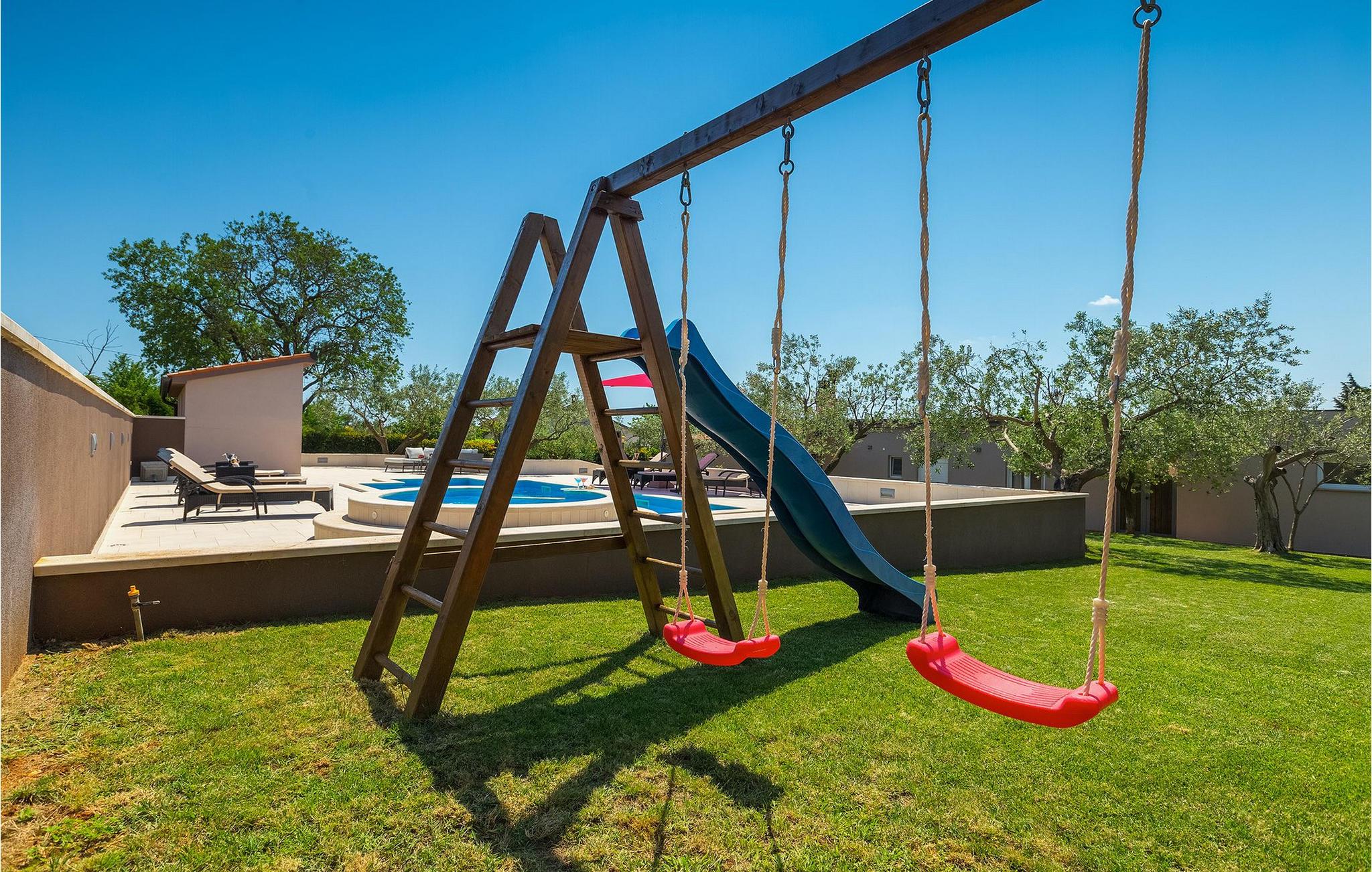 Villa Vale ligger i udkanten af byen Pula på et idyllisk sted omgivet af oliventræer. Denne villa kan rumme 8 gæster. Dette er et ideelt sted for et fuldstændigt tilbagetog fra hverdagen, larm og travlhed, kun 5 minutter fra Pulas livlige turistcenter og smukke strande med hvide småsten. Villaen er ideel til at rumme store familier med små børn. Fire soveværelser har deres egne badeværelser for maksimal komfort og en tv-modtager. Det ene soveværelse ligger i stueetagen, hvilket gør det velegnet til familier med børn. Billeder af din familie og kæledyr i denne luksusvilla vil forbløffe alle. Den store spisestue er rustikt indrettet med åben pejs og træloft, der bidrager til varmen i hjemmets stemning. Køkkenet er moderne og fuldt udstyret. Det ydre var ikke glemt - i løbet af den varmeste del af dagen kan du nyde en forfriskende drink på den overdækkede del af terrassen, og der er også en grill til at tilberede måltider, der vil kilde dine smagsløg. Udenfor er der en af de smukkest dekorerede stenbassiner med en dejlig massagecirkel. Liggestole er der for at fuldende nydelsen. Til aftensammenkomster er der en stor haveseng med behagelige puder, hvor du kan slappe af med din yndlingsdrink. Og mens de voksne hygger sig med drinks og historier, kan børnene lege på deres egen private legeplads. Pula er den vigtigste og største havn i Istrien, som for nylig er blevet til en rigtig turistskat. Den velbeskyttede Pula-bugt er blandt de bedste naturlige havne i Adriaterhavet. Også, omgivet af det frodige grønne landskab i det sydlige Istrien, besidder byen ekstraordinær skønhed og kultur. Denne ferieby ved kysten med et overraskende antal historiske monumenter, storslåede strande og interiørets fantastiske skønhed er et ideelt sted at slappe af. Langt det mest mindeværdige symbol på den romerske indflydelse i Istrien er den storslåede, tyve århundreder gamle by Arena, det sjettestørste amfiteater i verden. I dag byder Pula på gode muligheder for ferier. Turisttilbuddet omfatter mange legepladser til sport, rekreation og underholdning, danseterrasser, diskoteker, kasinoer samt diverse udflugter. Byen er stolt af sit velbevarede amfiteater, det største amforasted i verden, Augustus-templet, mange kirker, klostre, venetiansk og østrig-ungarsk arkitektur, et fremragende og varieret udvalg af mad i sine mange restauranter, rige museer , gallerier, koncertbegivenheder, fantastisk natteliv og mange andre attraktioner i denne berømte by. I byen er der to lystbådehavne, der øger udviklingen af nautisk turisme. Pula er også et velkendt konferencecenter. Byen er tilgængelig med alle former for transport, og det skal bemærkes, at der er en lufthavn i umiddelbar nærhed af Pula (6 km), som kan acceptere international lufttrafik. Pula er også et center for sportsturisme på grund af dets milde klima, kvalitets sportsfaciliteter og nærhed til lufthavnen, som tiltrækker indenlandske og udenlandske sportshold til vintertræning. Sammen med de sædvanlige landsportsgrene er der muligheder for en række forskellige vandsportsgrene. Du er meget velkommen til at opdage charmen ved denne villa. Villaen er beregnet til familieferier, den ligger i boligdelen, så grupper af unge er ikke tilladt.