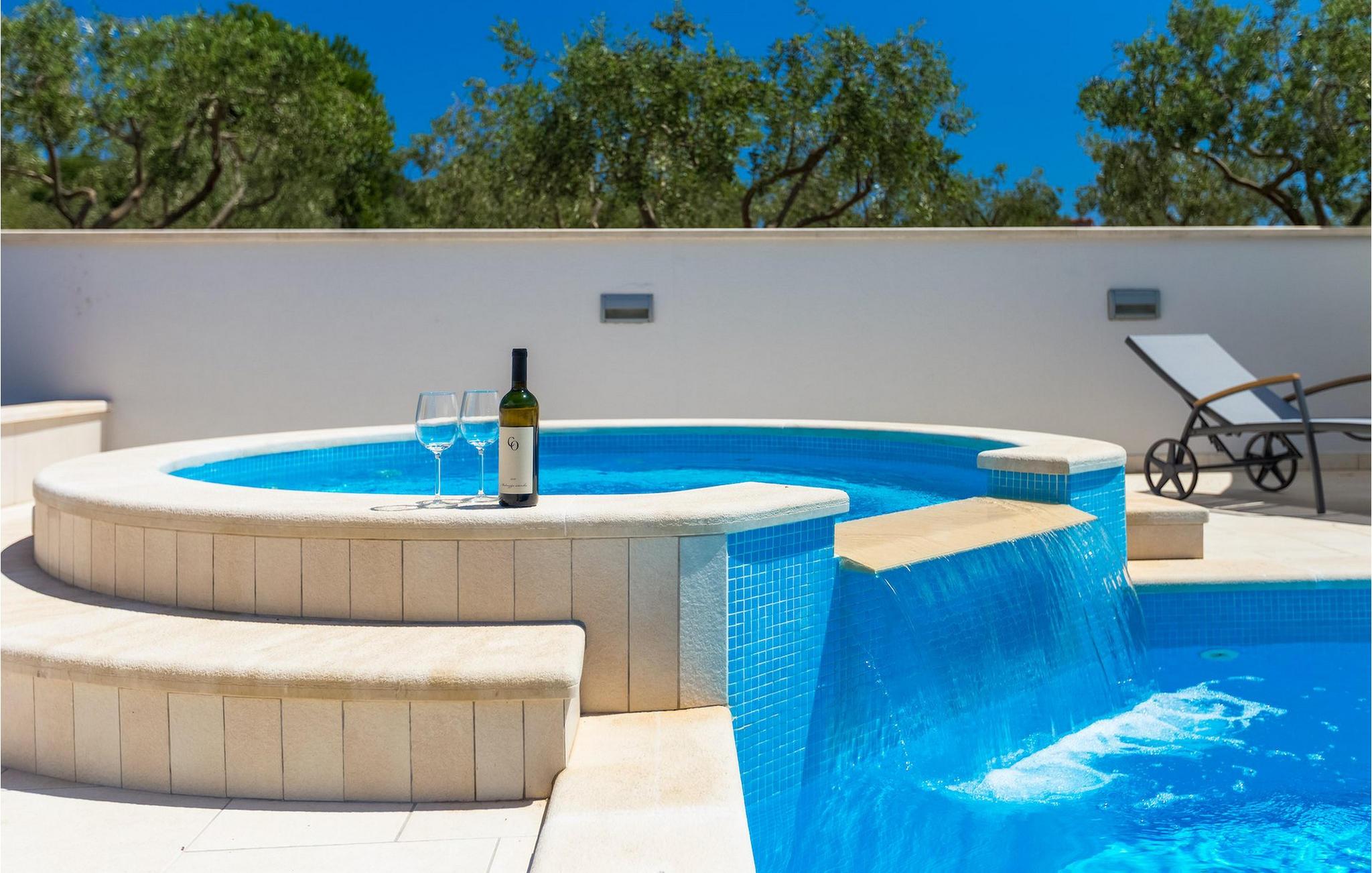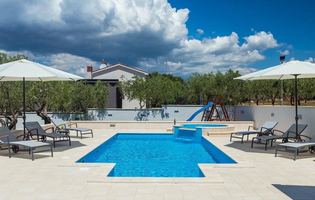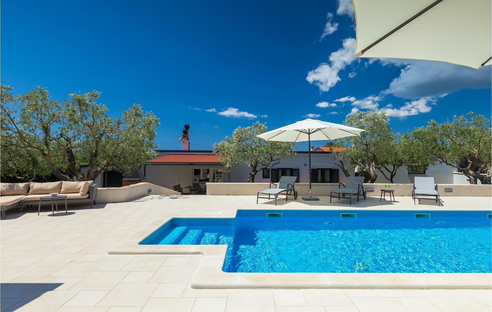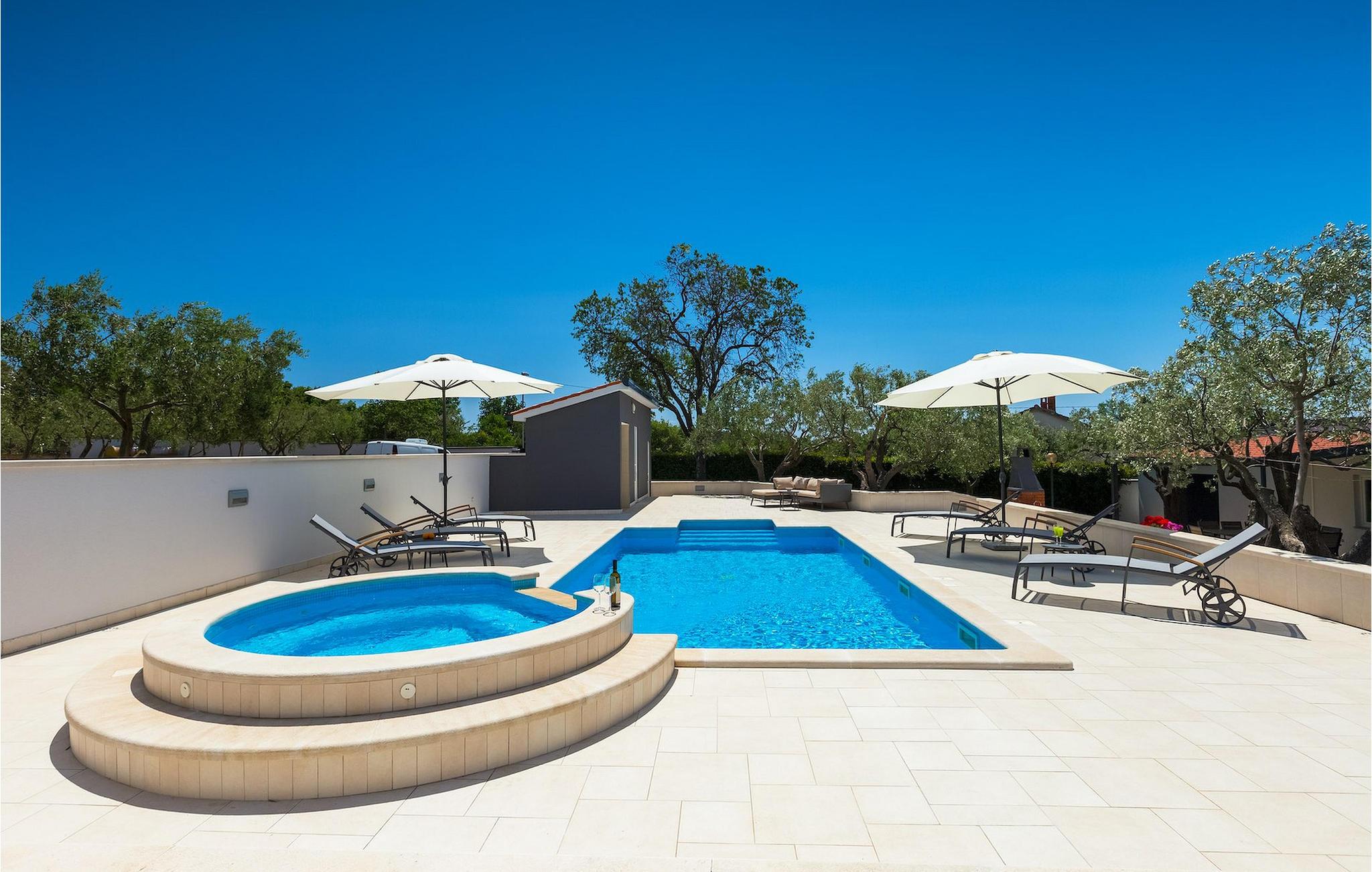 Villa Vale ligger i udkanten af byen Pula på et idyllisk sted omgivet af oliventræer. Denne villa kan rumme 8 gæster. Dette er et ideelt sted for et fuldstændigt tilbagetog fra hverdagen, larm og travlhed, kun 5 minutter fra Pulas livlige turistcenter og smukke strande med hvide småsten. Villaen er ideel til at rumme store familier med små børn. Fire soveværelser har deres egne badeværelser for maksimal komfort og en tv-modtager. Det ene soveværelse ligger i stueetagen, hvilket gør det velegnet til familier med børn. Billeder af din familie og kæledyr i denne luksusvilla vil forbløffe alle. Den store spisestue er rustikt indrettet med åben pejs og træloft, der bidrager til varmen i hjemmets stemning. Køkkenet er moderne og fuldt udstyret. Det ydre var ikke glemt - i løbet af den varmeste del af dagen kan du nyde en forfriskende drink på den overdækkede del af terrassen, og der er også en grill til at tilberede måltider, der vil kilde dine smagsløg. Udenfor er der en af de smukkest dekorerede stenbassiner med en dejlig massagecirkel. Liggestole er der for at fuldende nydelsen. Til aftensammenkomster er der en stor haveseng med behagelige puder, hvor du kan slappe af med din yndlingsdrink. Og mens de voksne hygger sig med drinks og historier, kan børnene lege på deres egen private legeplads. Pula er den vigtigste og største havn i Istrien, som for nylig er blevet til en rigtig turistskat. Den velbeskyttede Pula-bugt er blandt de bedste naturlige havne i Adriaterhavet. Også, omgivet af det frodige grønne landskab i det sydlige Istrien, besidder byen ekstraordinær skønhed og kultur. Denne ferieby ved kysten med et overraskende antal historiske monumenter, storslåede strande og interiørets fantastiske skønhed er et ideelt sted at slappe af. Langt det mest mindeværdige symbol på den romerske indflydelse i Istrien er den storslåede, tyve århundreder gamle by Arena, det sjettestørste amfiteater i verden. I dag byder Pula på gode muligheder for ferier. Turisttilbuddet omfatter mange legepladser til sport, rekreation og underholdning, danseterrasser, diskoteker, kasinoer samt diverse udflugter. Byen er stolt af sit velbevarede amfiteater, det største amforasted i verden, Augustus-templet, mange kirker, klostre, venetiansk og østrig-ungarsk arkitektur, et fremragende og varieret udvalg af mad i sine mange restauranter, rige museer , gallerier, koncertbegivenheder, fantastisk natteliv og mange andre attraktioner i denne berømte by. I byen er der to lystbådehavne, der øger udviklingen af nautisk turisme. Pula er også et velkendt konferencecenter. Byen er tilgængelig med alle former for transport, og det skal bemærkes, at der er en lufthavn i umiddelbar nærhed af Pula (6 km), som kan acceptere international lufttrafik. Pula er også et center for sportsturisme på grund af dets milde klima, kvalitets sportsfaciliteter og nærhed til lufthavnen, som tiltrækker indenlandske og udenlandske sportshold til vintertræning. Sammen med de sædvanlige landsportsgrene er der muligheder for en række forskellige vandsportsgrene. Du er meget velkommen til at opdage charmen ved denne villa. Villaen er beregnet til familieferier, den ligger i boligdelen, så grupper af unge er ikke tilladt.