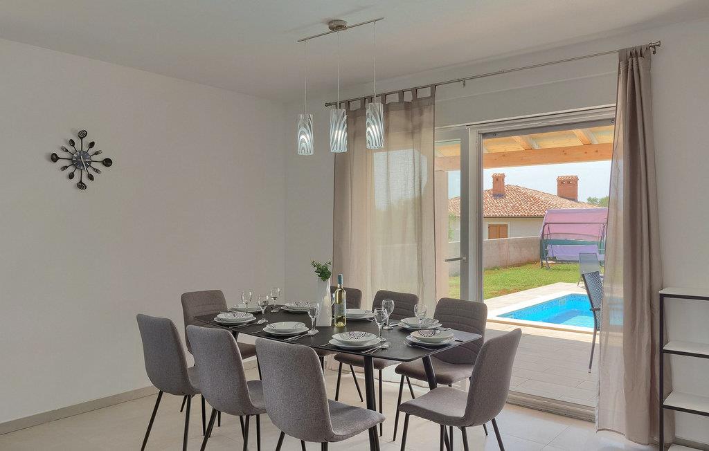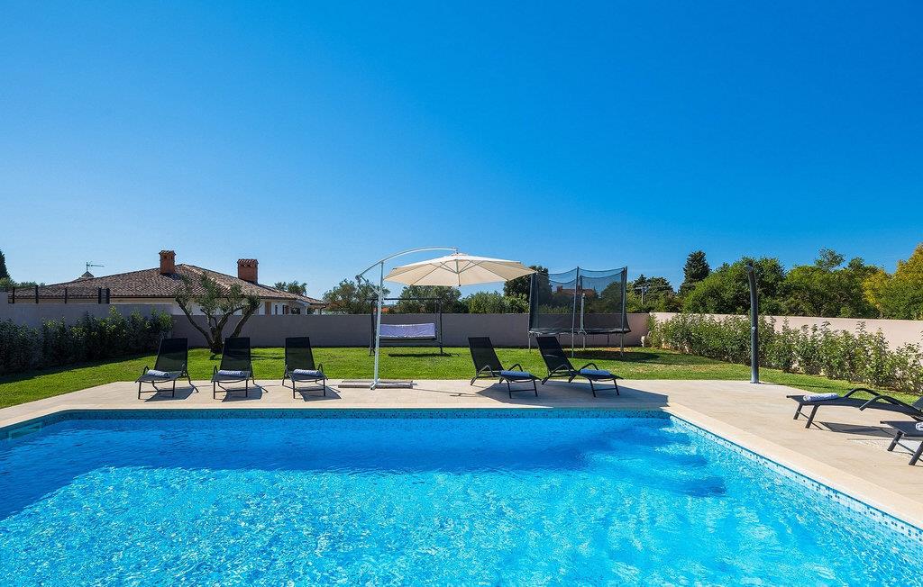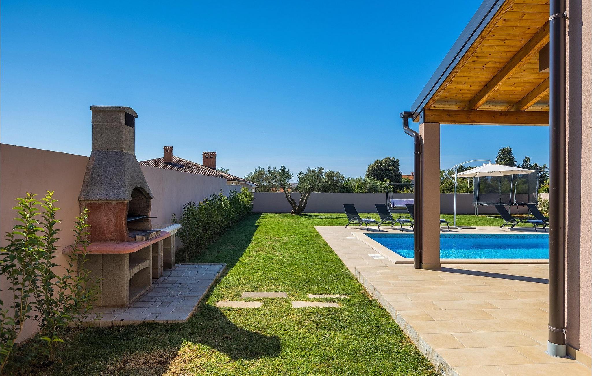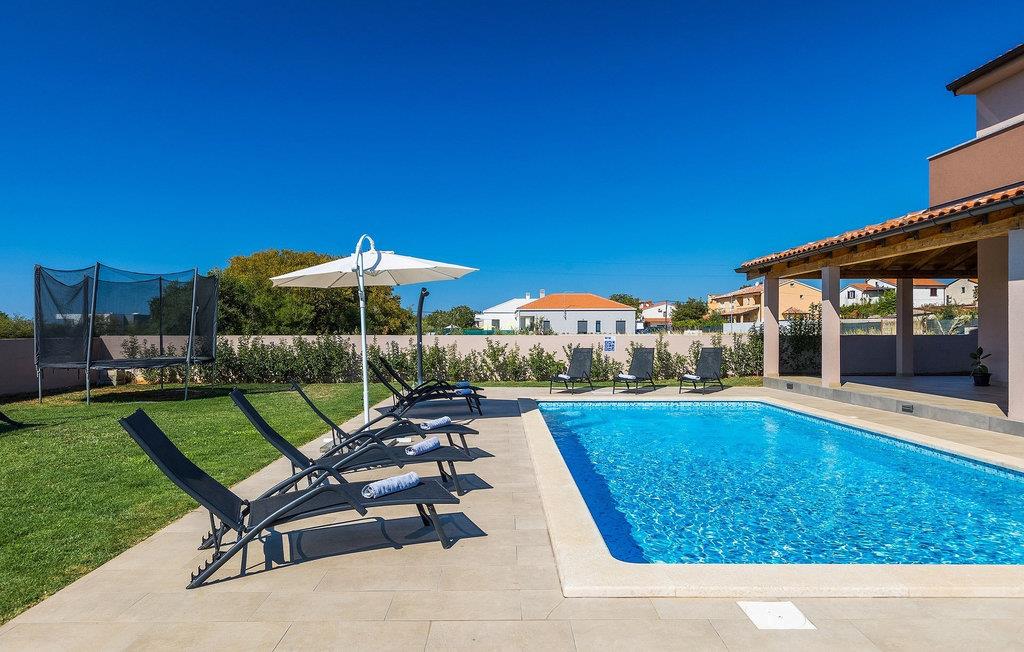 Om sommeren vil du helt sikkert sætte mest pris på det vidunderlige udendørsområde. Forfrisk dig selv i poolen og nyd de varme solstråler på en af liggestolene bagefter. Dine børn vil blive glade for at høre, at der er en trampolin i haven. Du kan nemt holde øje med dine børn fra liggestolene, mens de leger på trampolinen. Placeringen af denne villa er virkelig praktisk - kun få kilometer fra den nærmeste strand og tæt på både Pula og Medulin. Samtidig ligger villaen i et ret roligt område. Pula er den største havn og turistcentrum på halvøen Istrien. Pula er rig på kultur, tradition og smuk natur og byder på alle mulige former for fritidsaktiviteter, herunder sportsfaciliteter, restauranter og organiserede udflugter. Symbolet på denne by er bestemt den tyve århundreder gamle by Arena, hvor gladiatorkampe og jagtforestillinger blev afholdt under romertiden. I dag repræsenterer det det sjette største amfiteater i verden. Pula byder på gode muligheder for ferie. Bortset fra byen alene, bør du bestemt besøge det omkringliggende - det frodige grønne landskab i det sydlige Istrien, skønheden ved de omkringliggende strande, naturparken Kamenjak eller nationalparken Brioni.