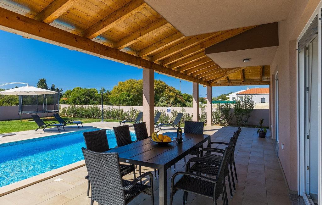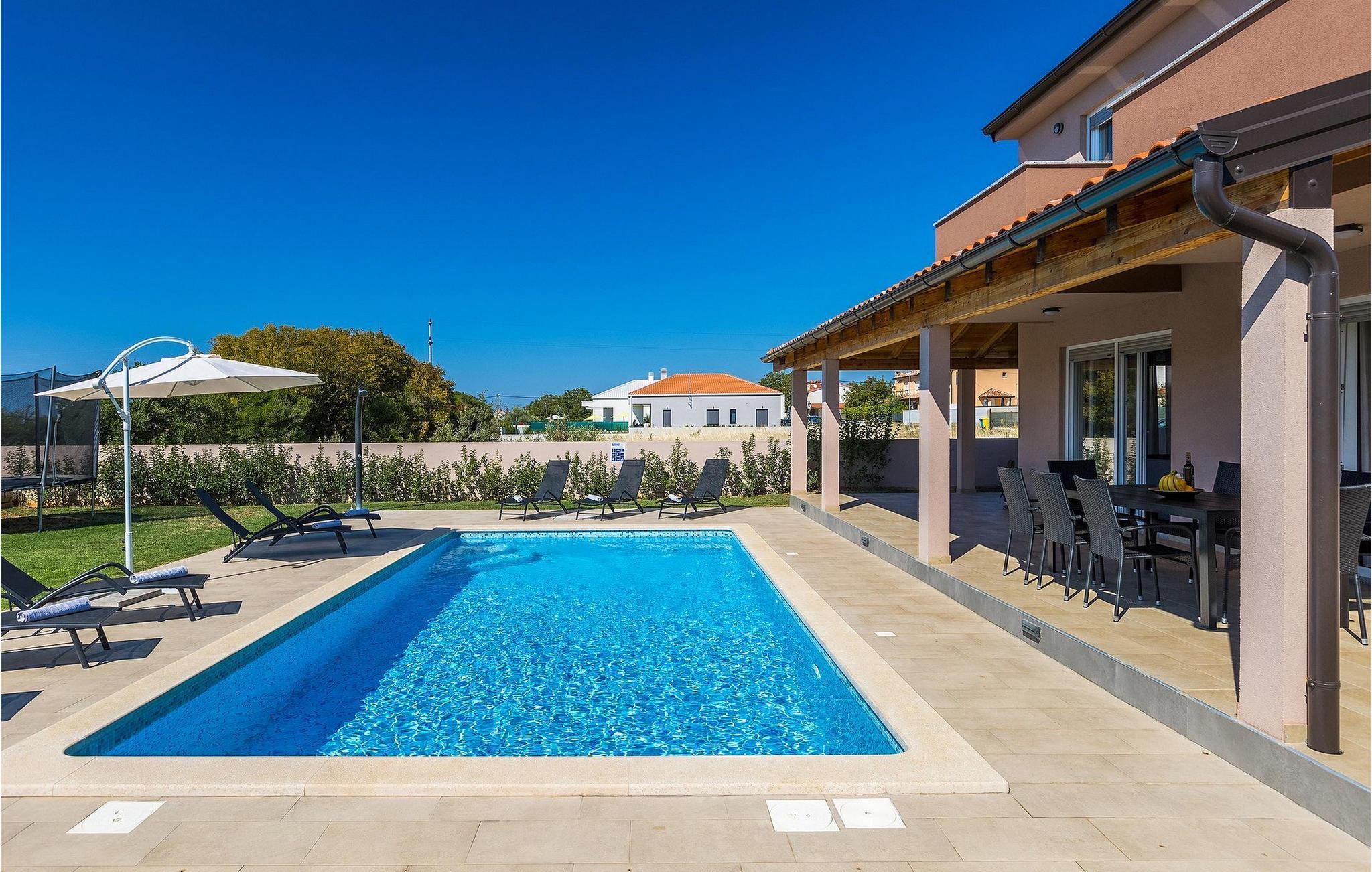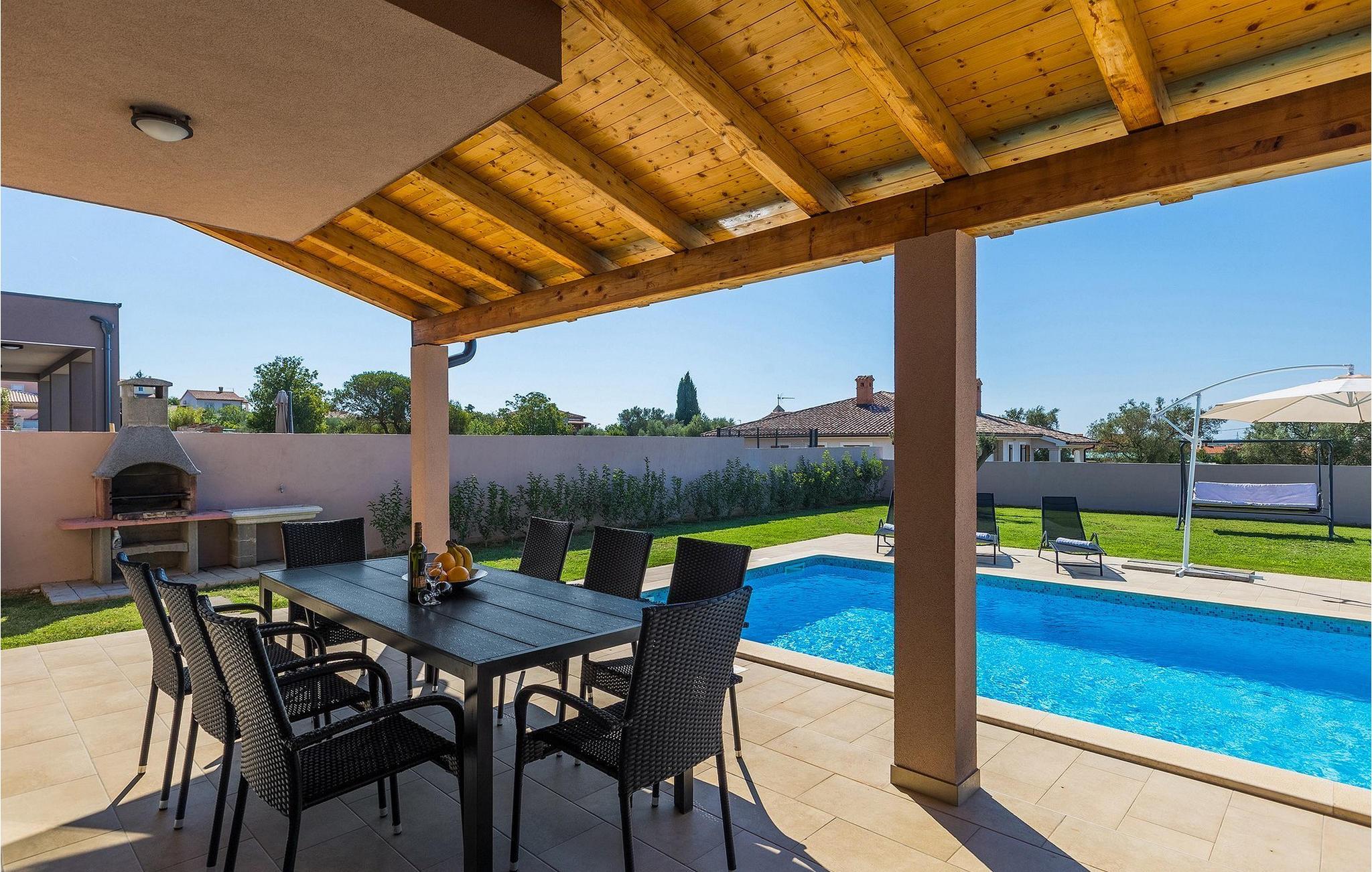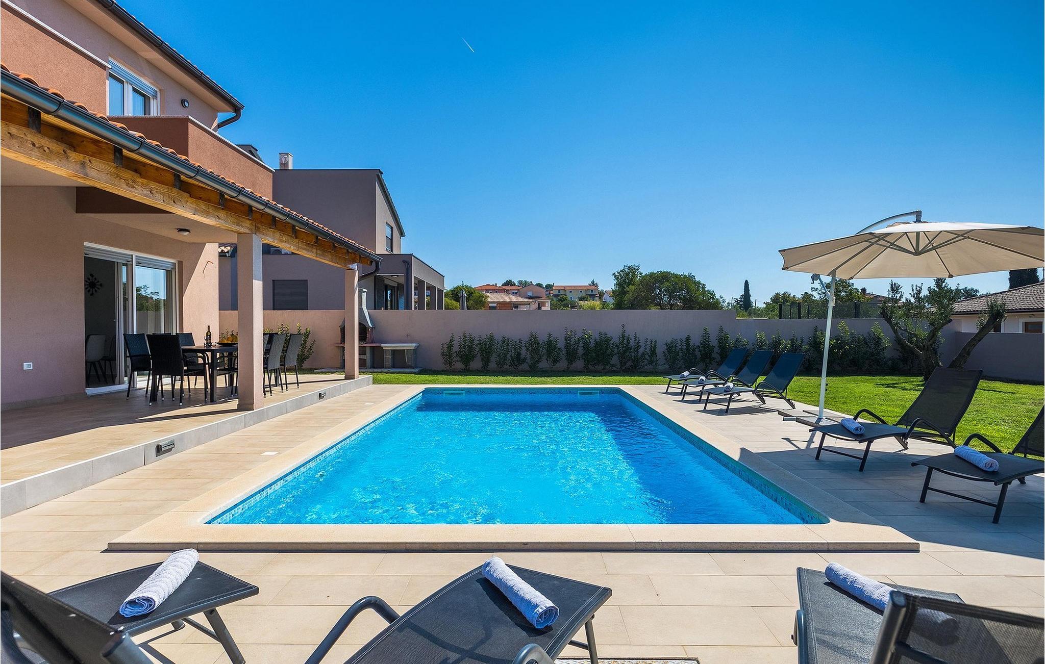 Om sommeren vil du helt sikkert sætte mest pris på det vidunderlige udendørsområde. Forfrisk dig selv i poolen og nyd de varme solstråler på en af liggestolene bagefter. Dine børn vil blive glade for at høre, at der er en trampolin i haven. Du kan nemt holde øje med dine børn fra liggestolene, mens de leger på trampolinen. Placeringen af denne villa er virkelig praktisk - kun få kilometer fra den nærmeste strand og tæt på både Pula og Medulin. Samtidig ligger villaen i et ret roligt område. Pula er den største havn og turistcentrum på halvøen Istrien. Pula er rig på kultur, tradition og smuk natur og byder på alle mulige former for fritidsaktiviteter, herunder sportsfaciliteter, restauranter og organiserede udflugter. Symbolet på denne by er bestemt den tyve århundreder gamle by Arena, hvor gladiatorkampe og jagtforestillinger blev afholdt under romertiden. I dag repræsenterer det det sjette største amfiteater i verden. Pula byder på gode muligheder for ferie. Bortset fra byen alene, bør du bestemt besøge det omkringliggende - det frodige grønne landskab i det sydlige Istrien, skønheden ved de omkringliggende strande, naturparken Kamenjak eller nationalparken Brioni.